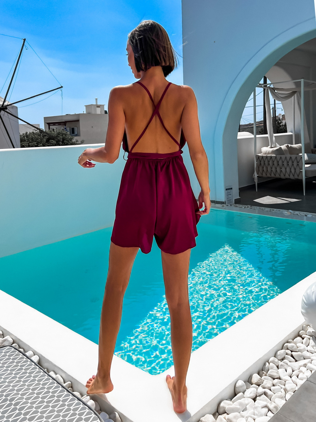 Bordó lesklý elegantní overal LUXE