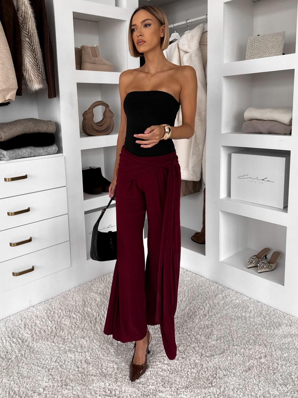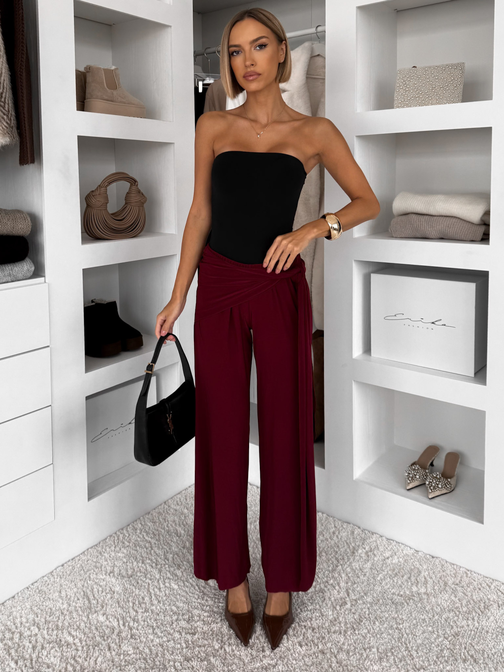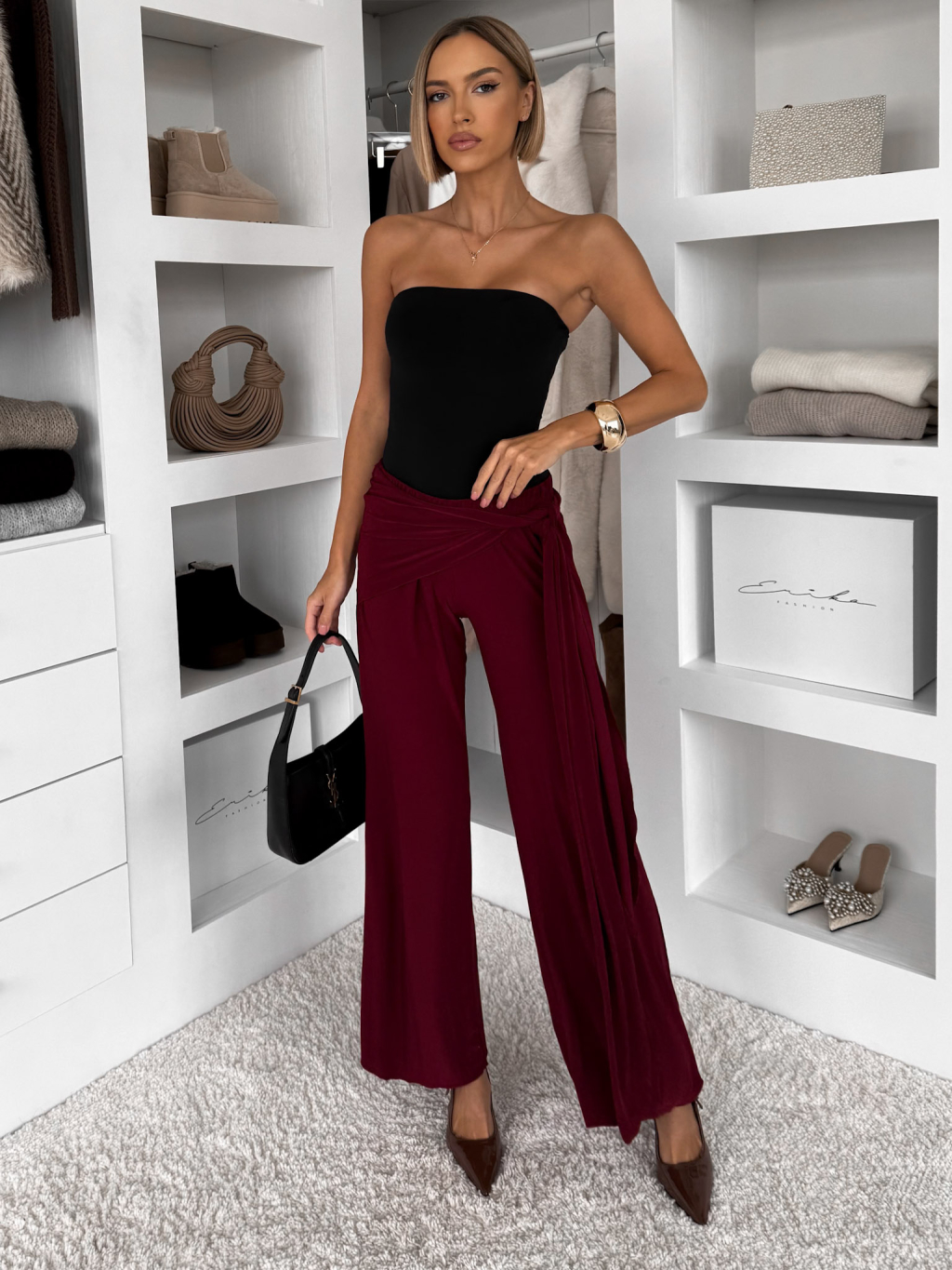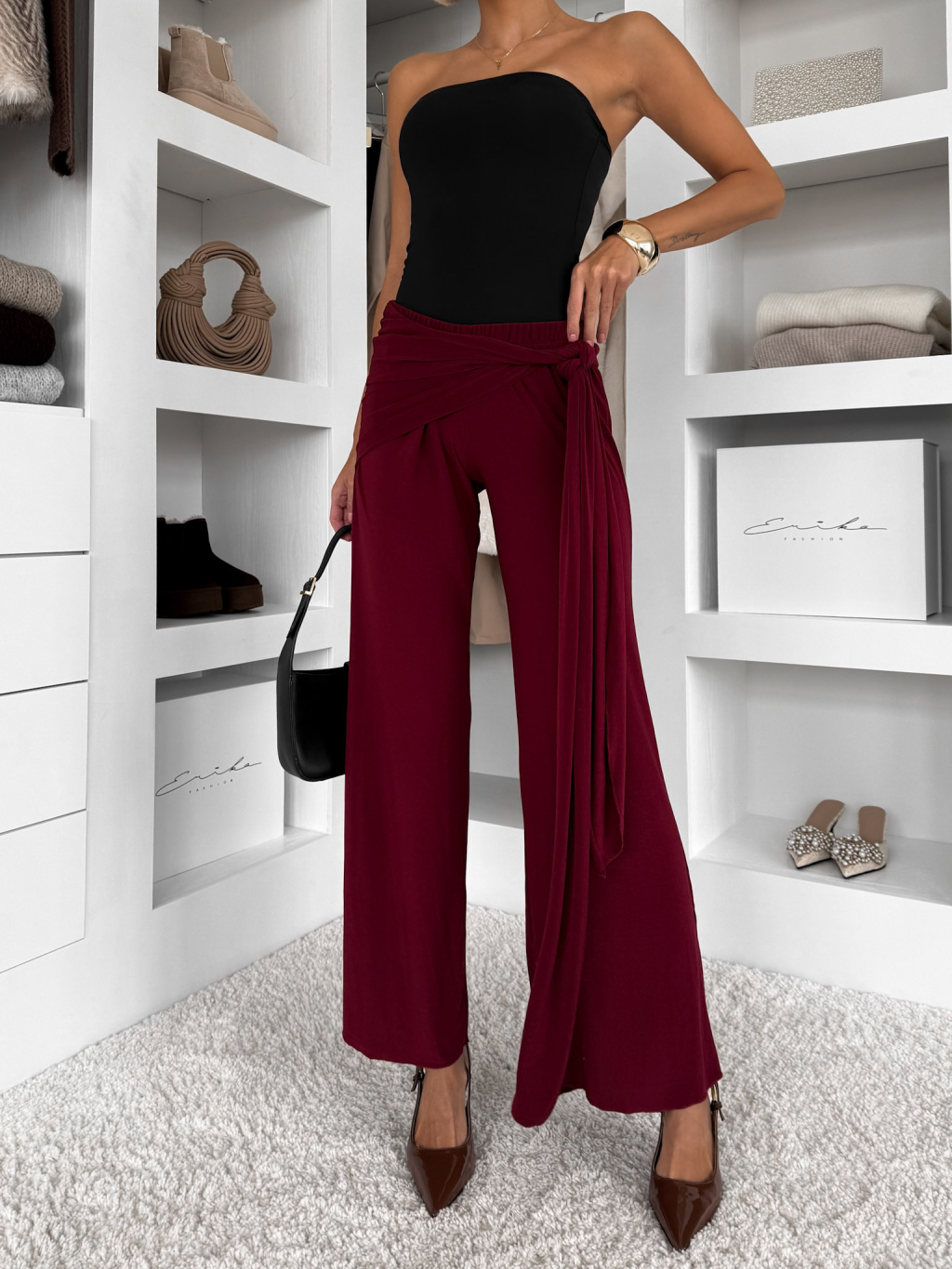 Bordó volné elegantní kalhoty IRAVELL