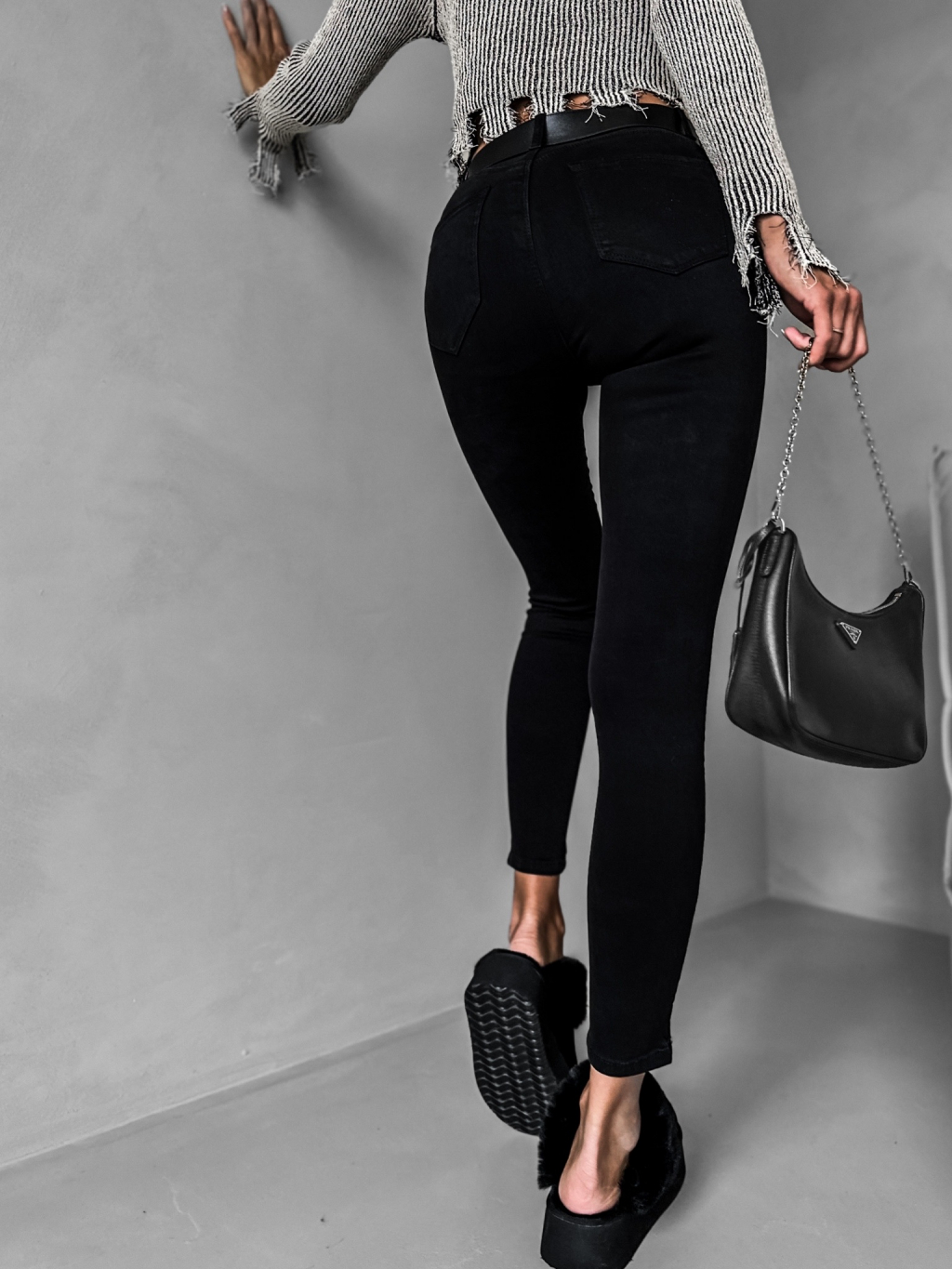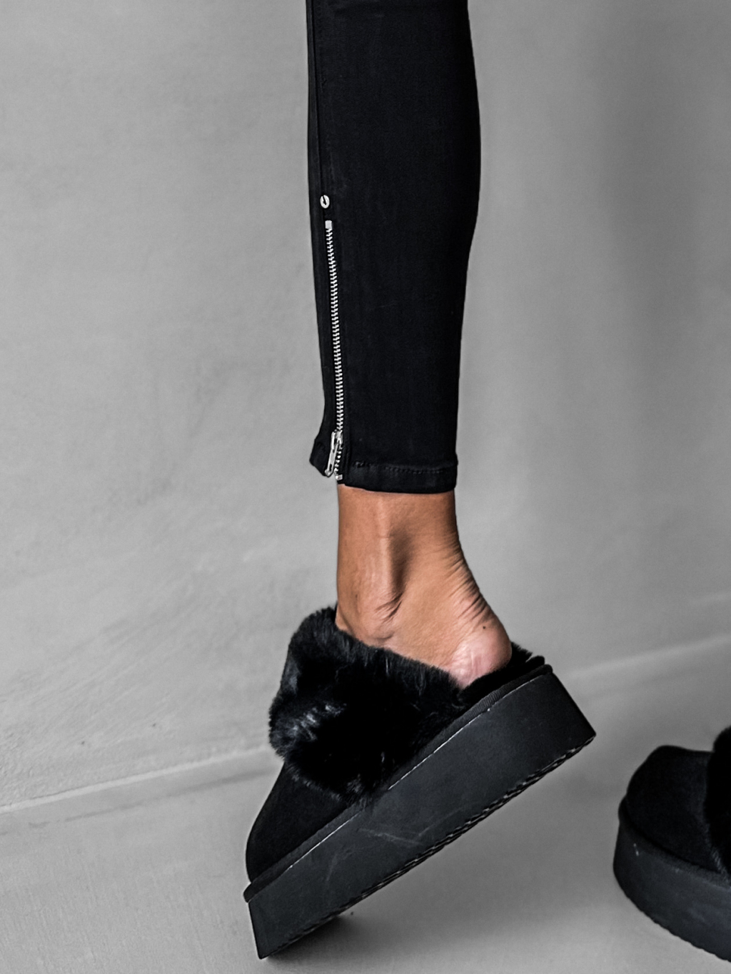 Černé elastické džíny DOROS se zipy na kotníku