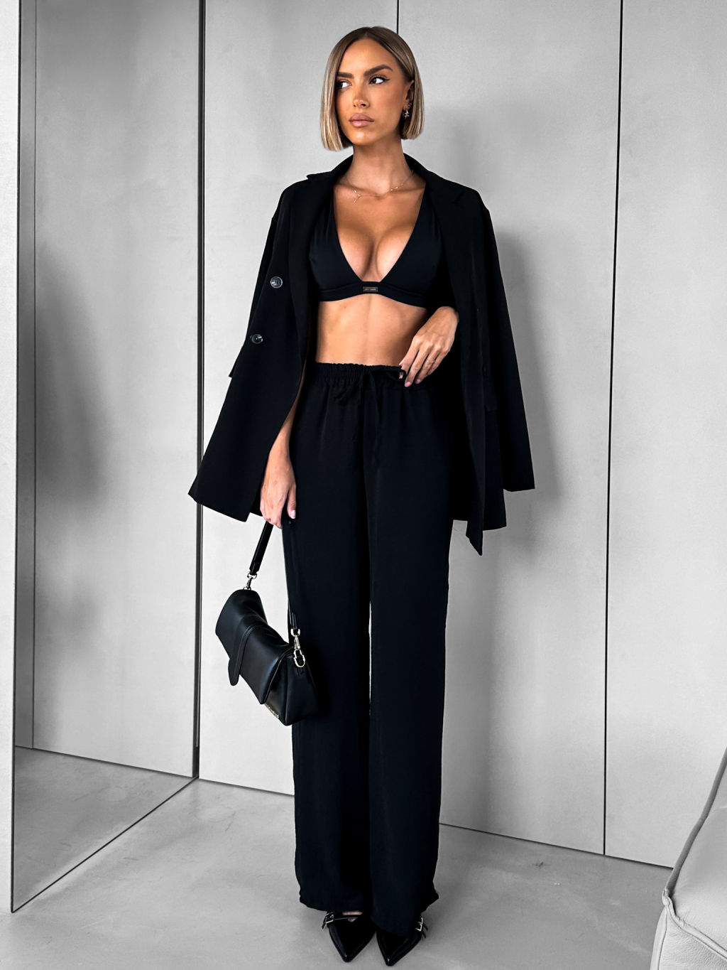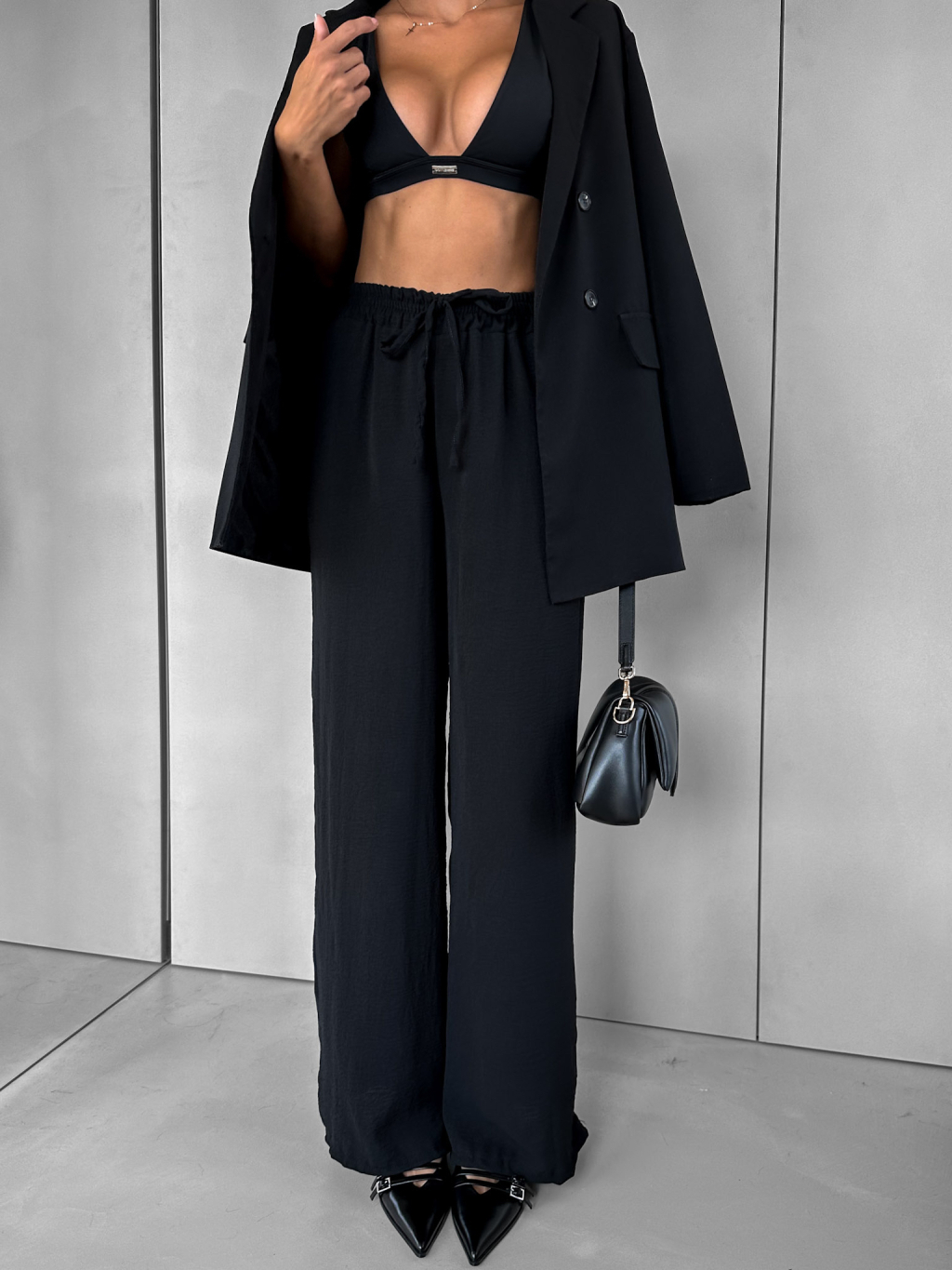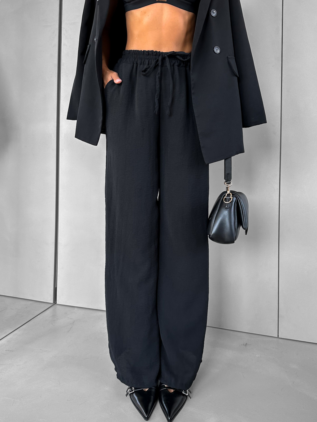 Černé elegantní kalhoty CORAL s rozšířenými nohavicemi