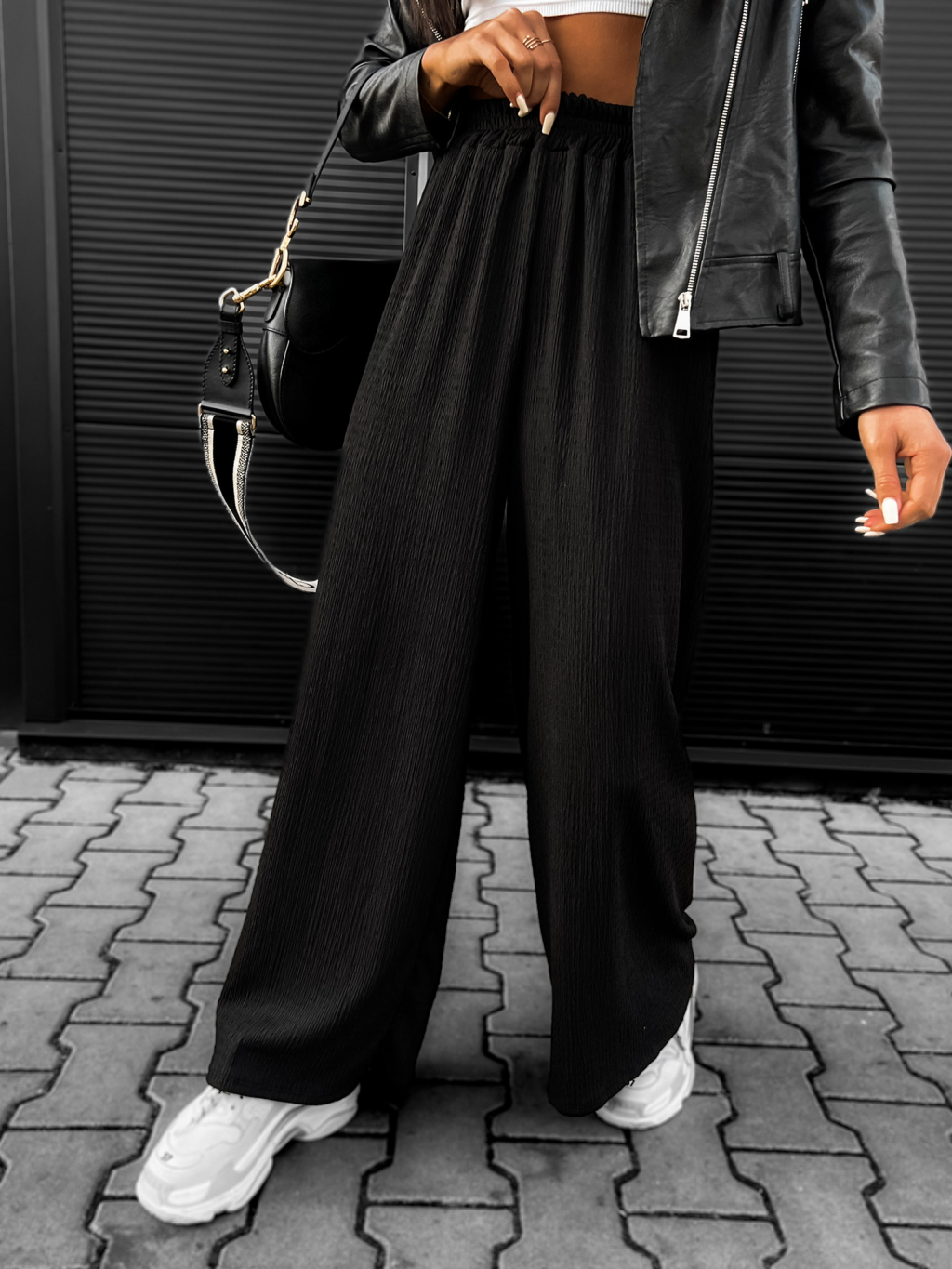 Černé elegantní kalhoty STAYSY s rozšířenými nohavicemi