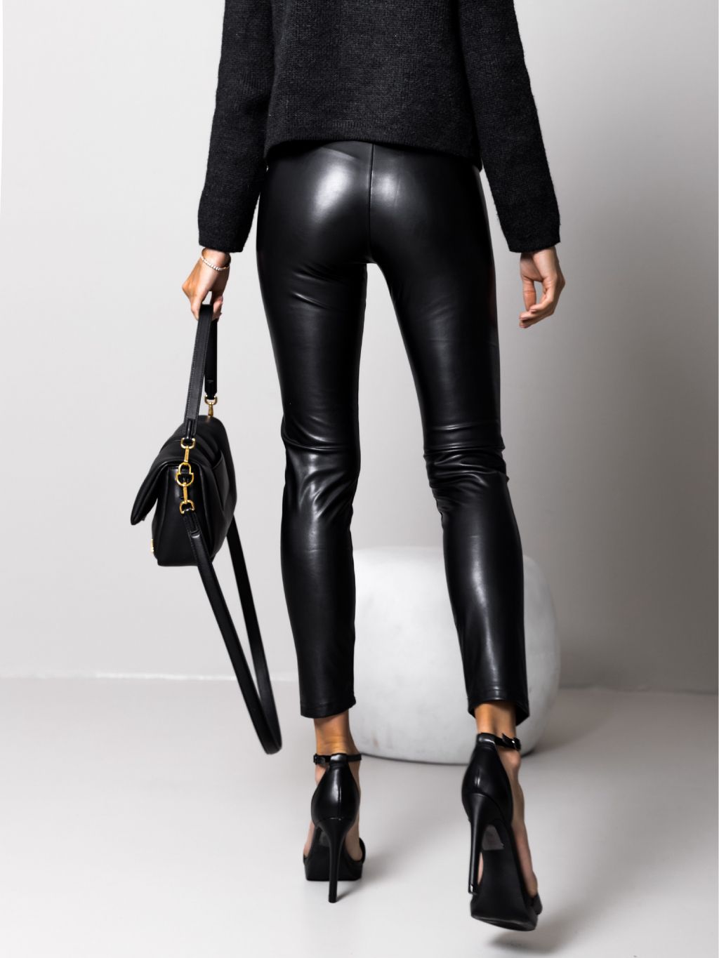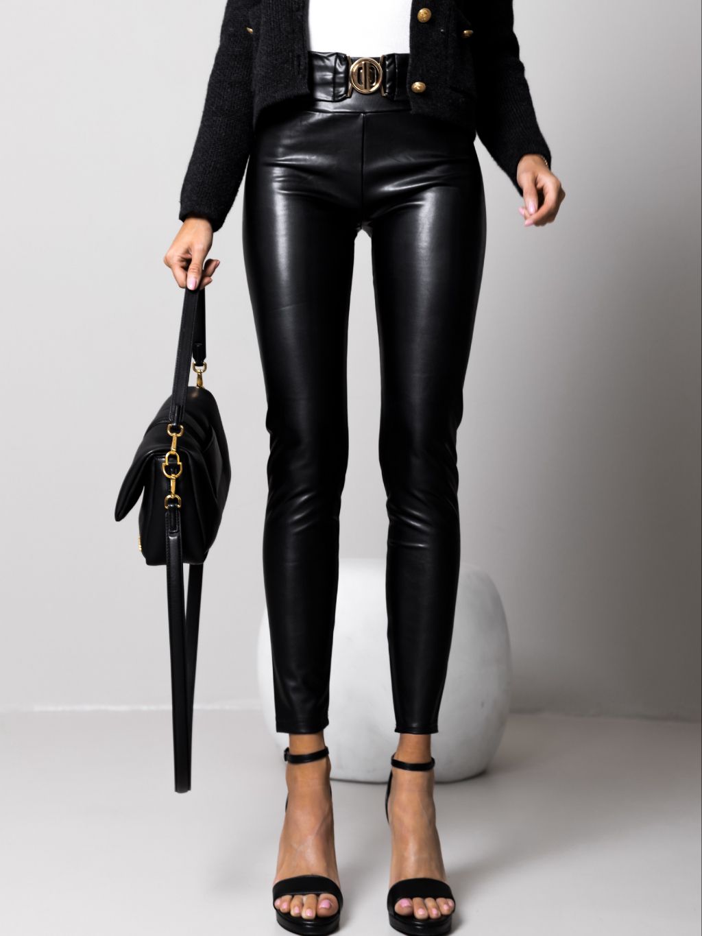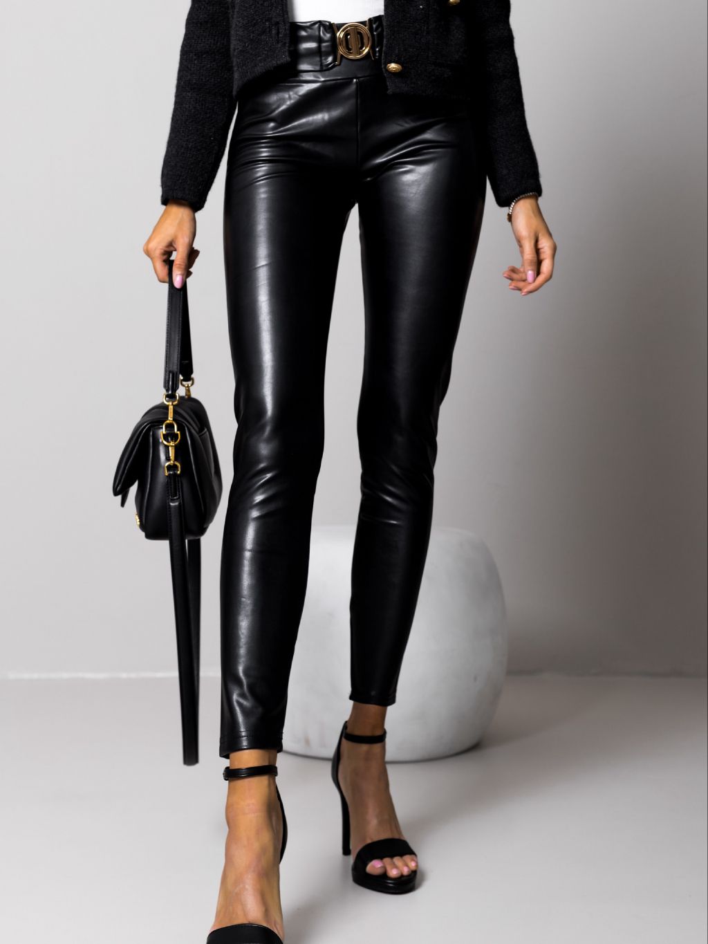 Černé lesklé koženkové kalhoty NAJADY s páskem