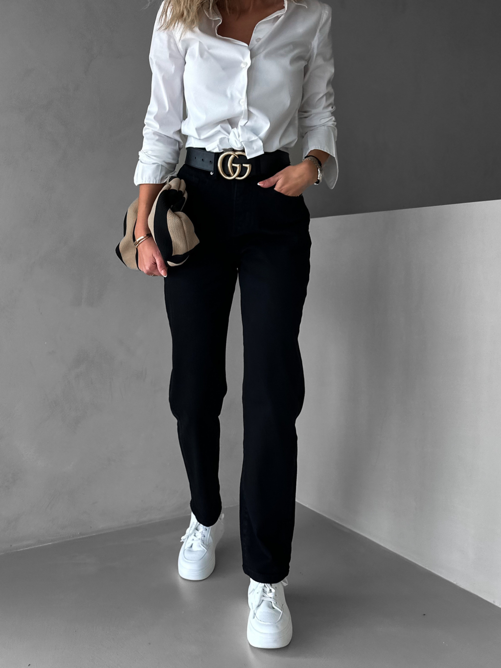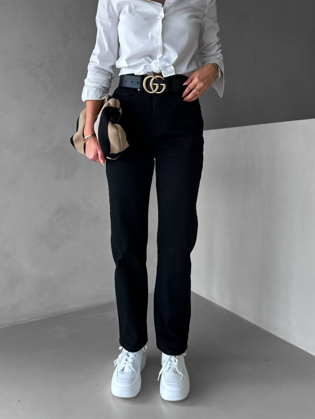 Černé mom jeans džíny DOGAN s vysokým pasem