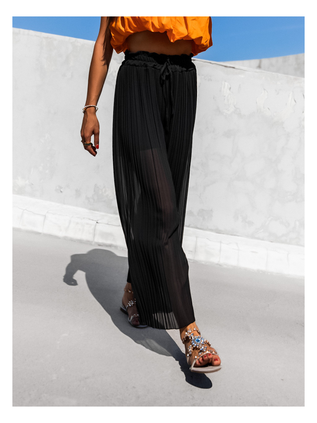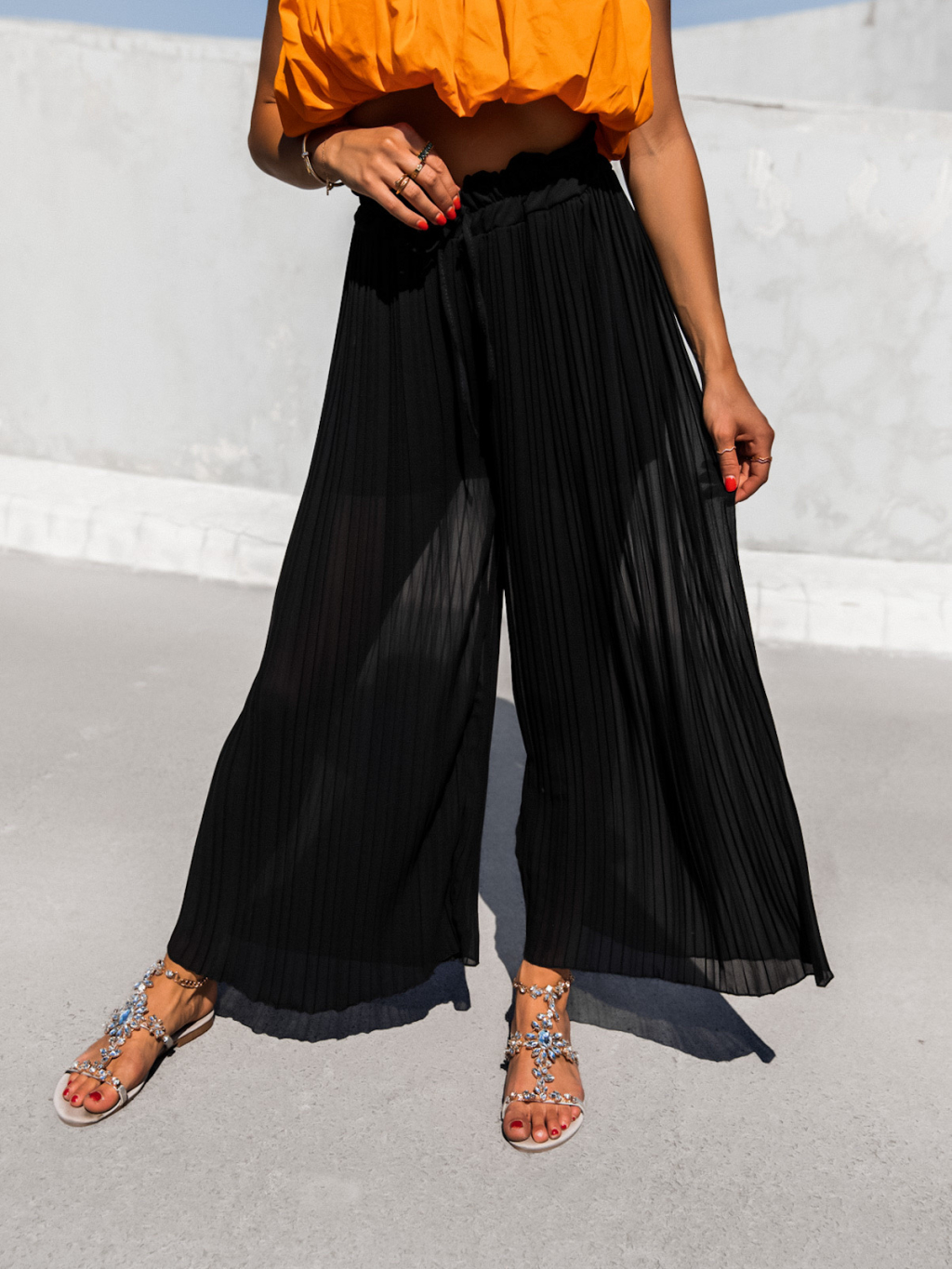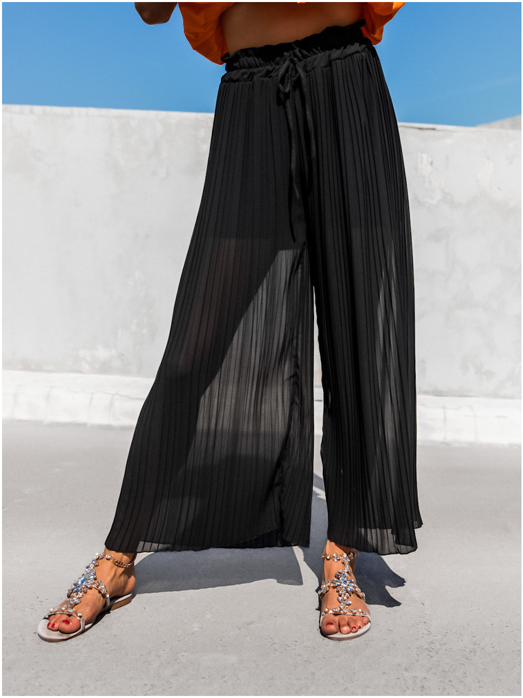 Černé plisované elegantní kalhoty SELIE