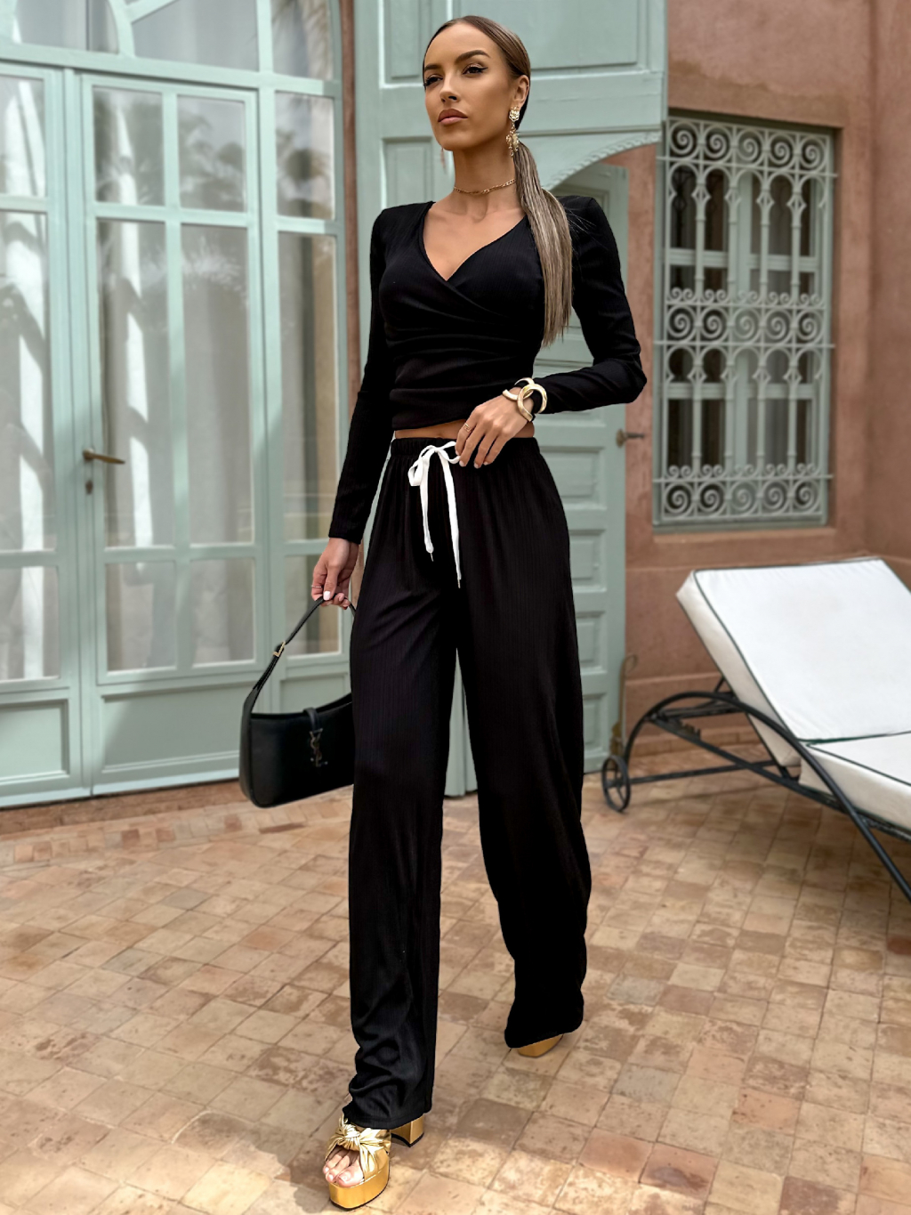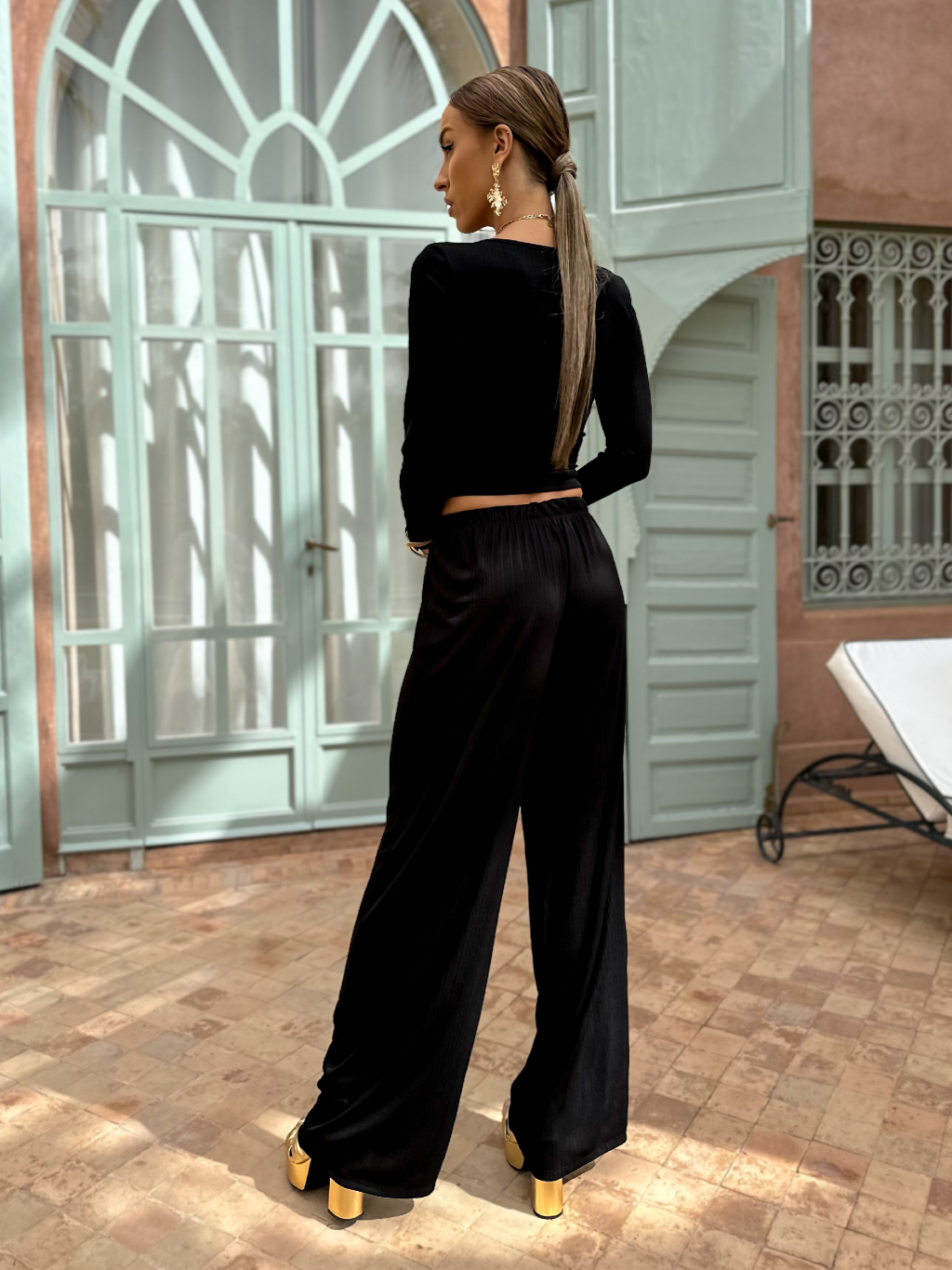 Černé pohodlné kalhoty AJSAL s rozšířenými nohavicemi