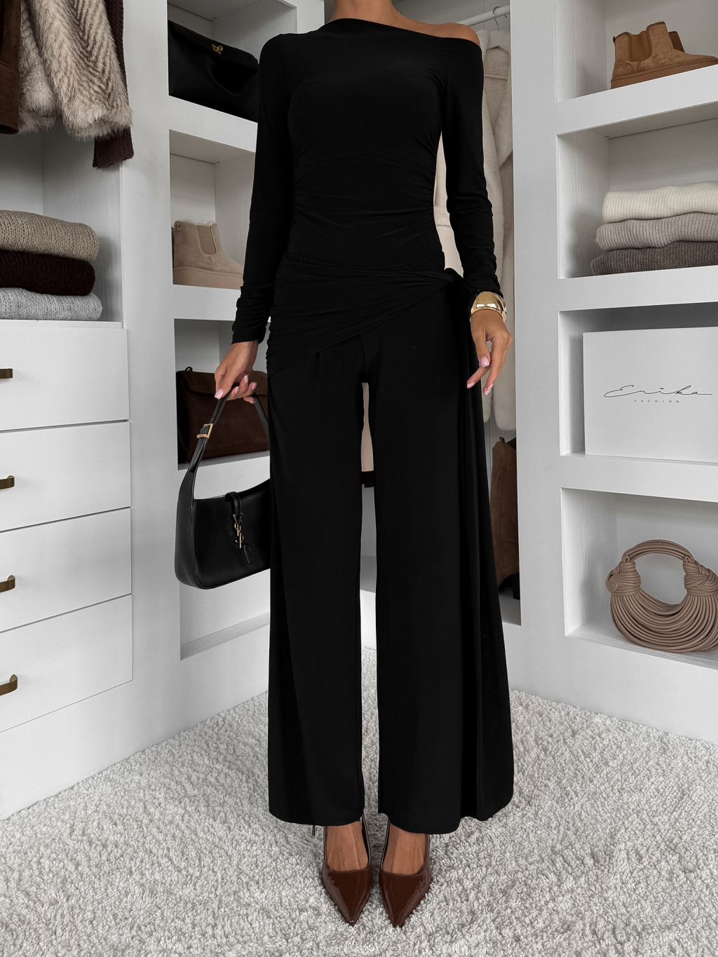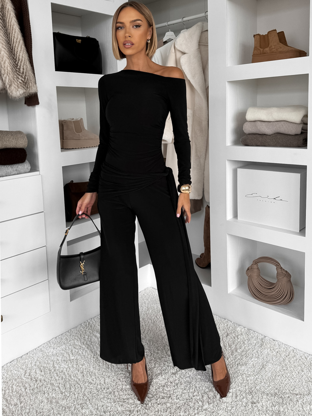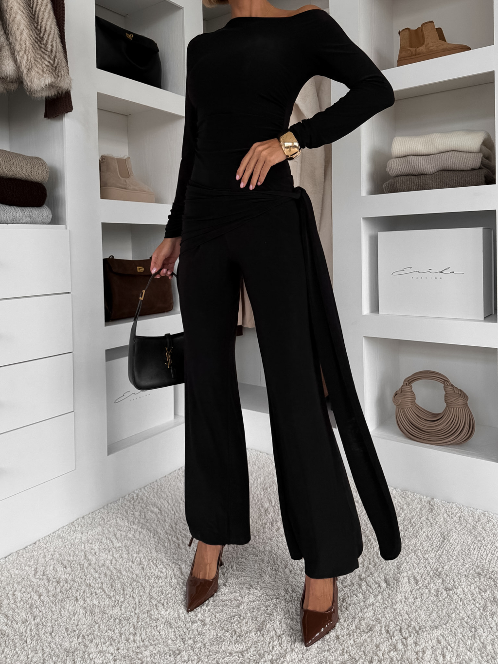 Černé společenské elegantní kalhoty IRAVELL s vlečkou