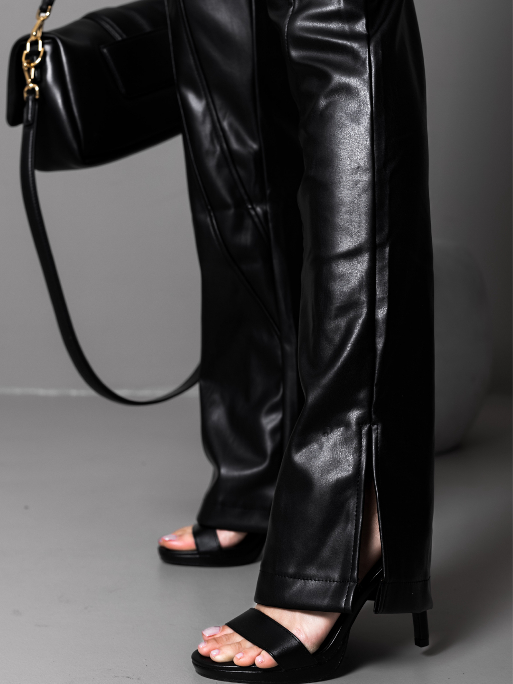 Černé stylové koženkové kalhoty ELETRA se zipy