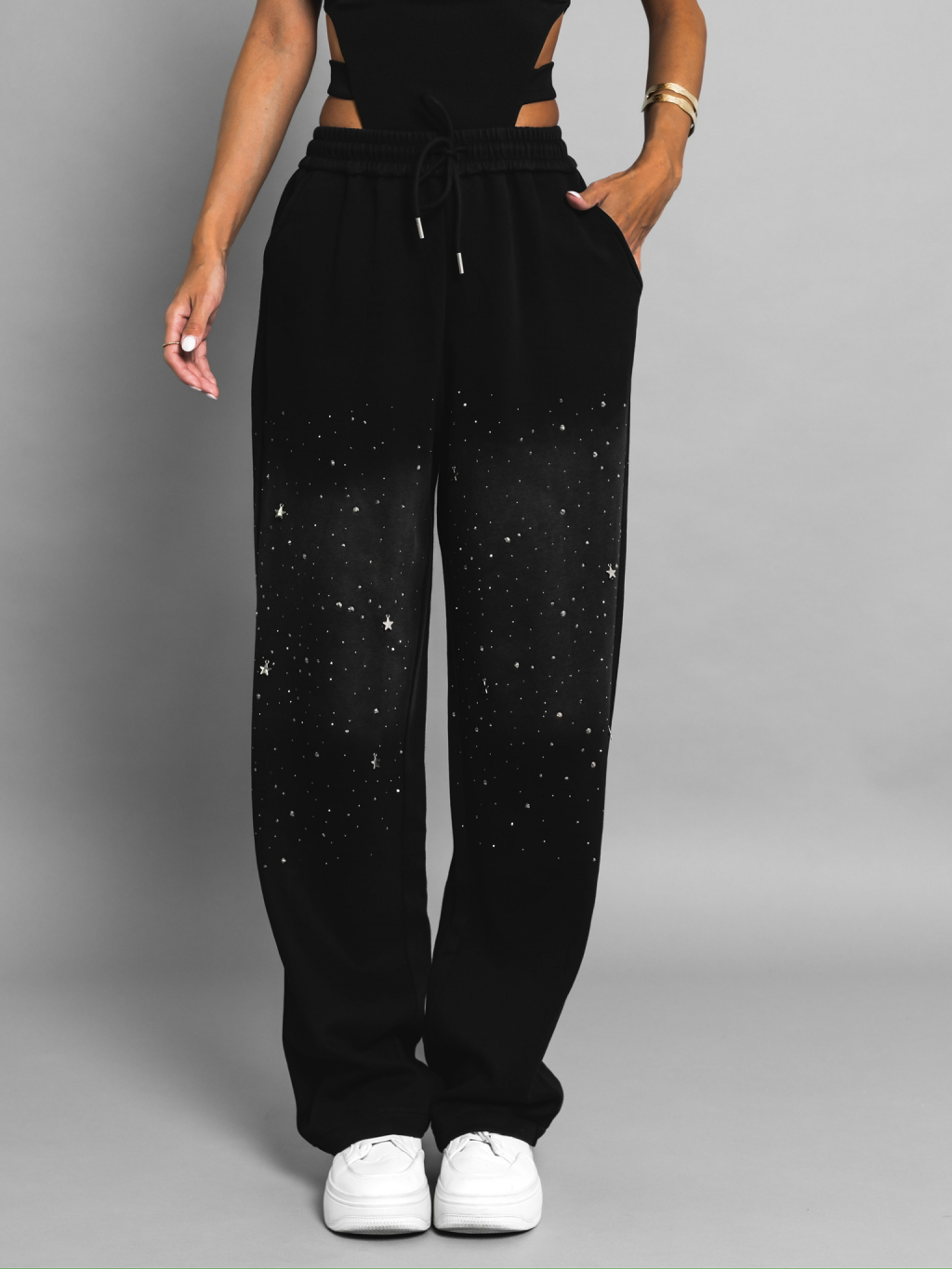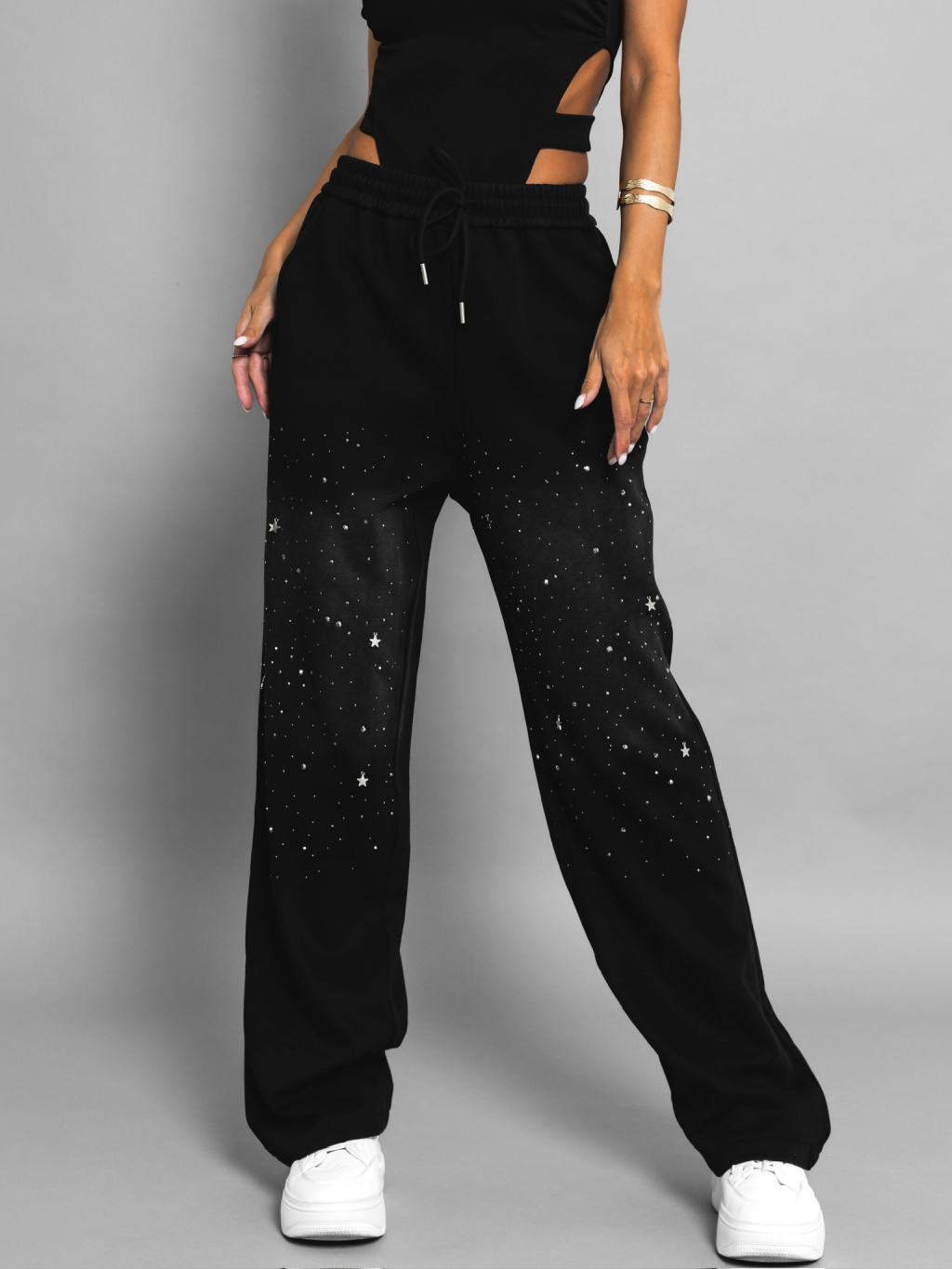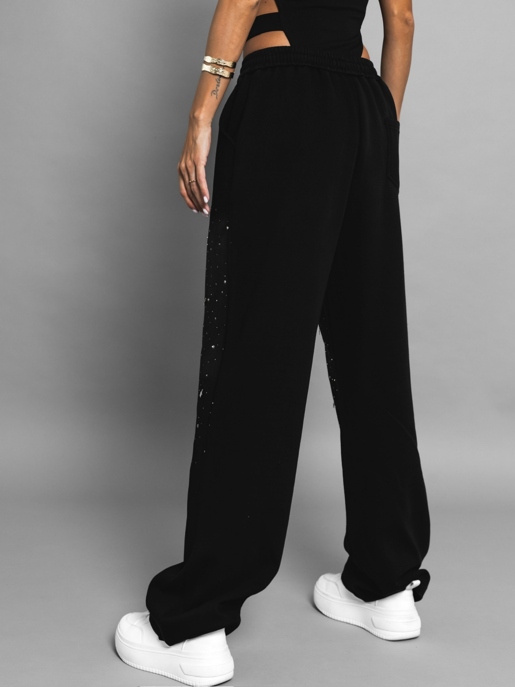 Černé třpytivé oversize tepláky ACKEE s kamínky