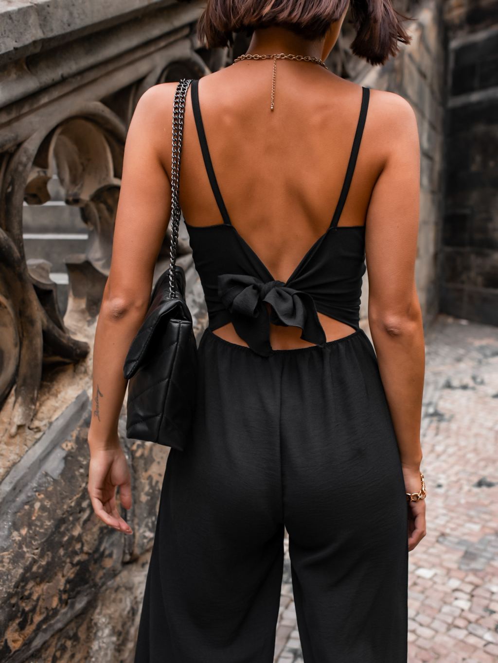 Černý dlouhý overal MARIAH s vázáním na zádech