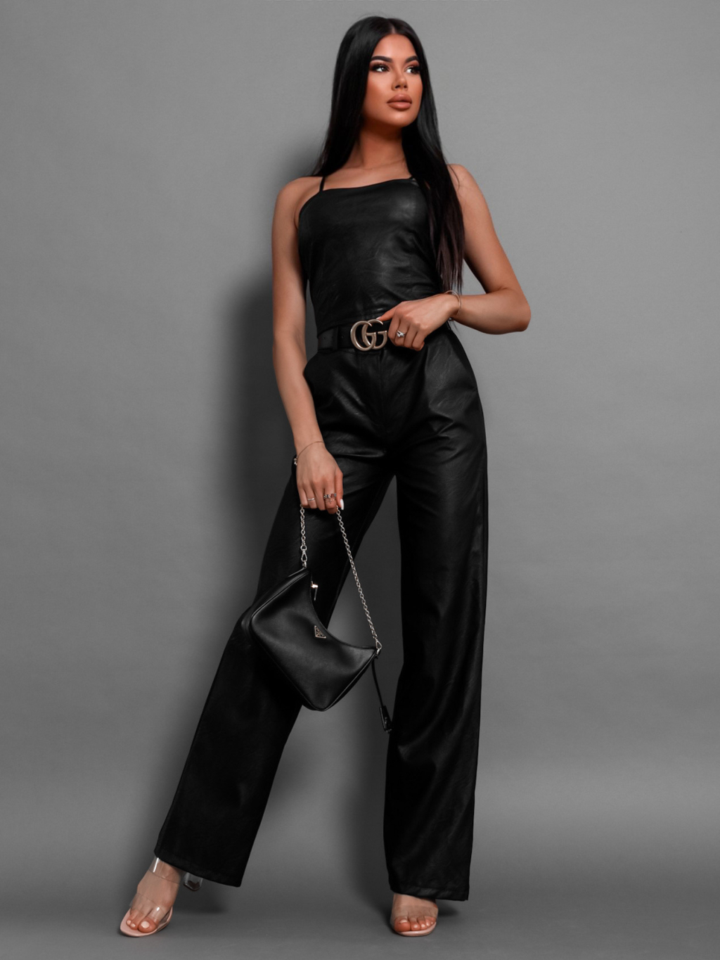Černý dvoudílný komplet SUPRIME koženkového vzhledu