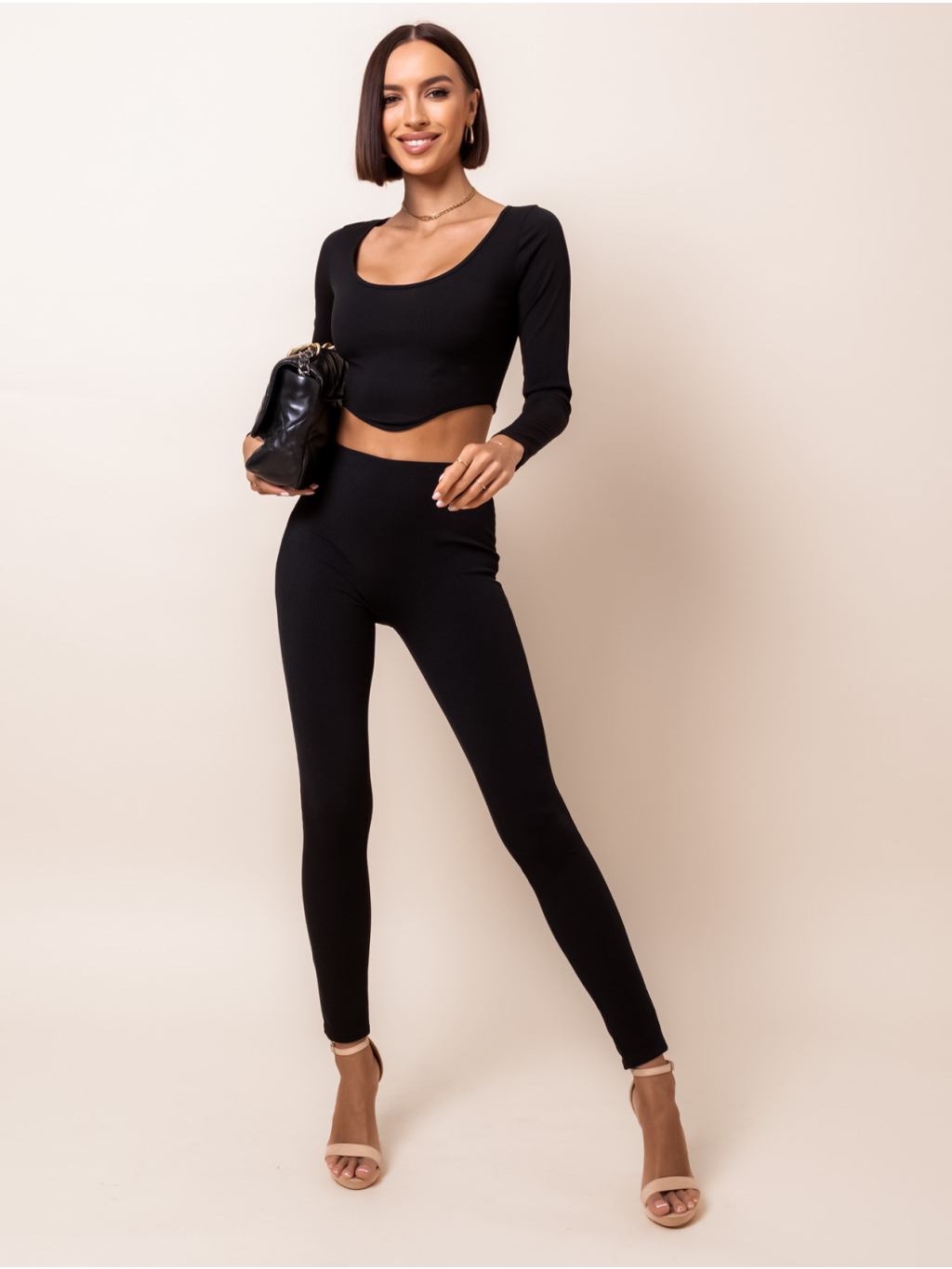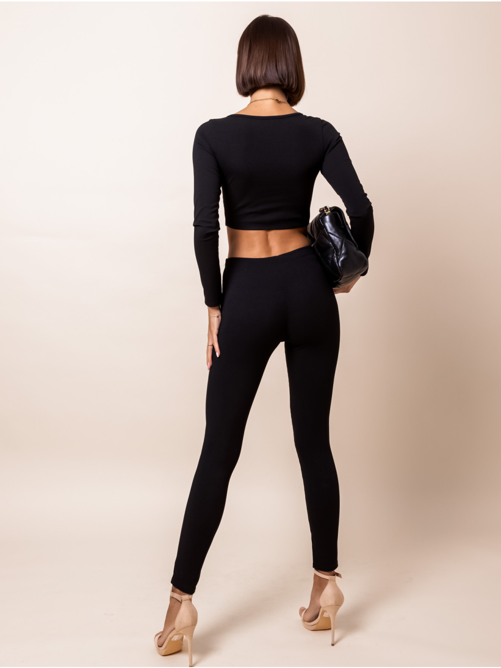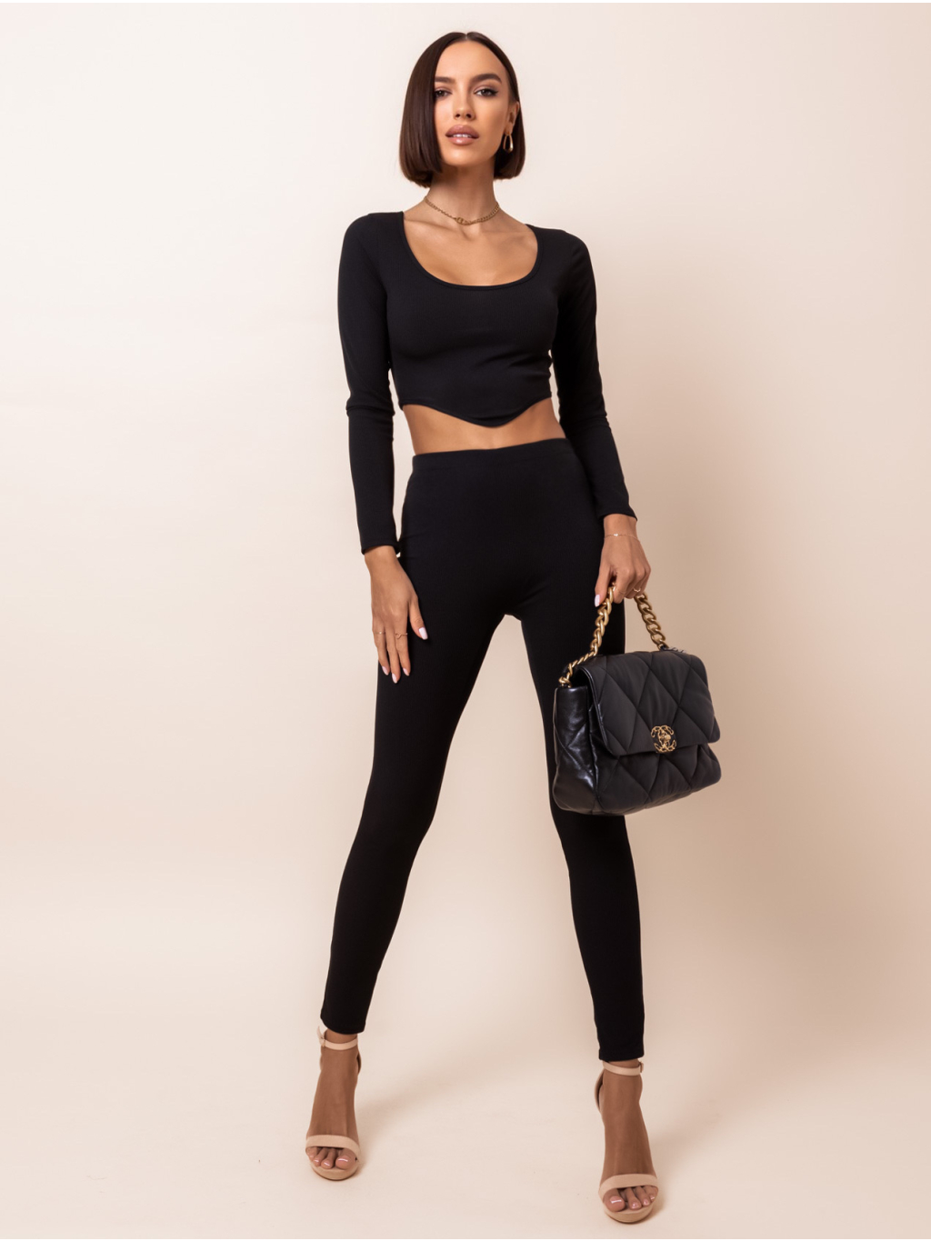 Černý dvoudílný žebrovaný komplet JANIES s dlouhým rukávem