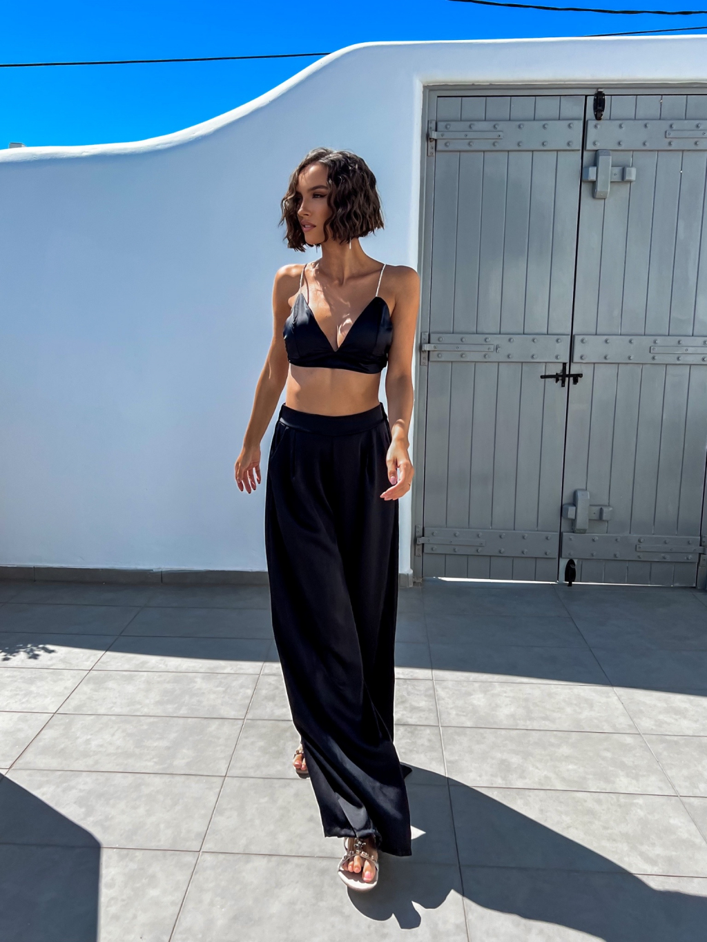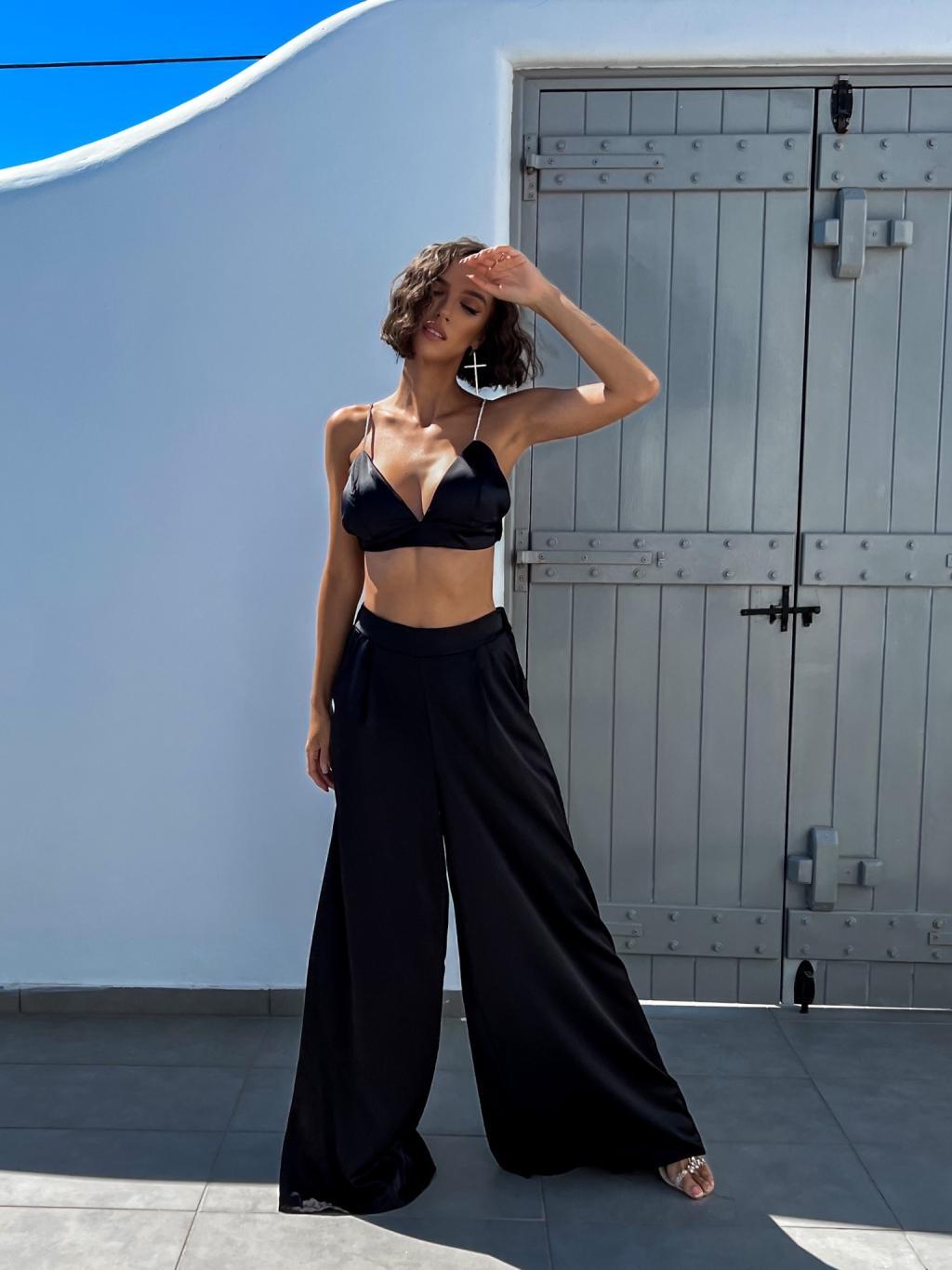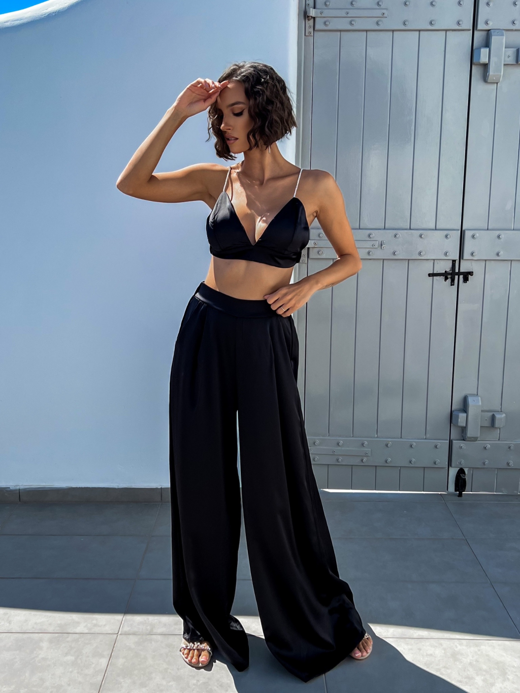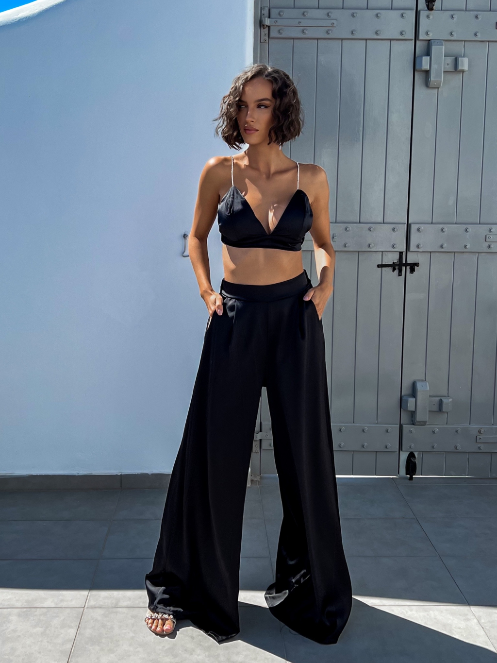 Černý elegantní dvoudílný komplet SUCULENT s třpytivými kamínky