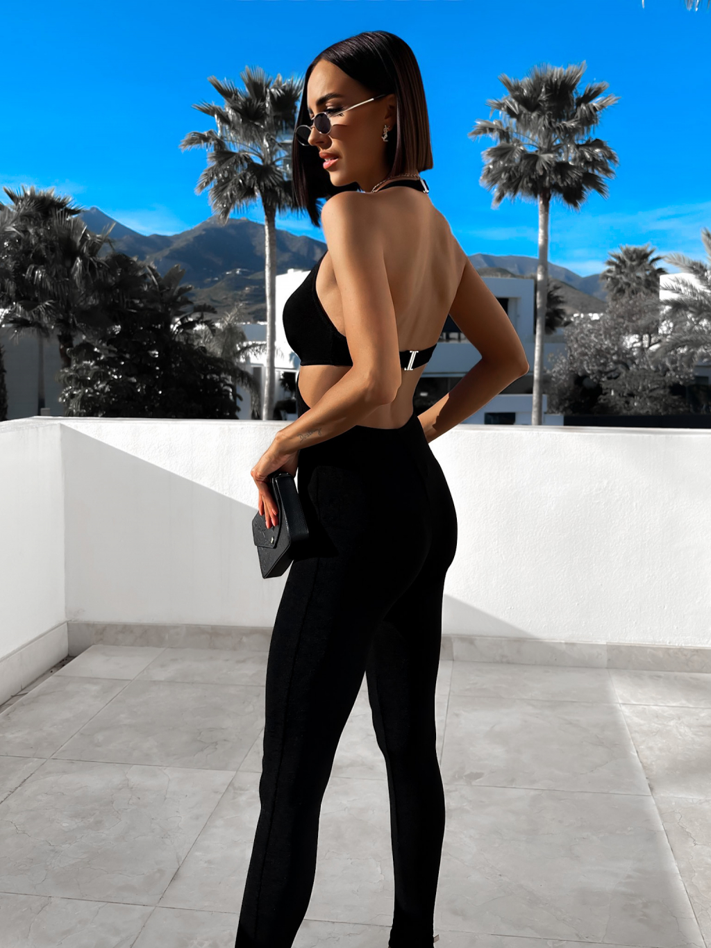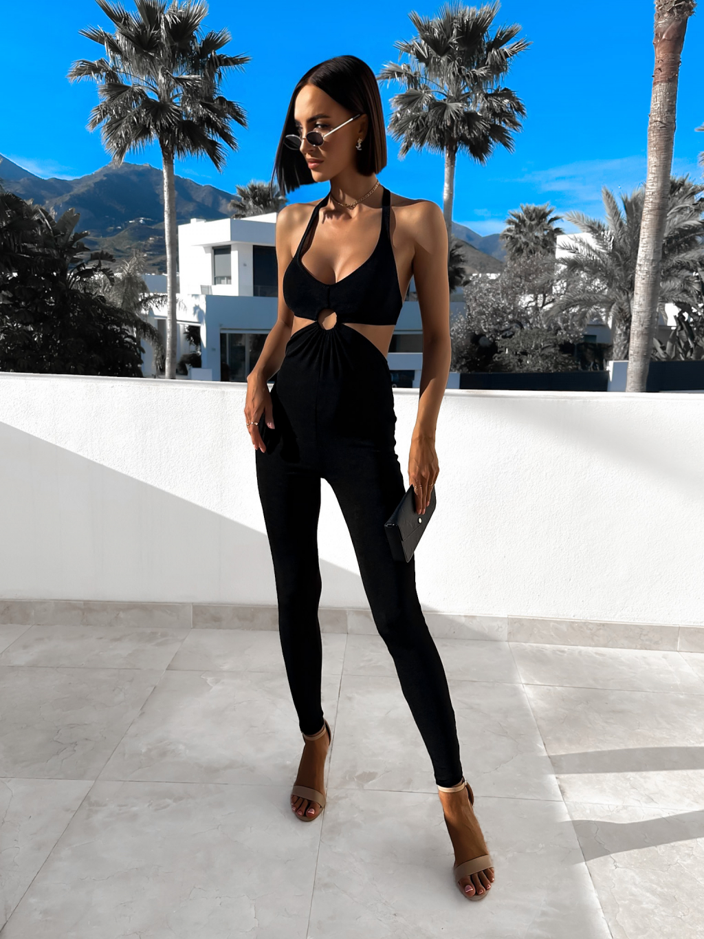 Černý elegantní overal INDUSI s průstřihy