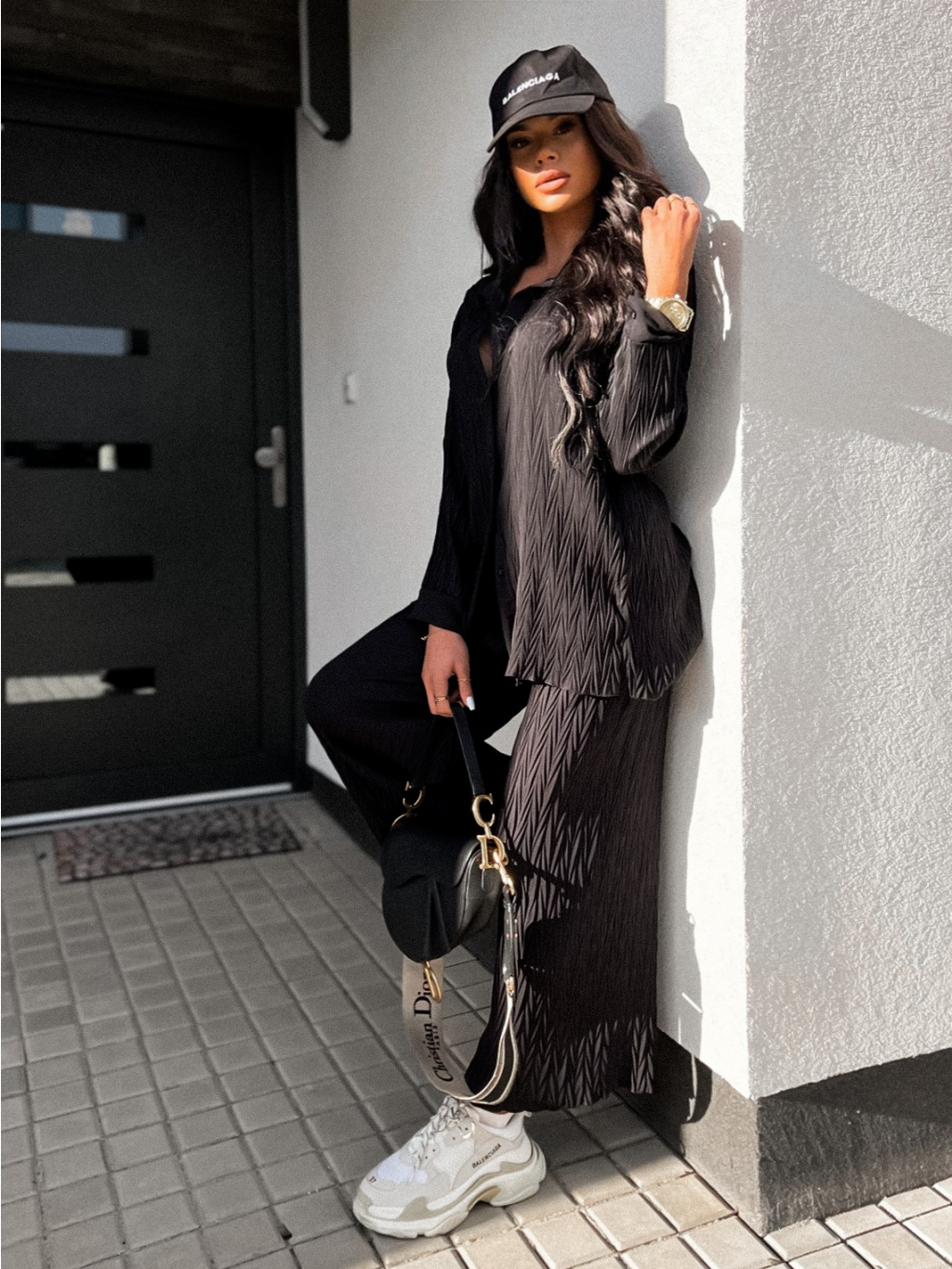 Černý jednoduchý dvoudílný komplet DAFODIL se vzorem