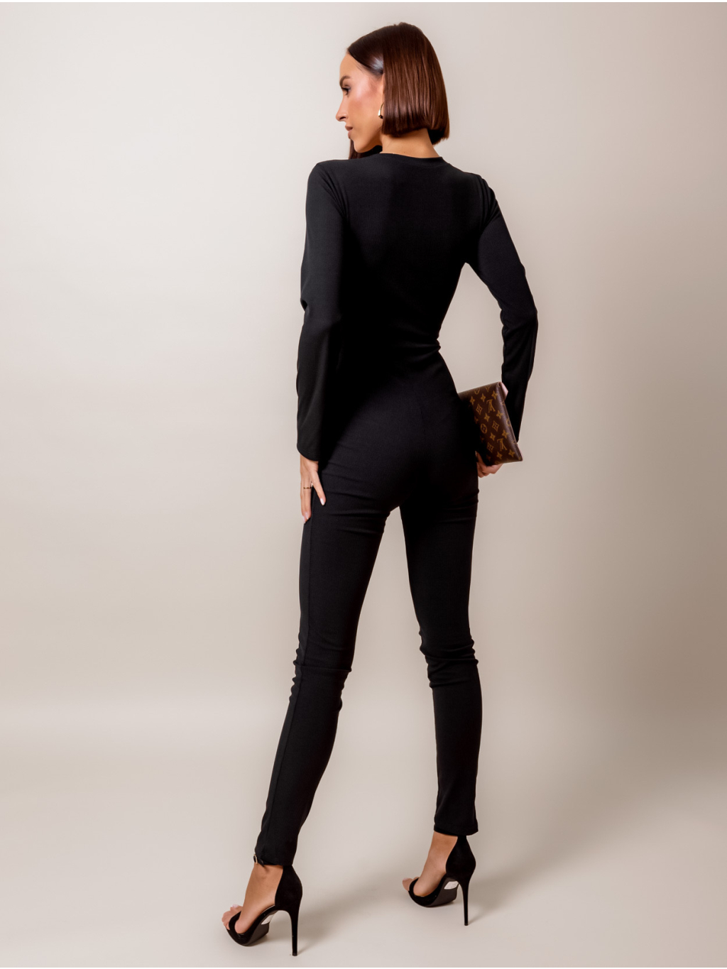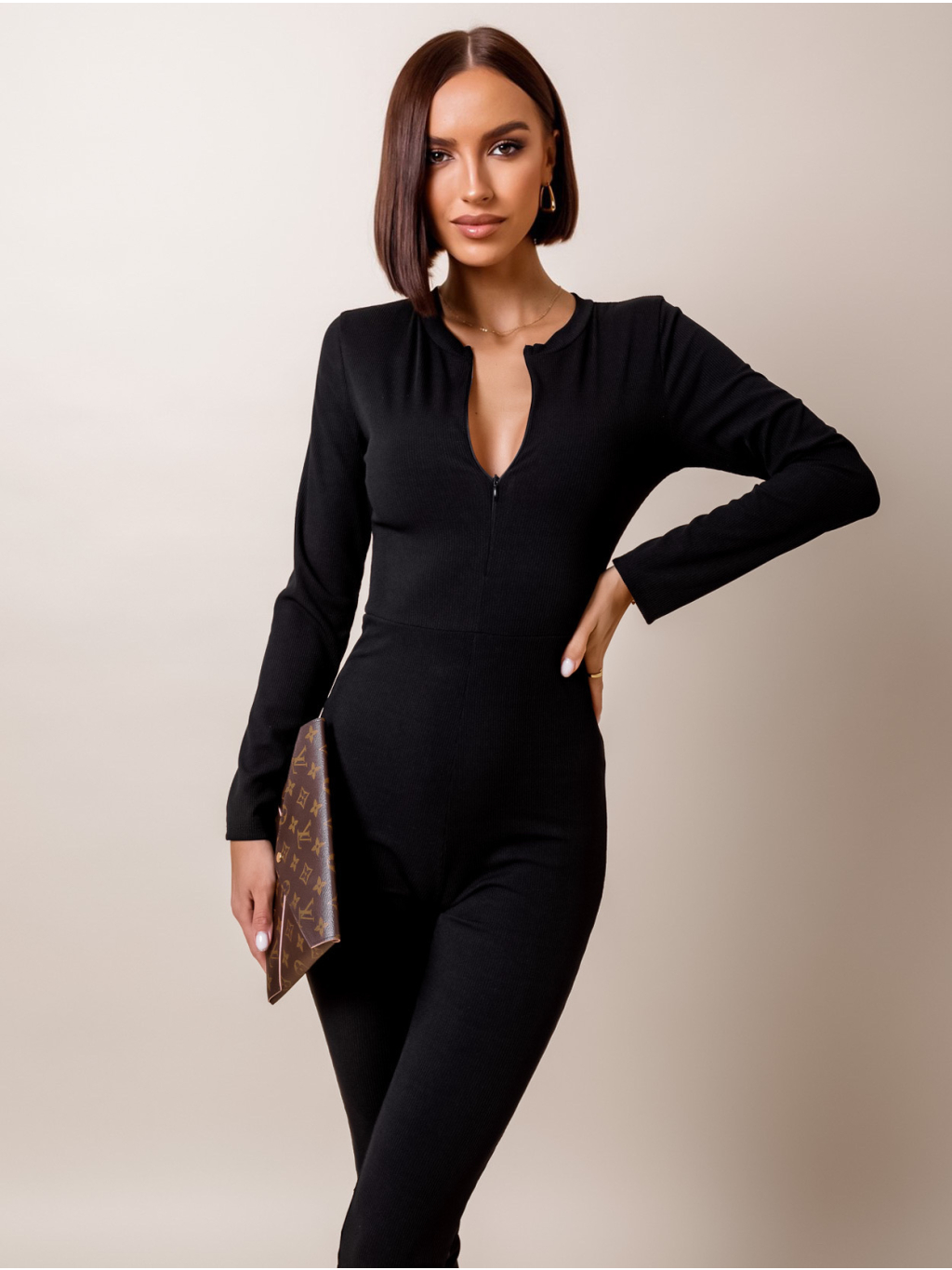 Černý jednoduchý overal KAYA s dlouhým rukávem