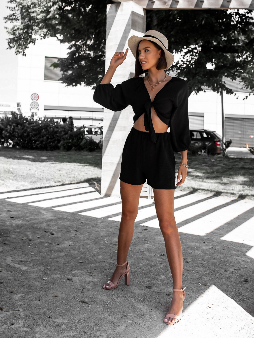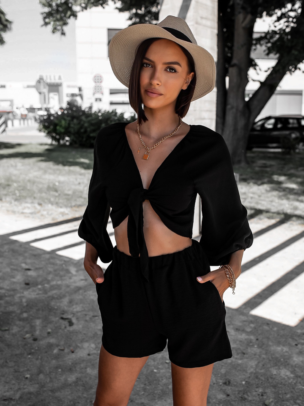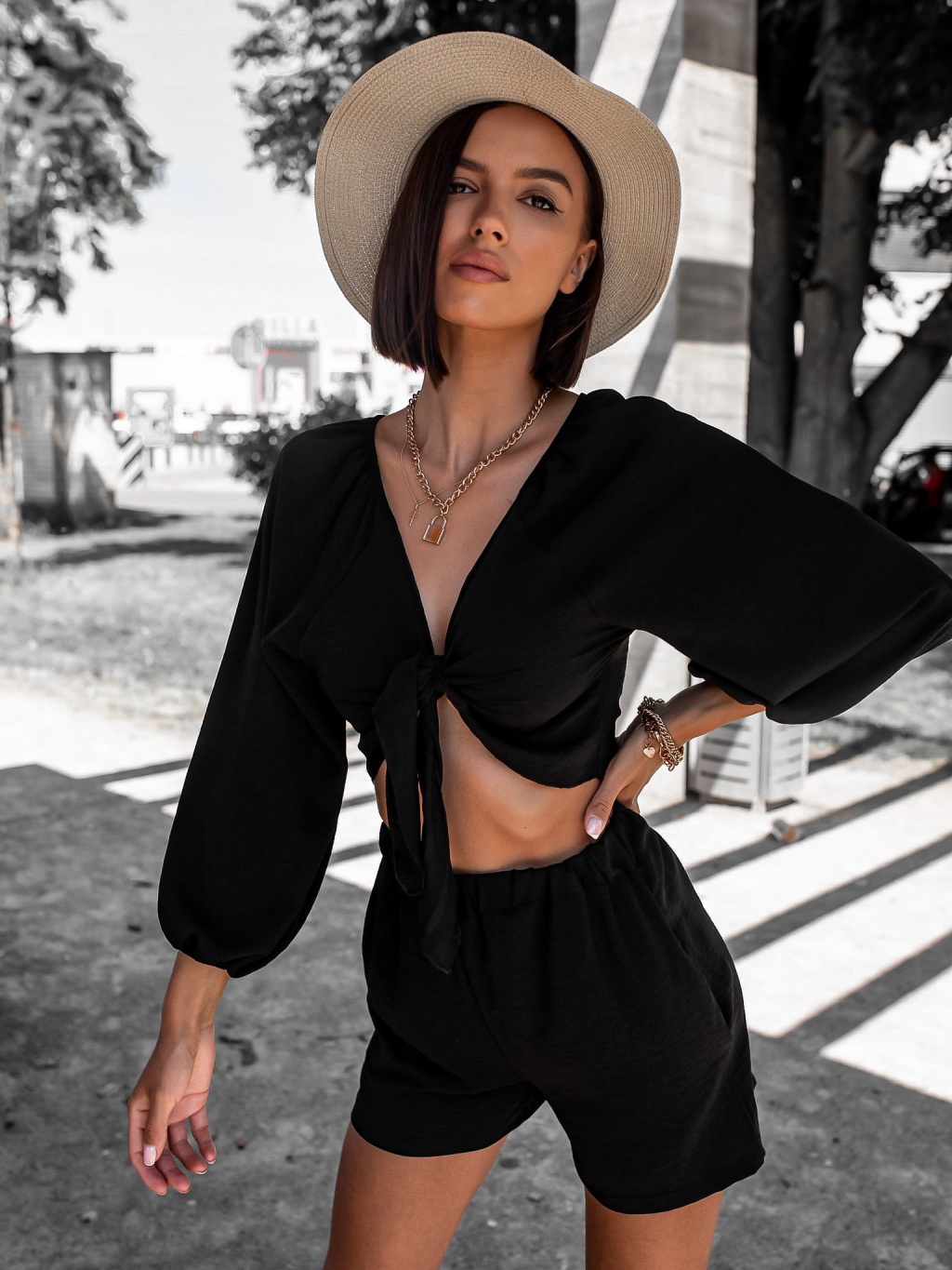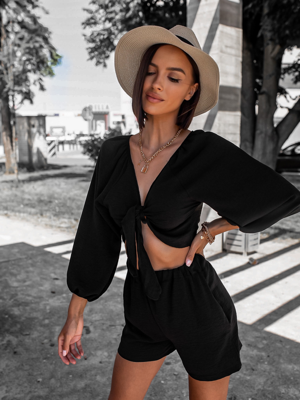 Černý krátký dvoudílný komplet AWAY s vázáním