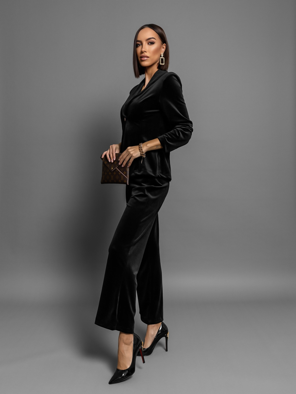 Černý semišový elegantní komplet CONTY