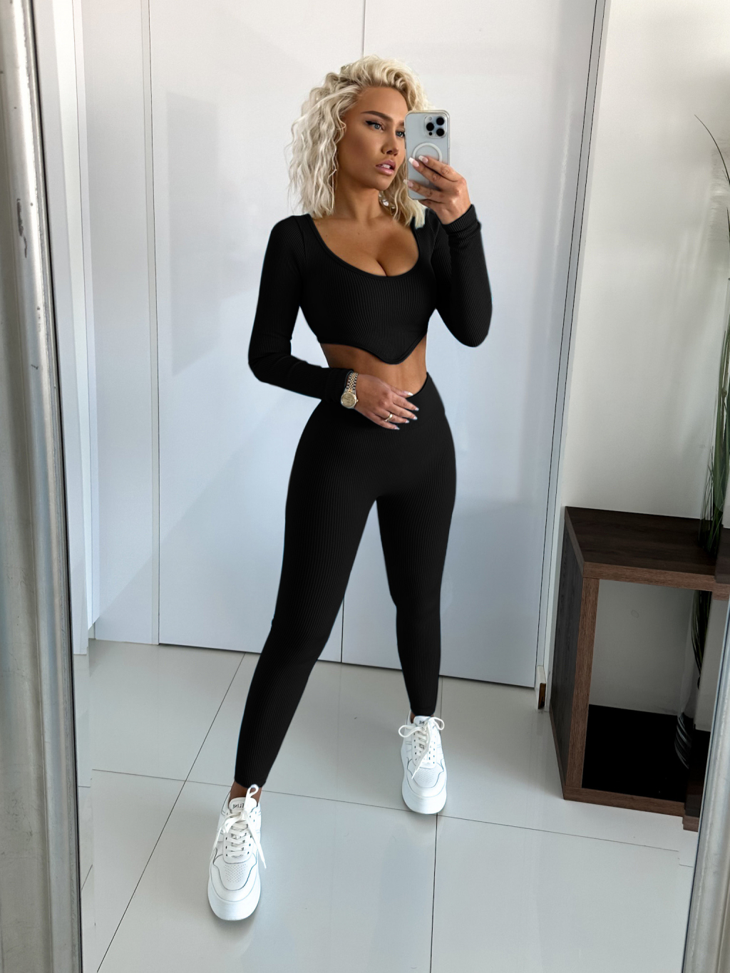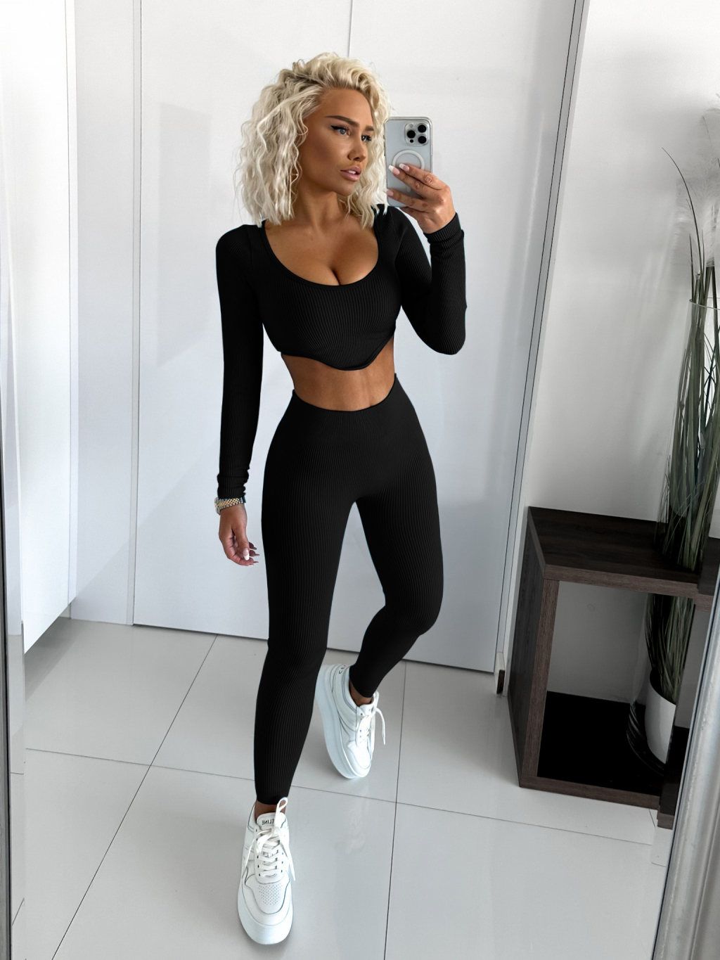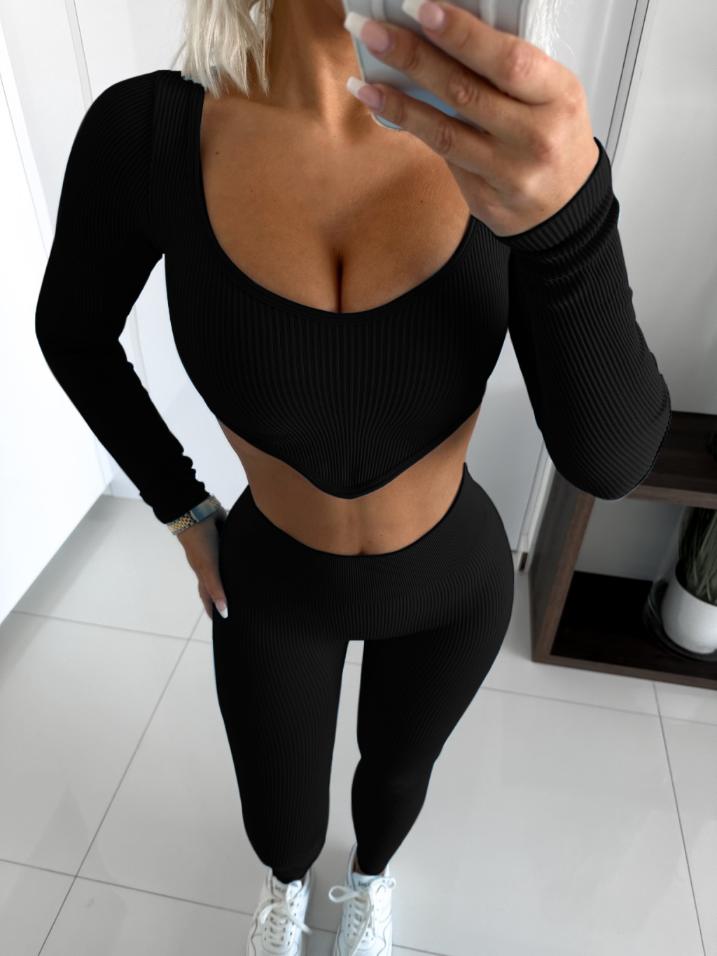 Černý žebrovaný dvoudílný komplet LAVERDES