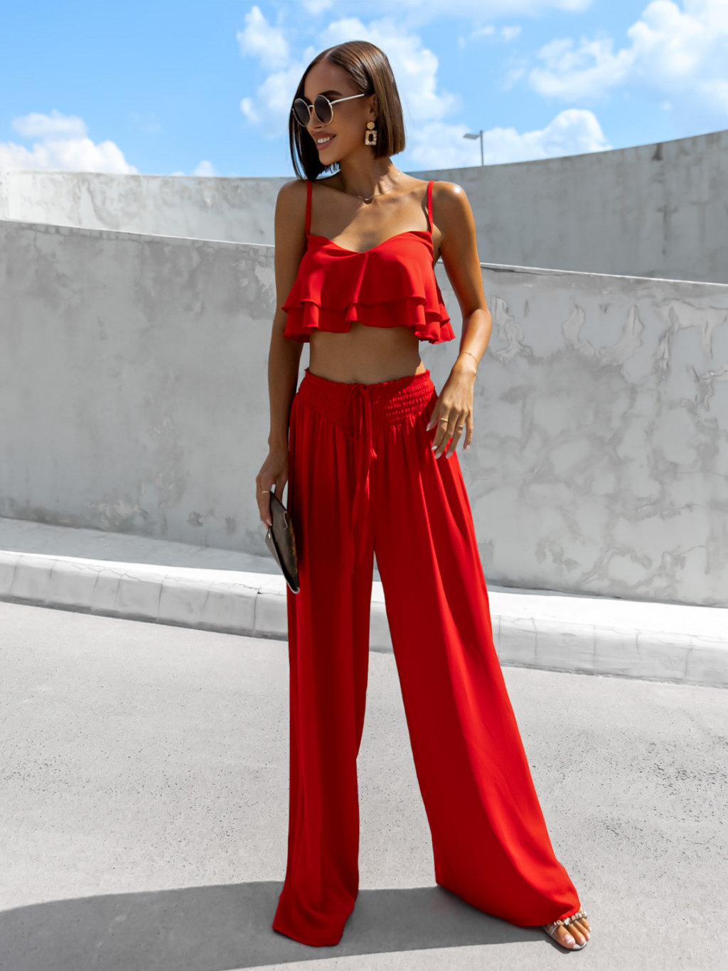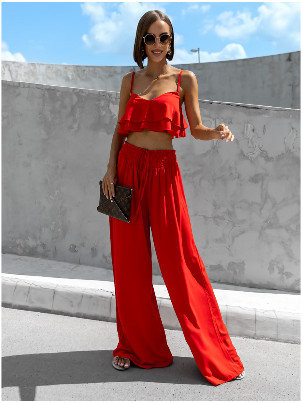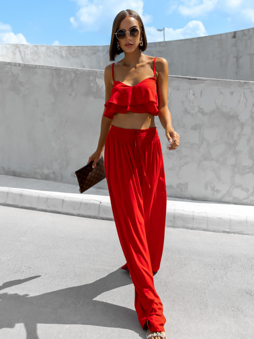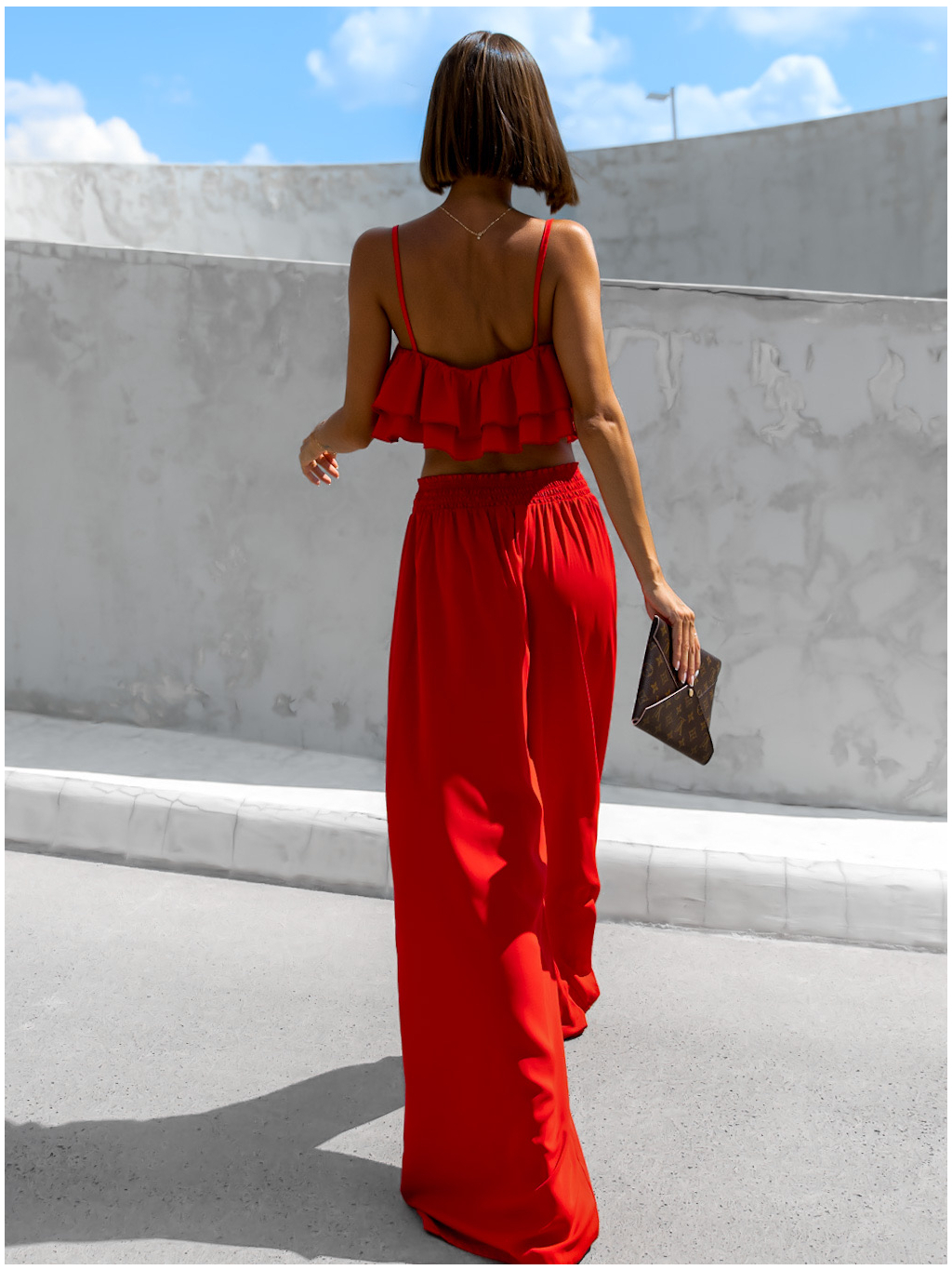 Červený elegantní dvoudílný komplet CORDELIE s volánky