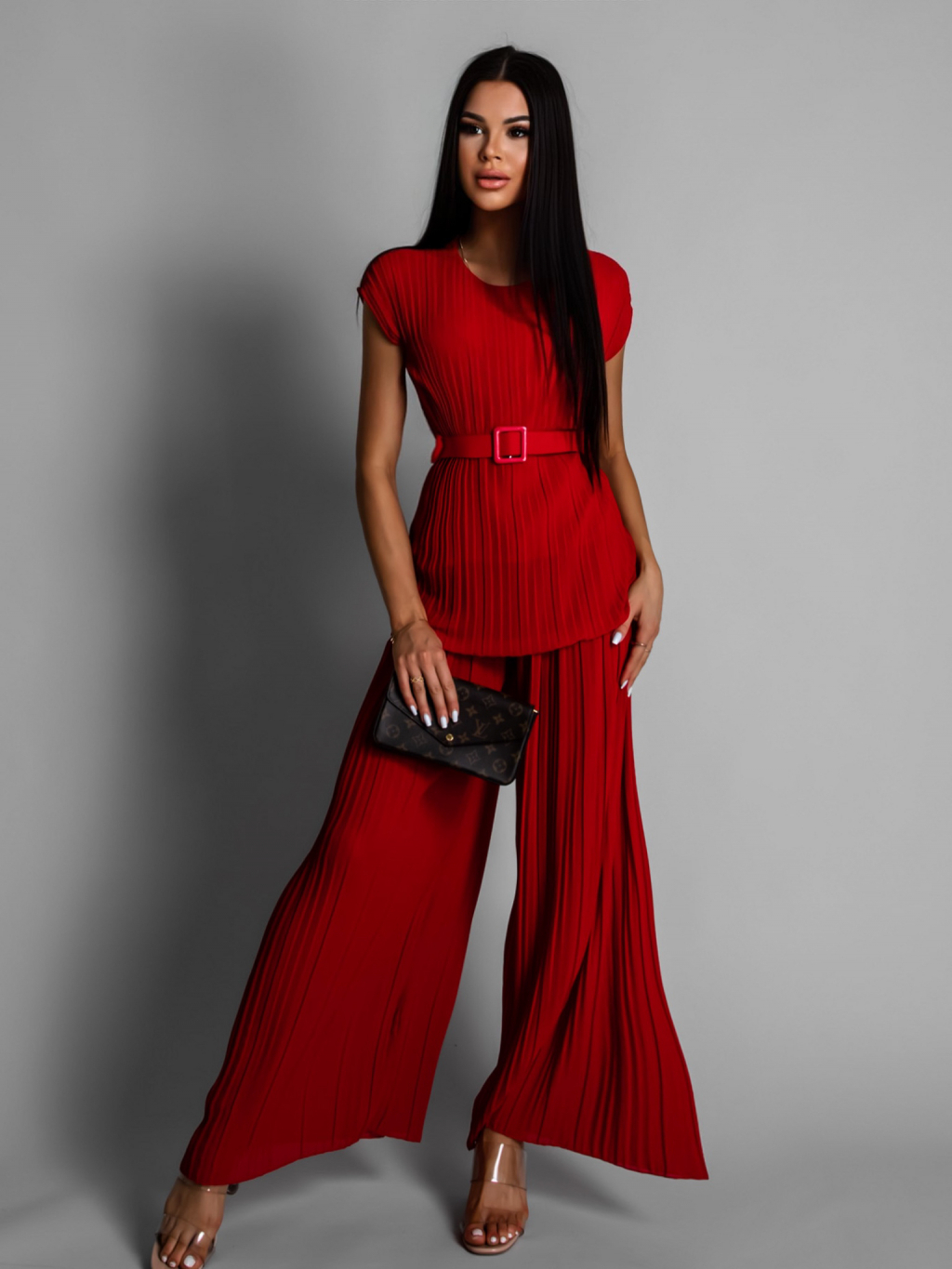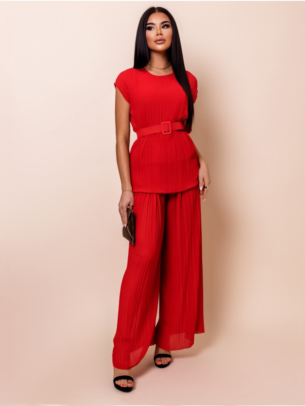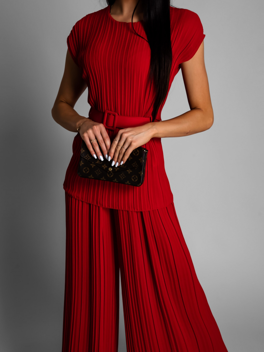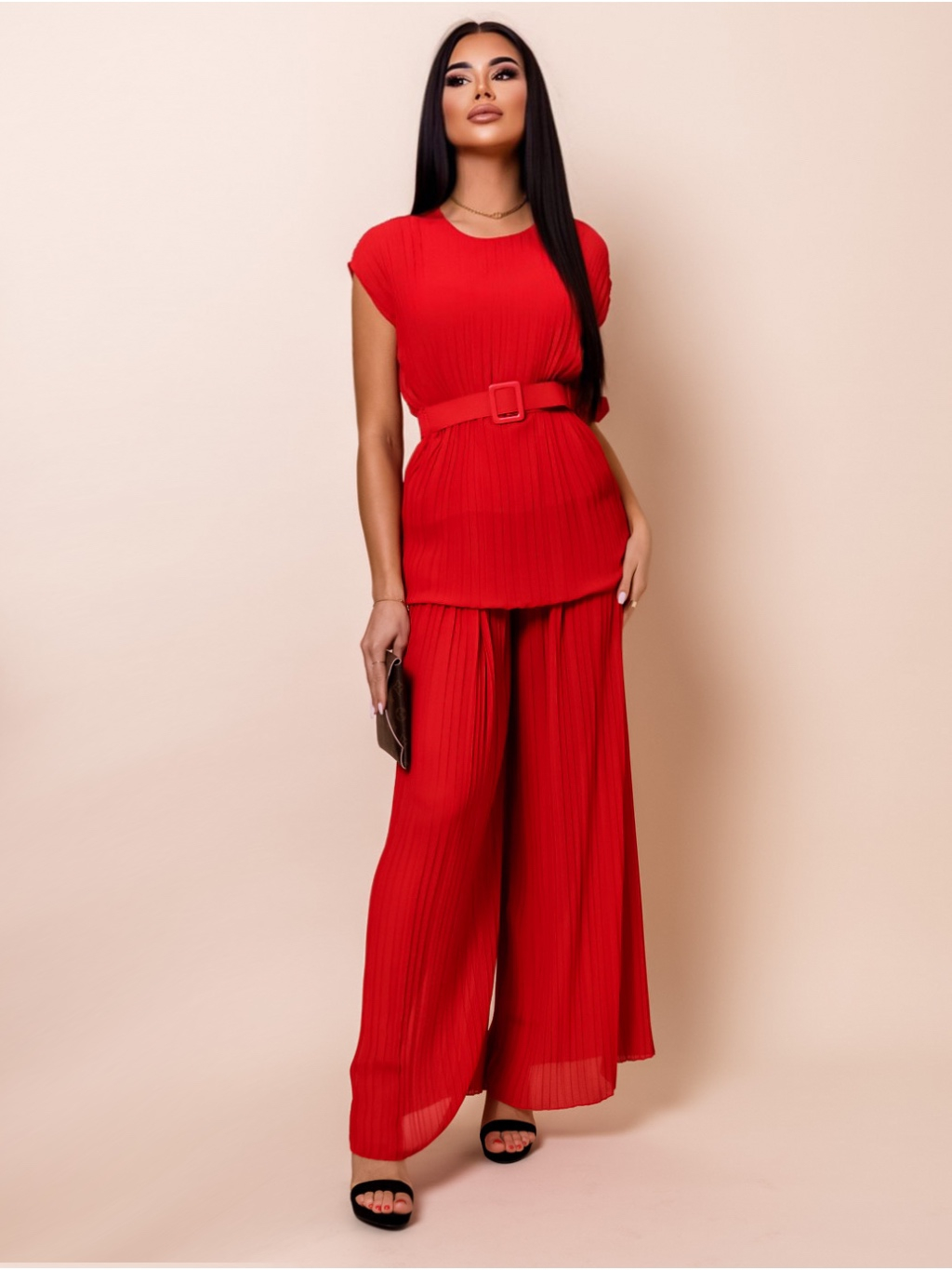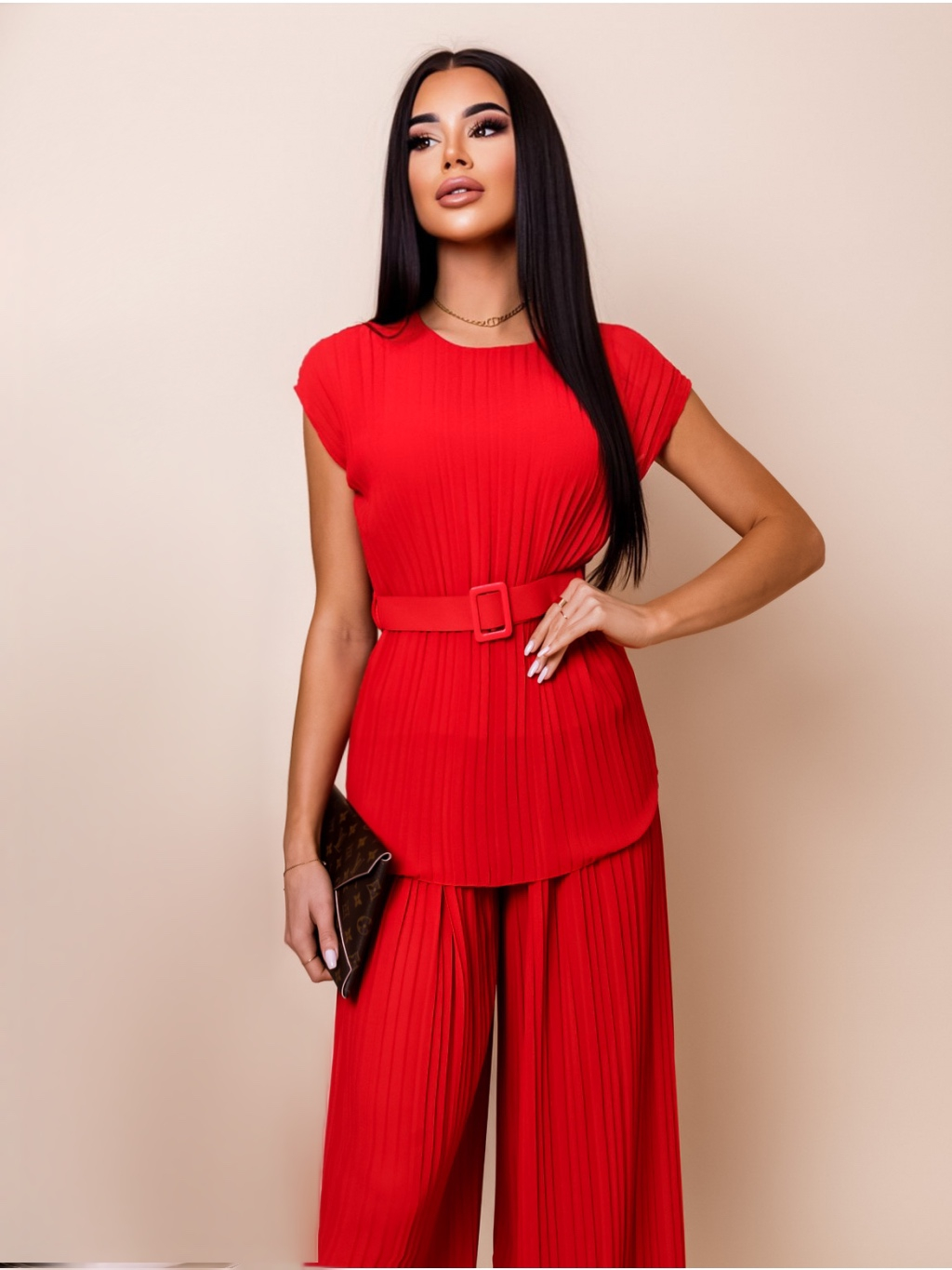 Červený elegantní dvoudílný komplet LARCH s páskem