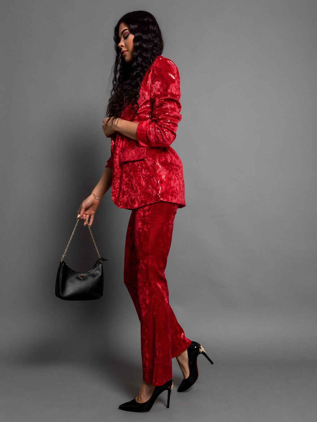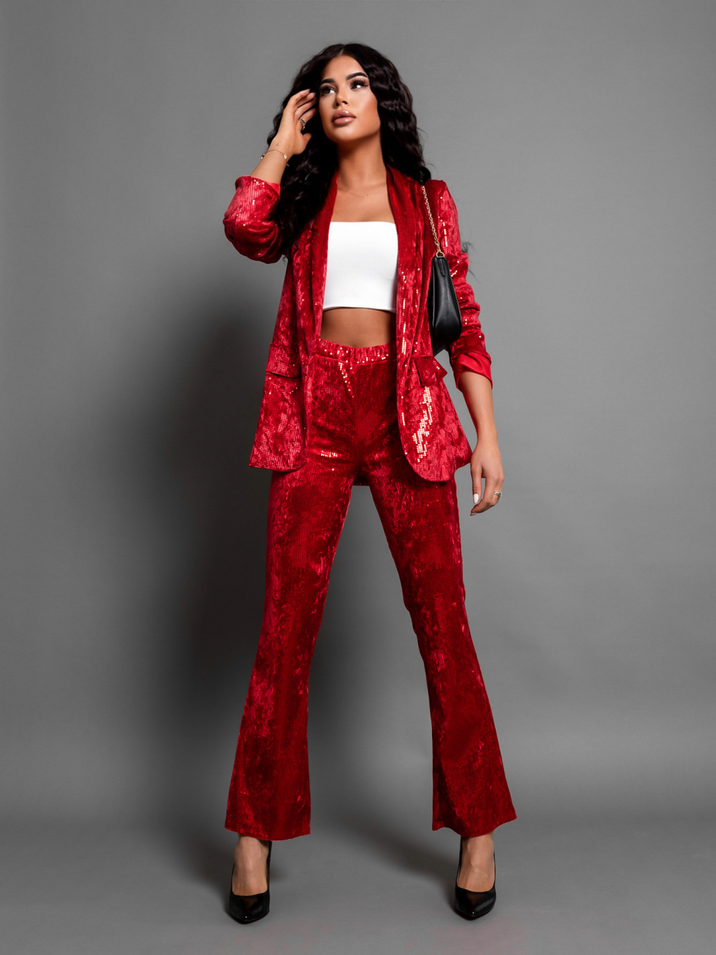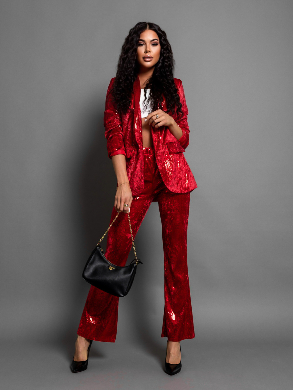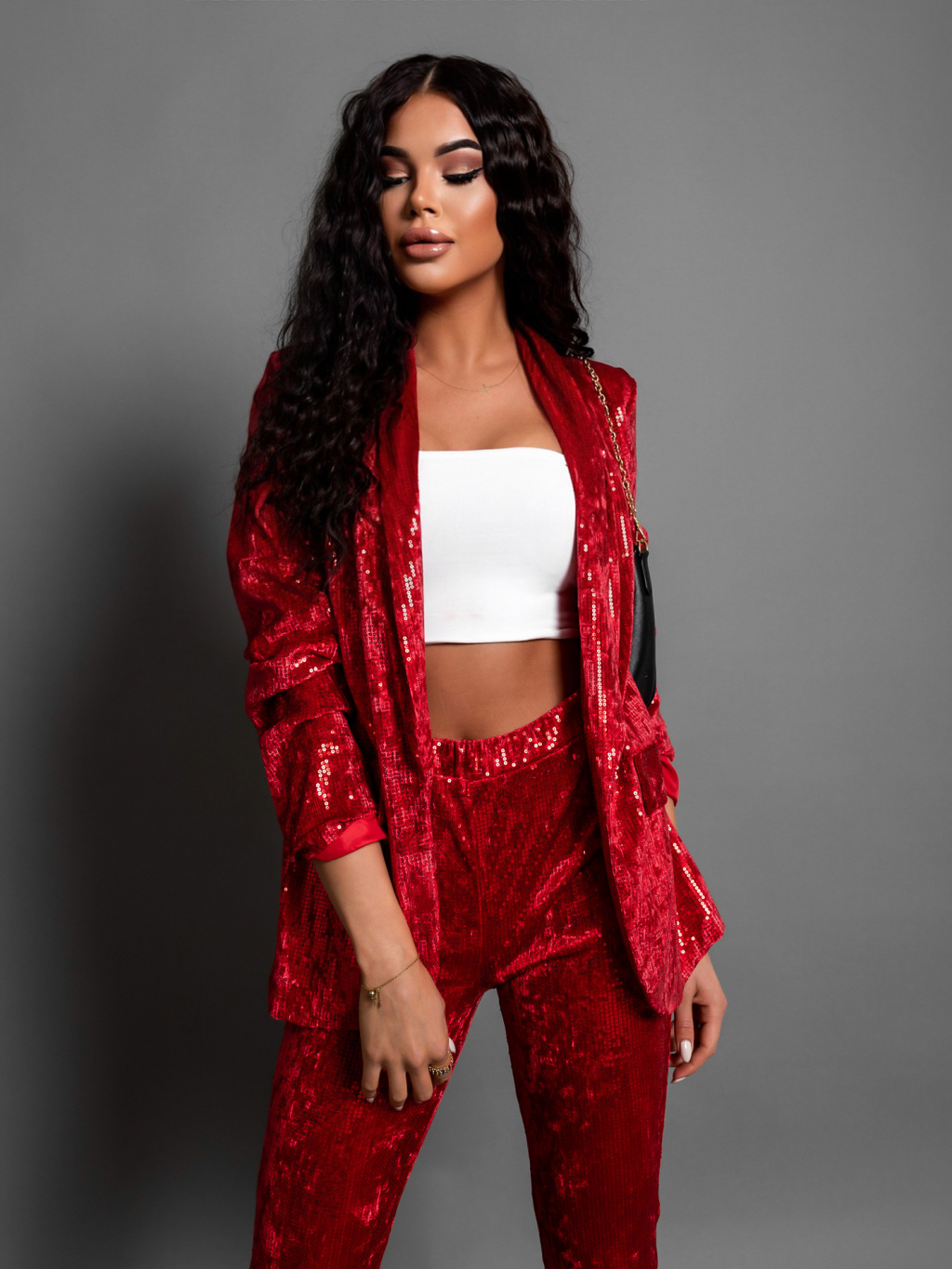 Červený elegantní komplet ERISE s flitry
