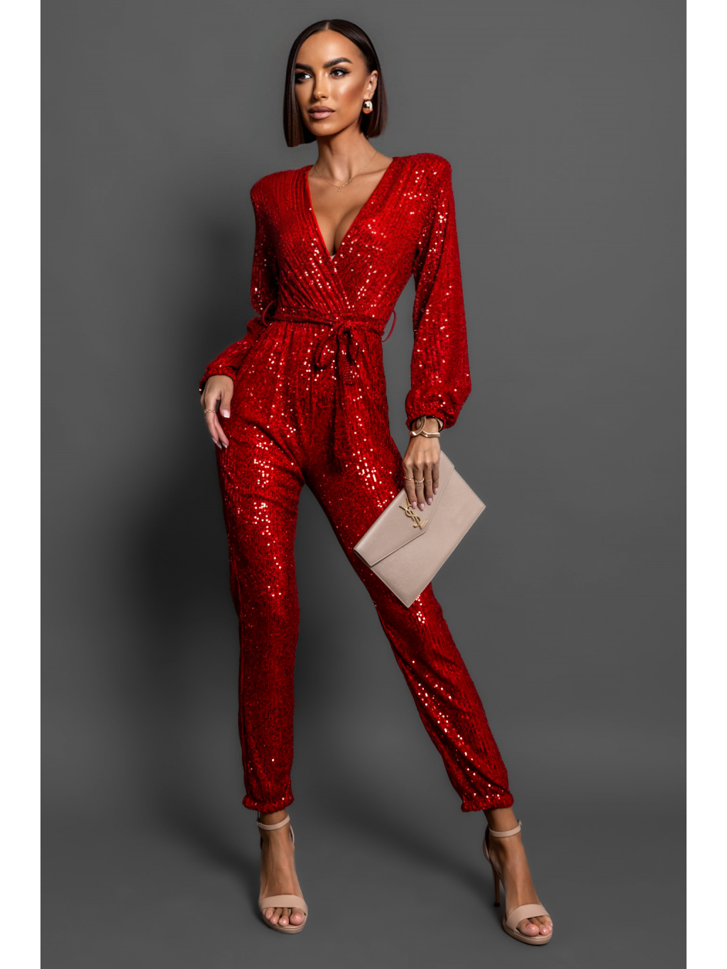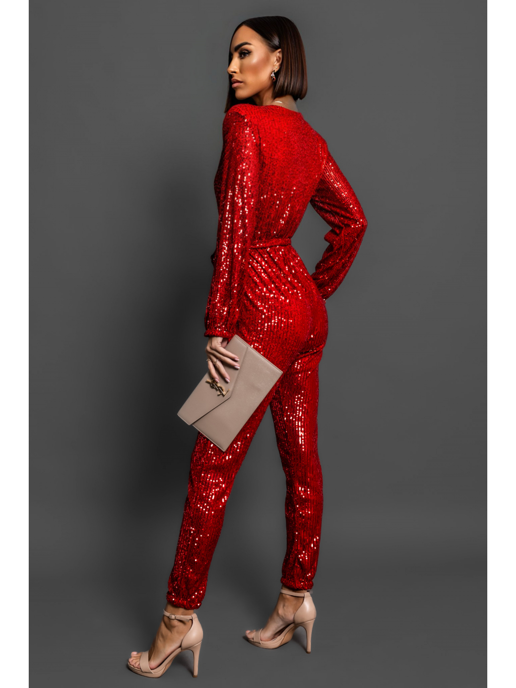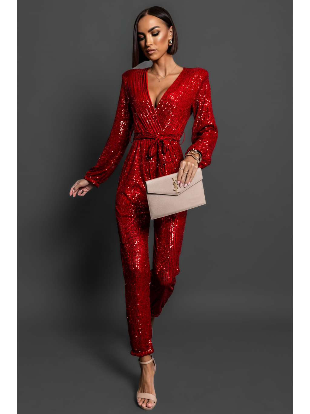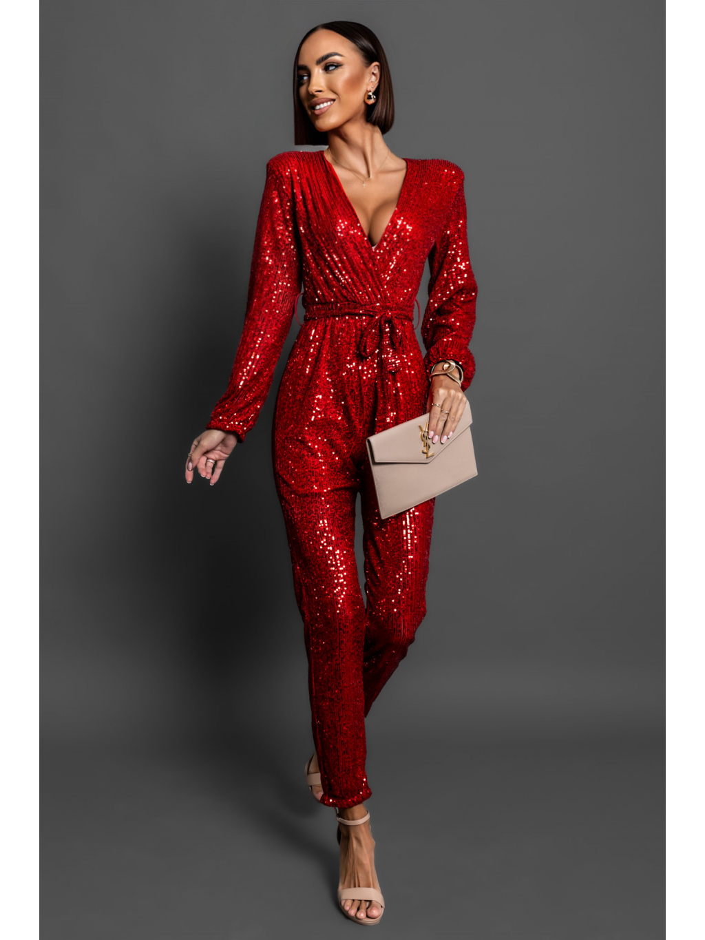 Červený elegantní overal OCEANOS s flitry