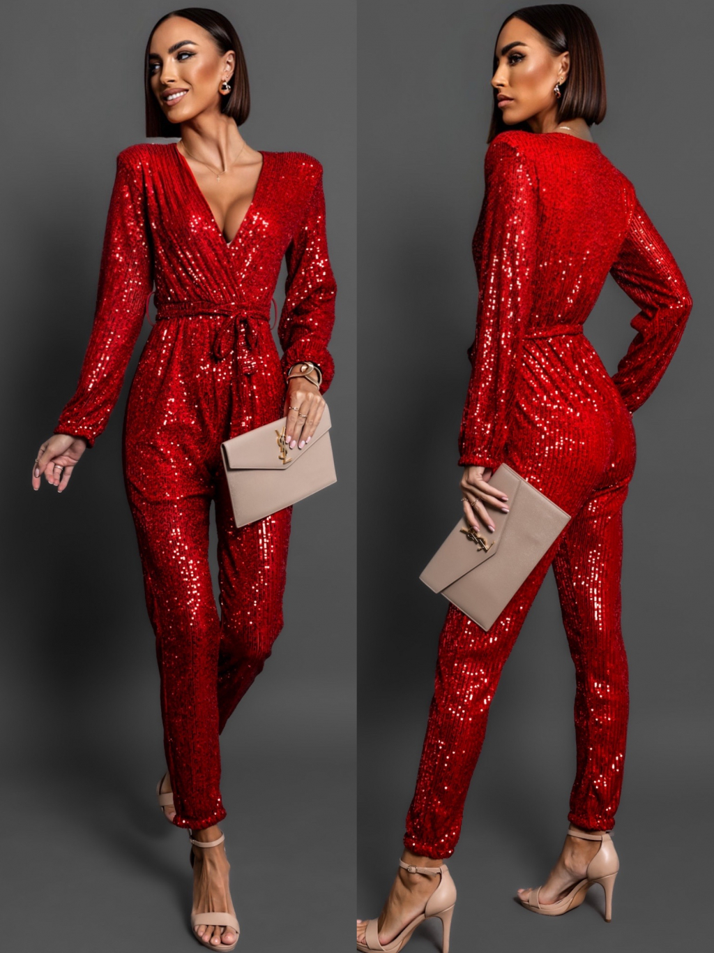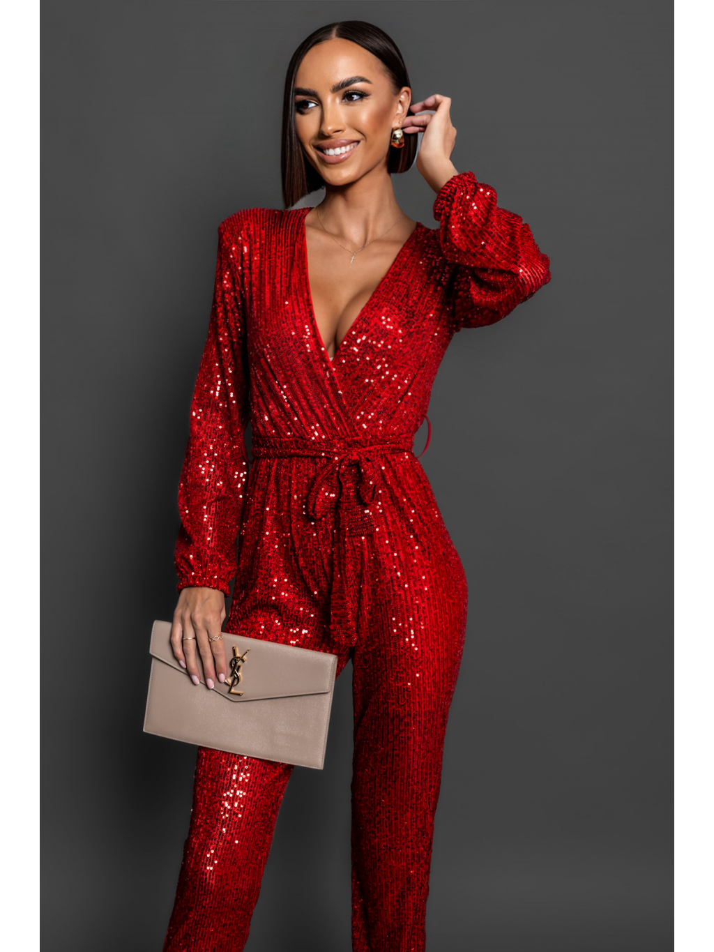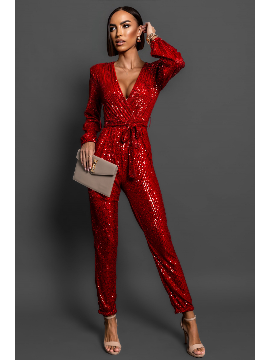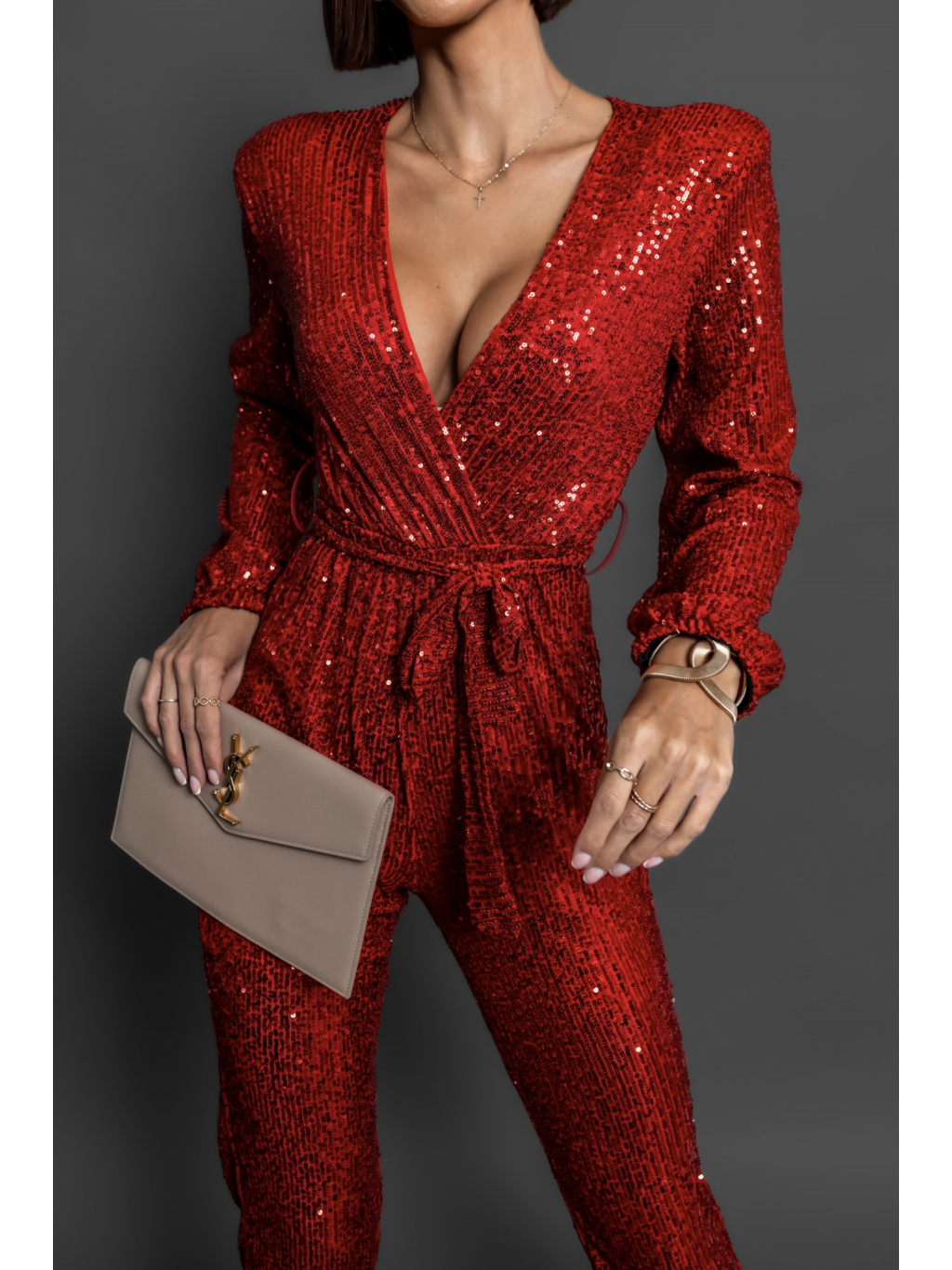 Červený elegantní overal OCEANOS s flitry