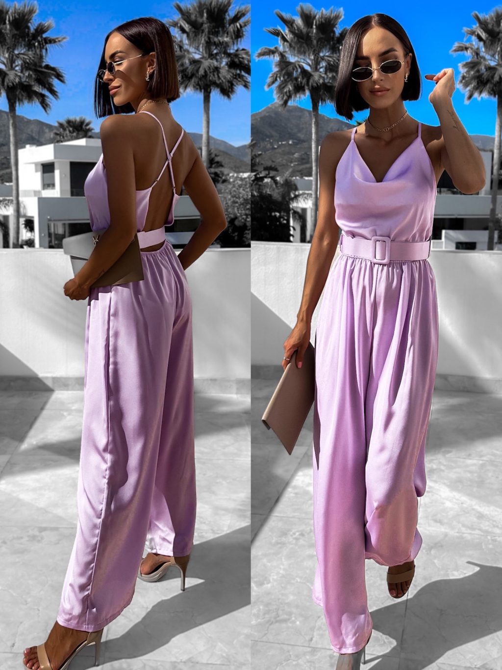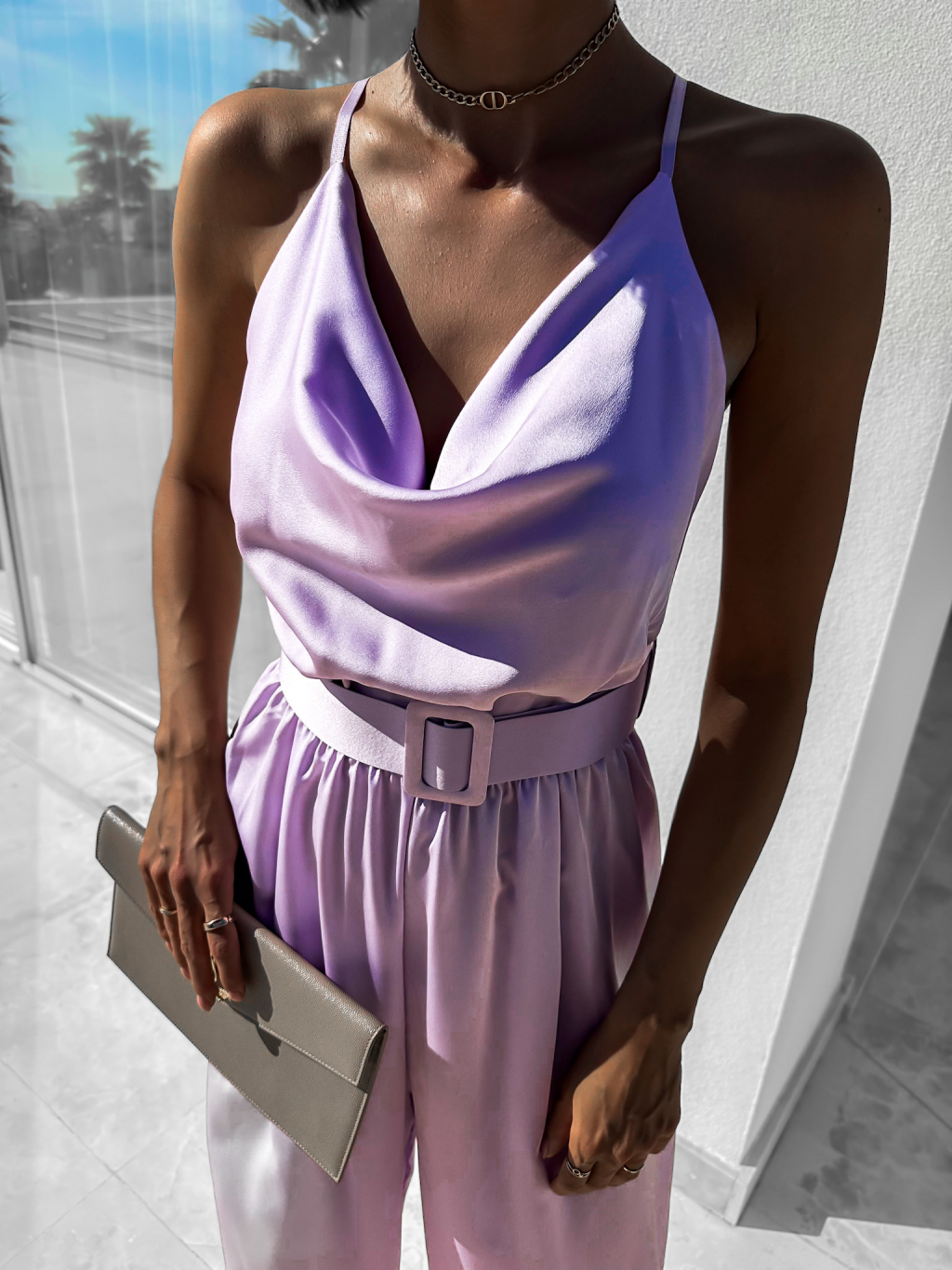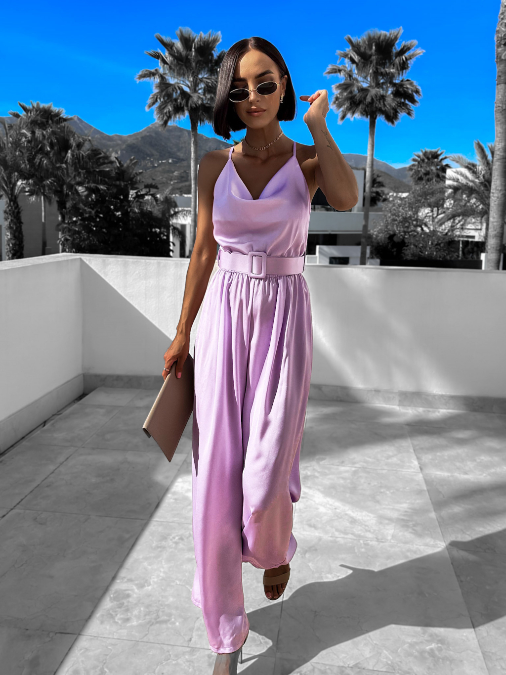 Fialový elegantní overal WILLIAM s páskem