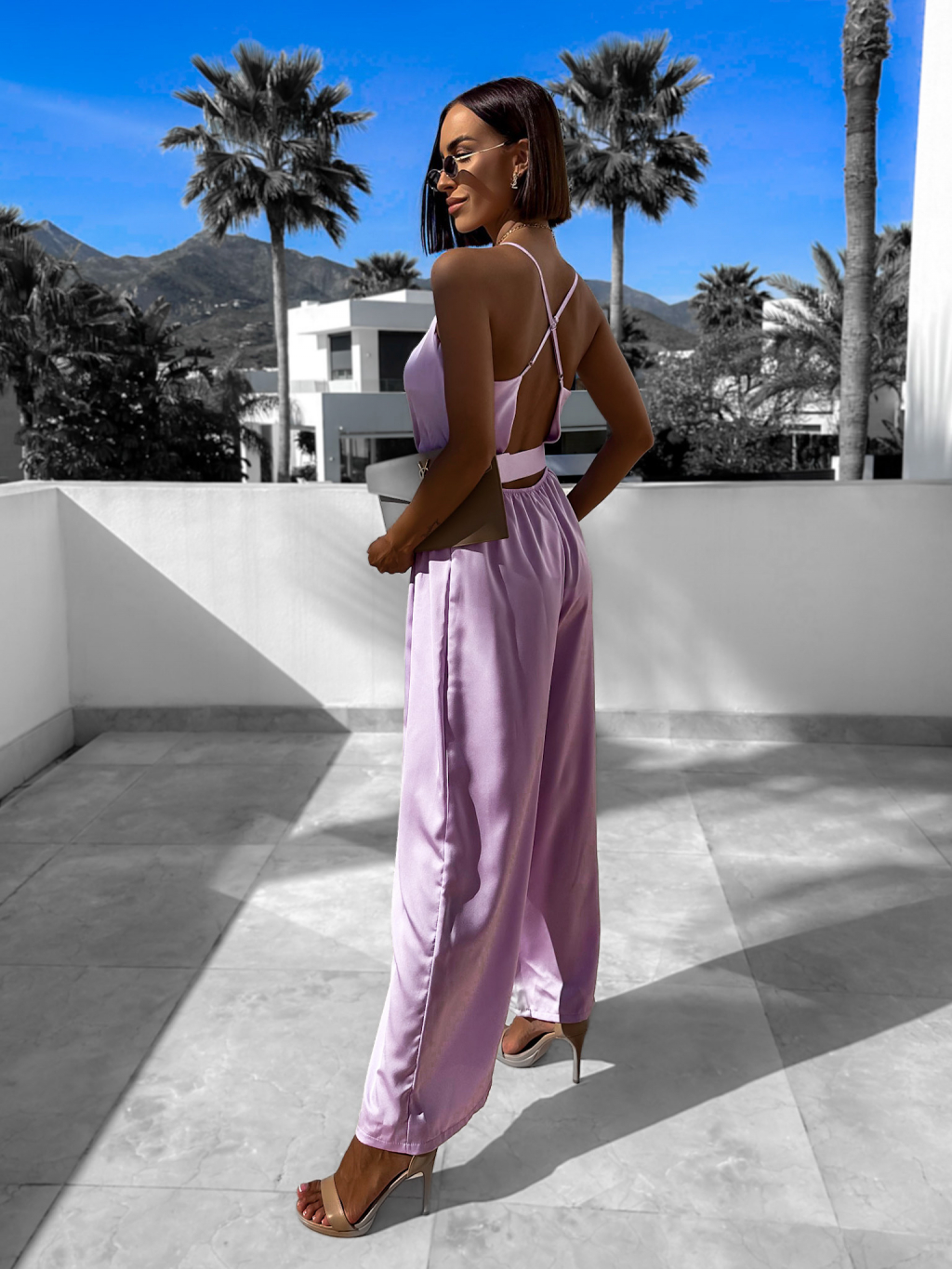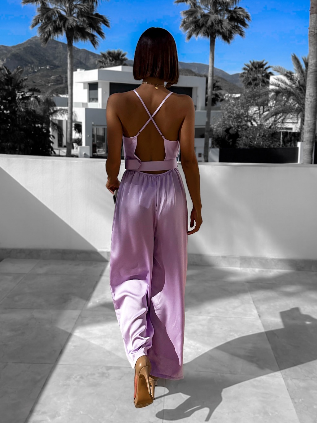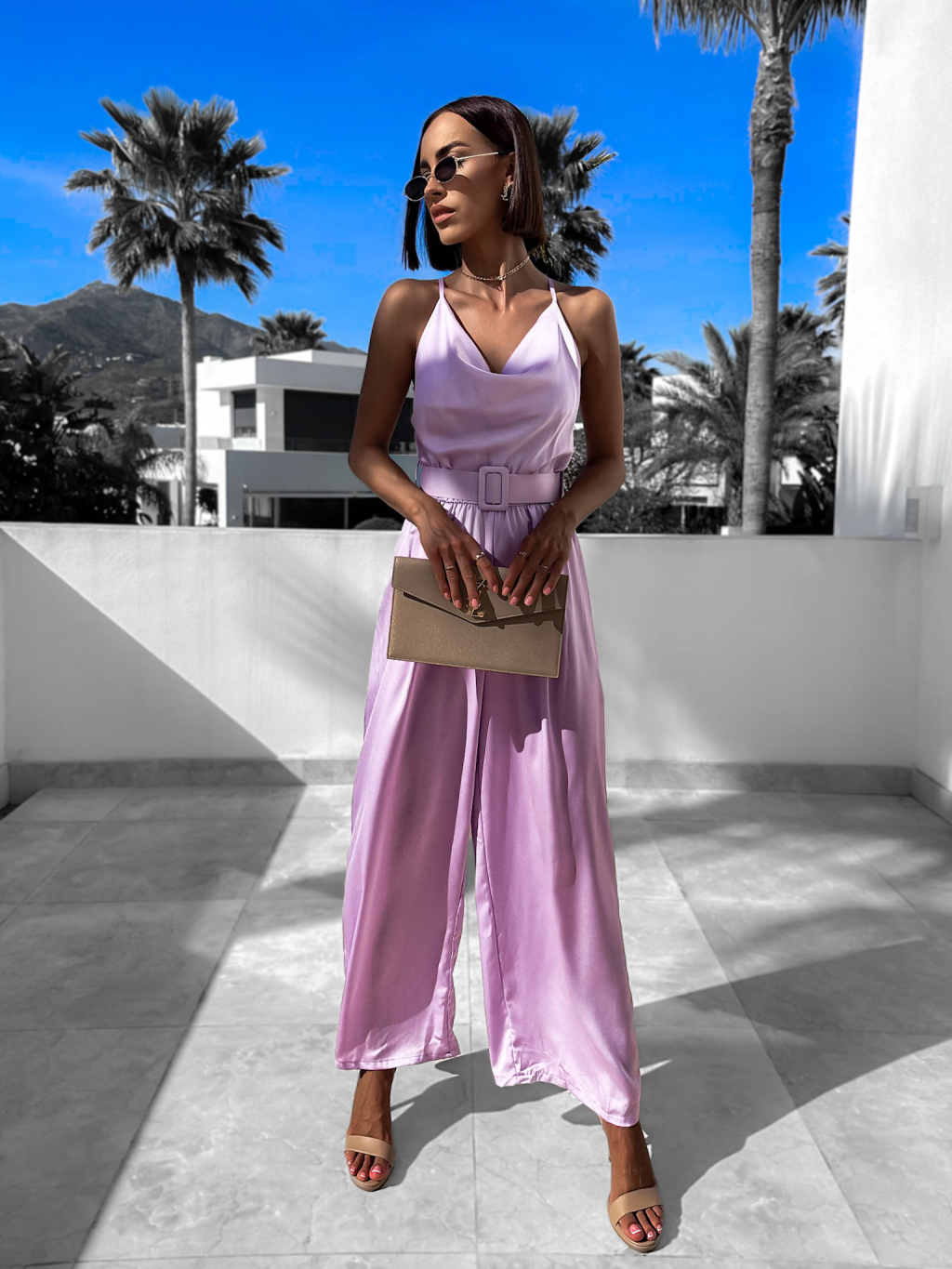 Fialový elegantní overal WILLIAM s páskem