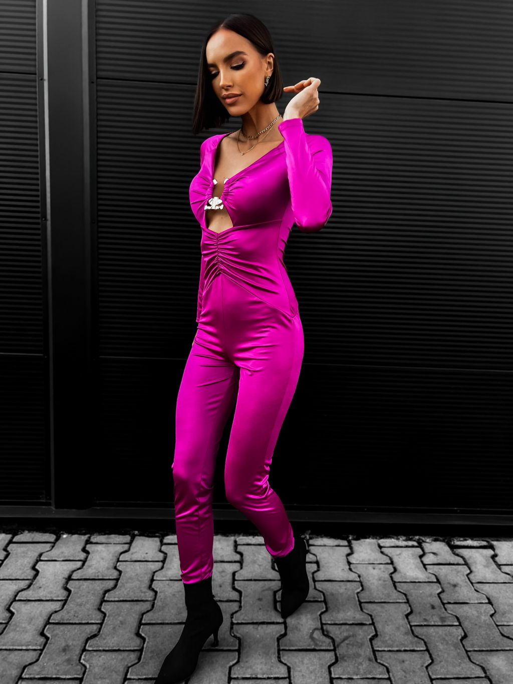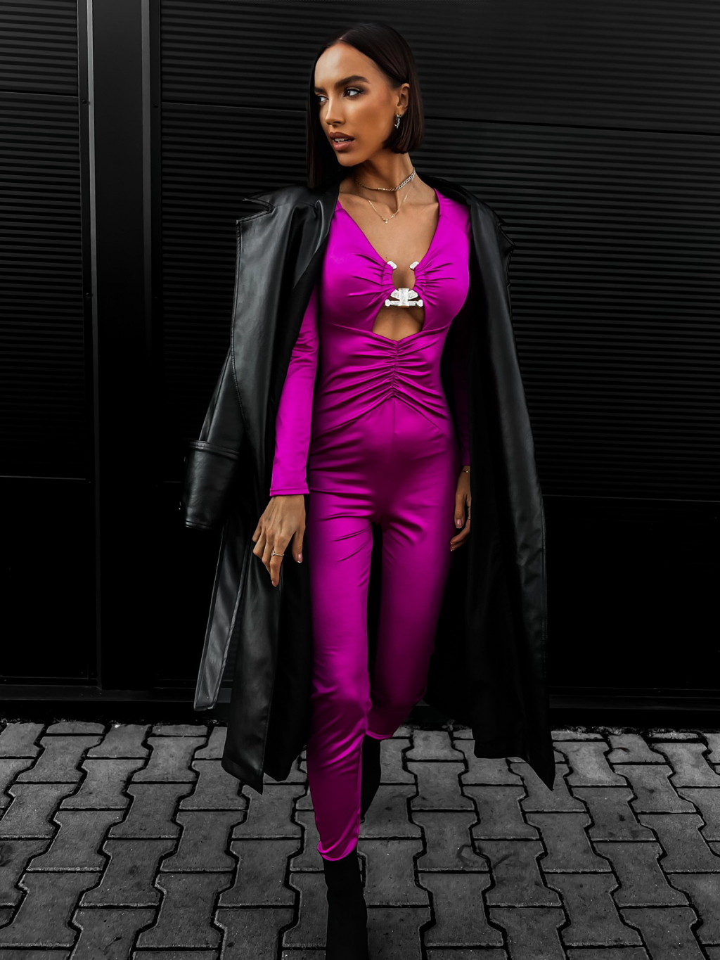 Fialový lesklý elegantní overal SOLEIL se zlatou sponou