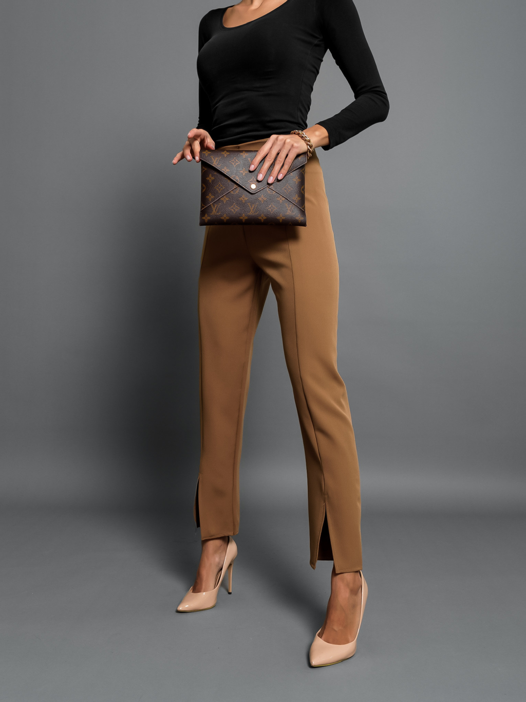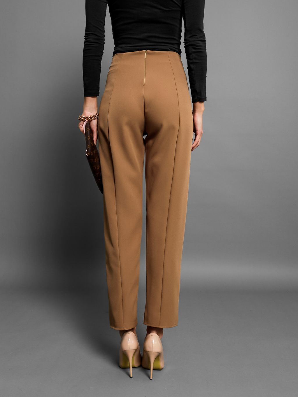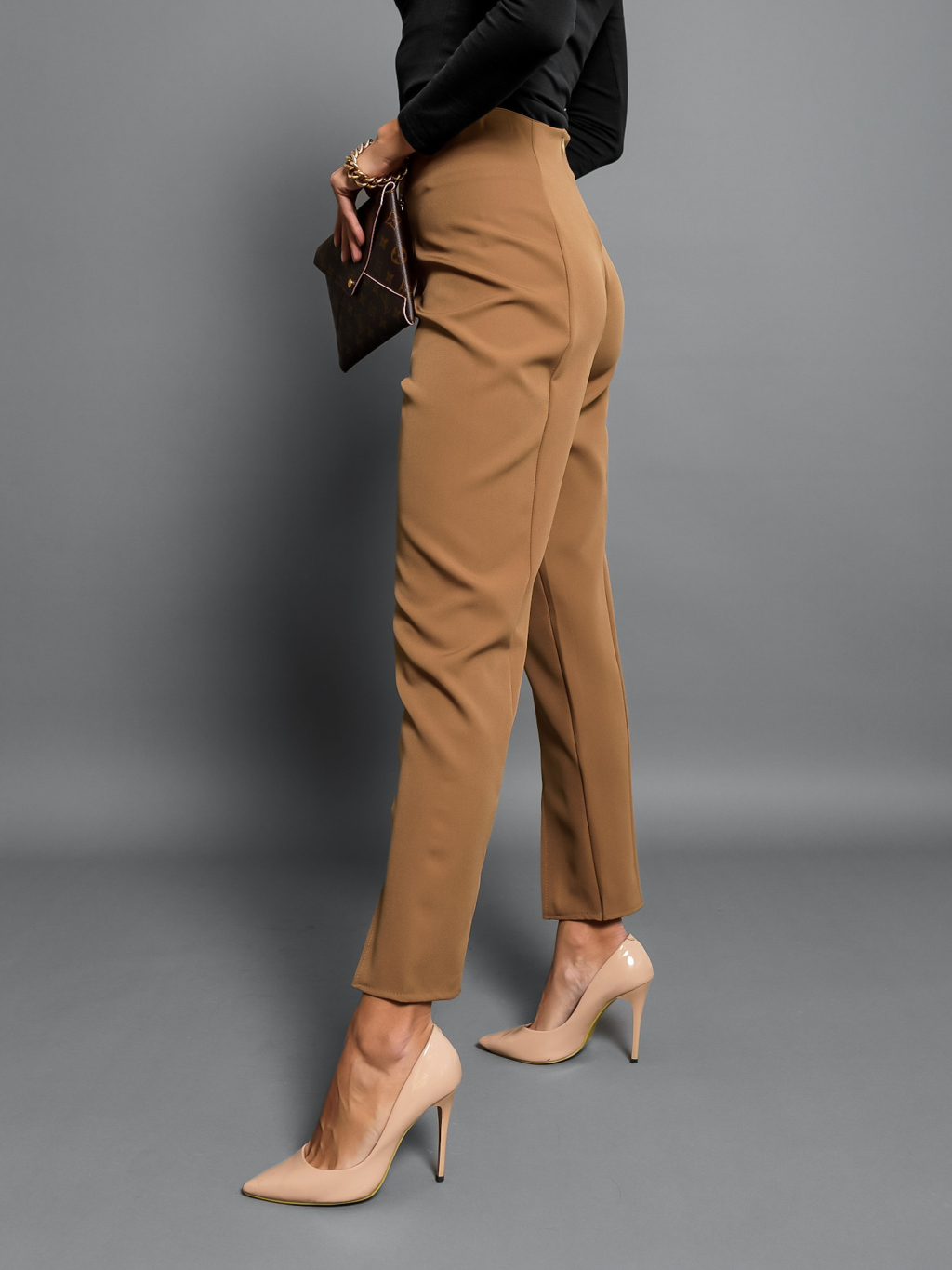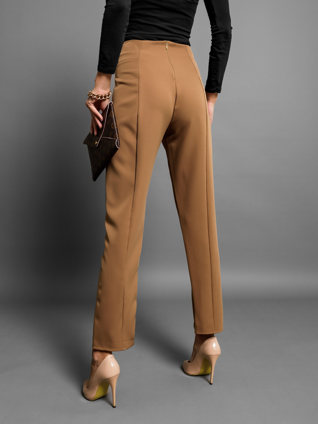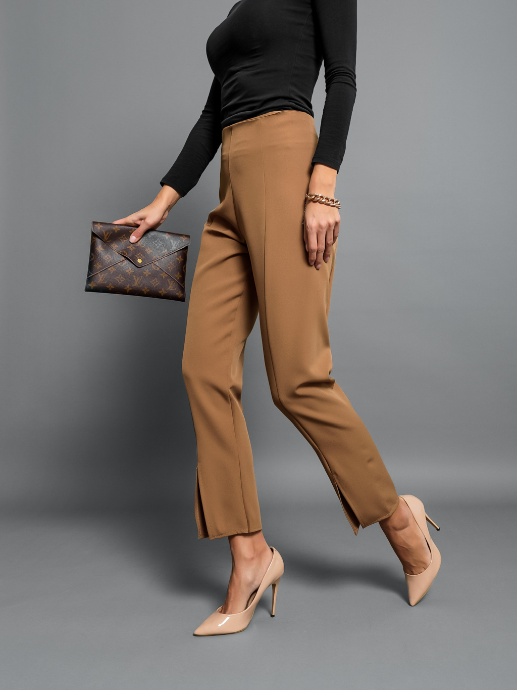 Hnědé elegantní kalhoty TOLEDO s rozparkem