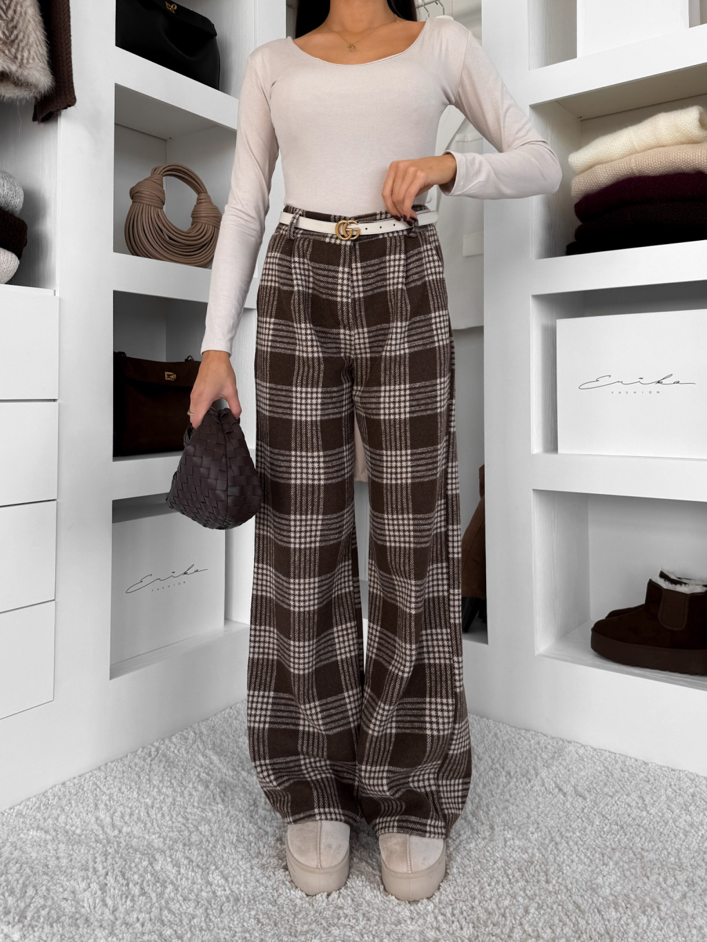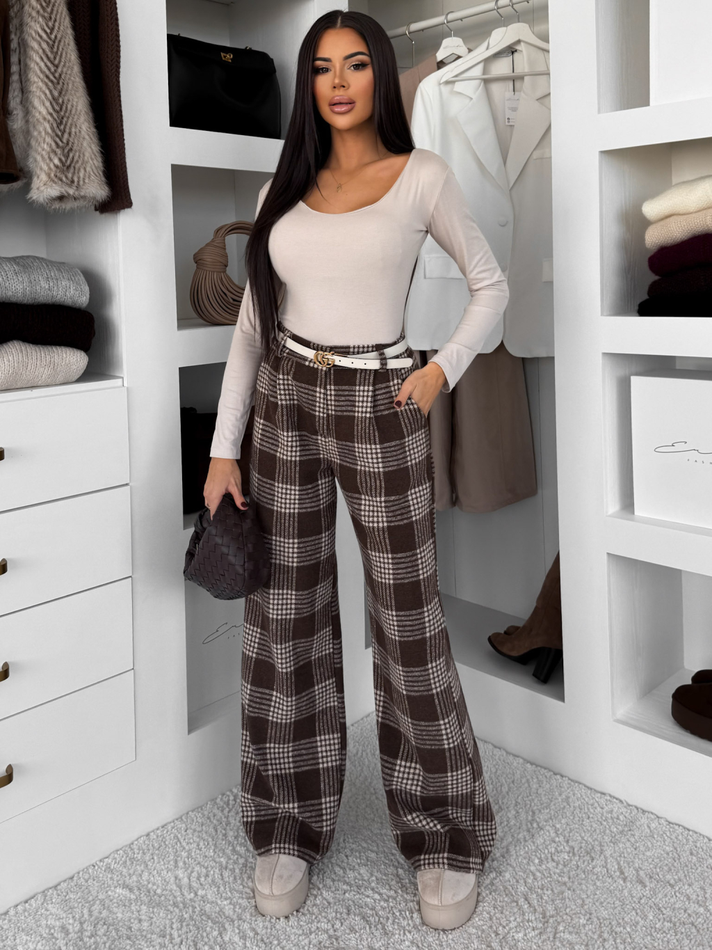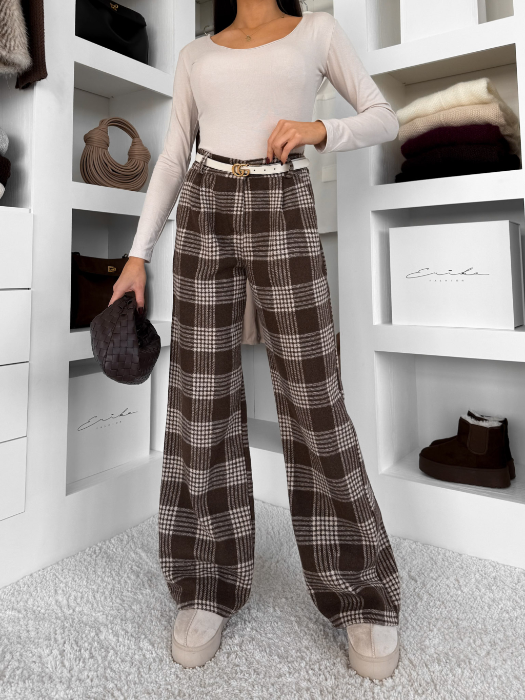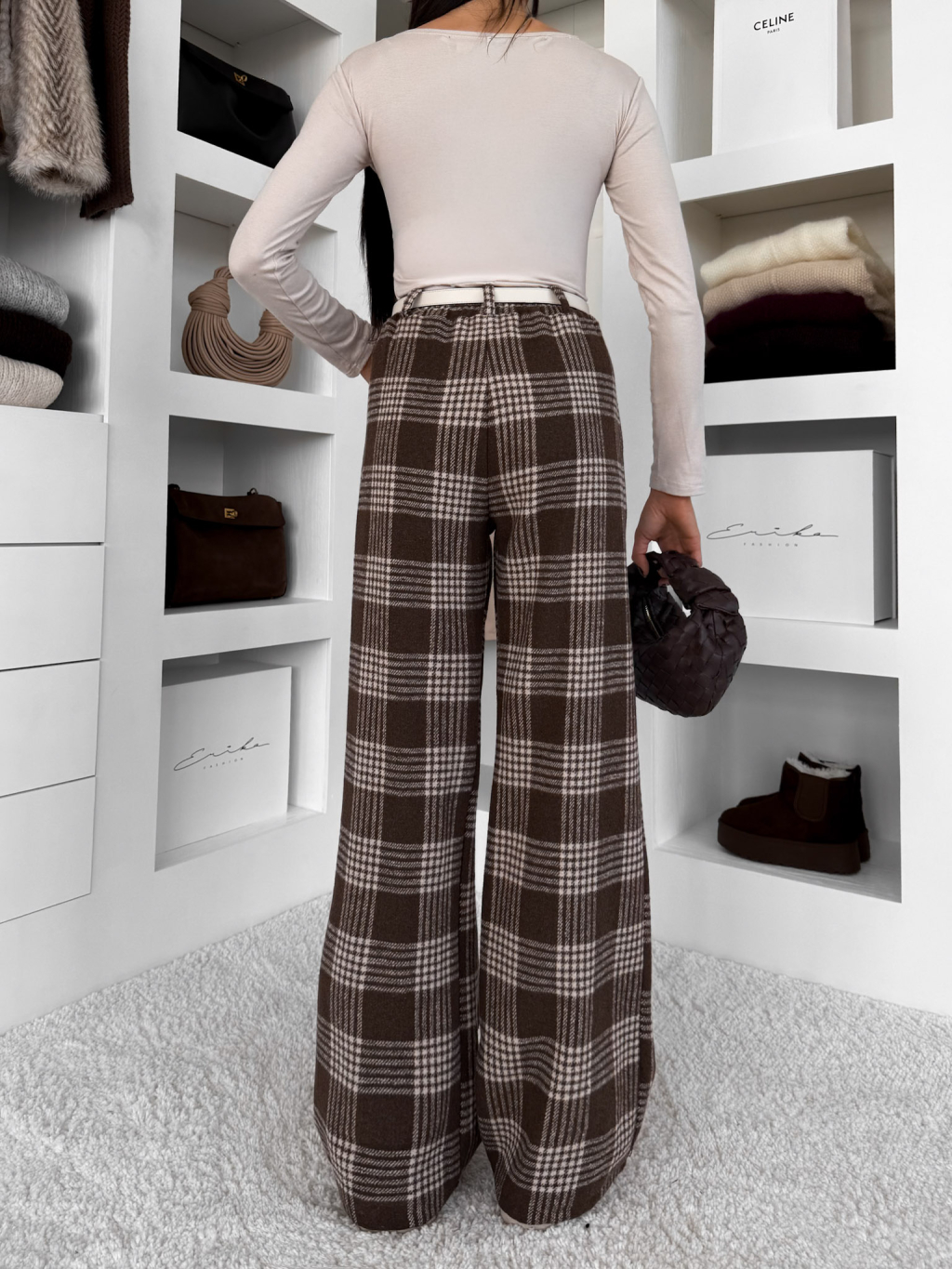 Hnědé kostkované kárované široké kalhoty VIOTRA