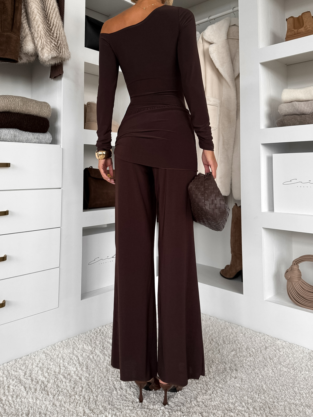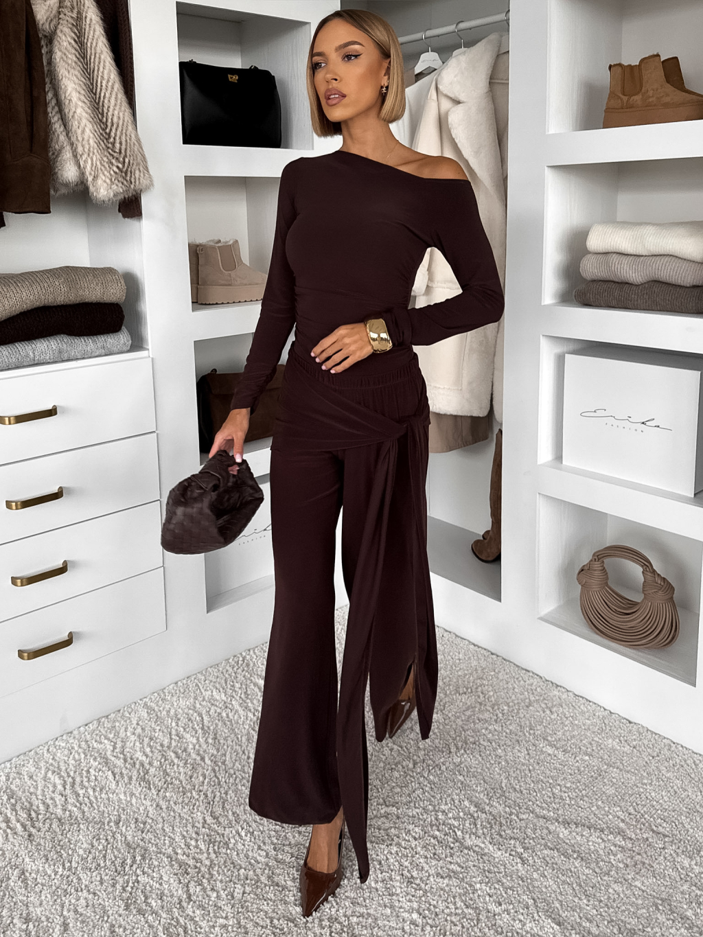 Hnědé společenské elegantní kalhoty IRAVELL s vlečkou