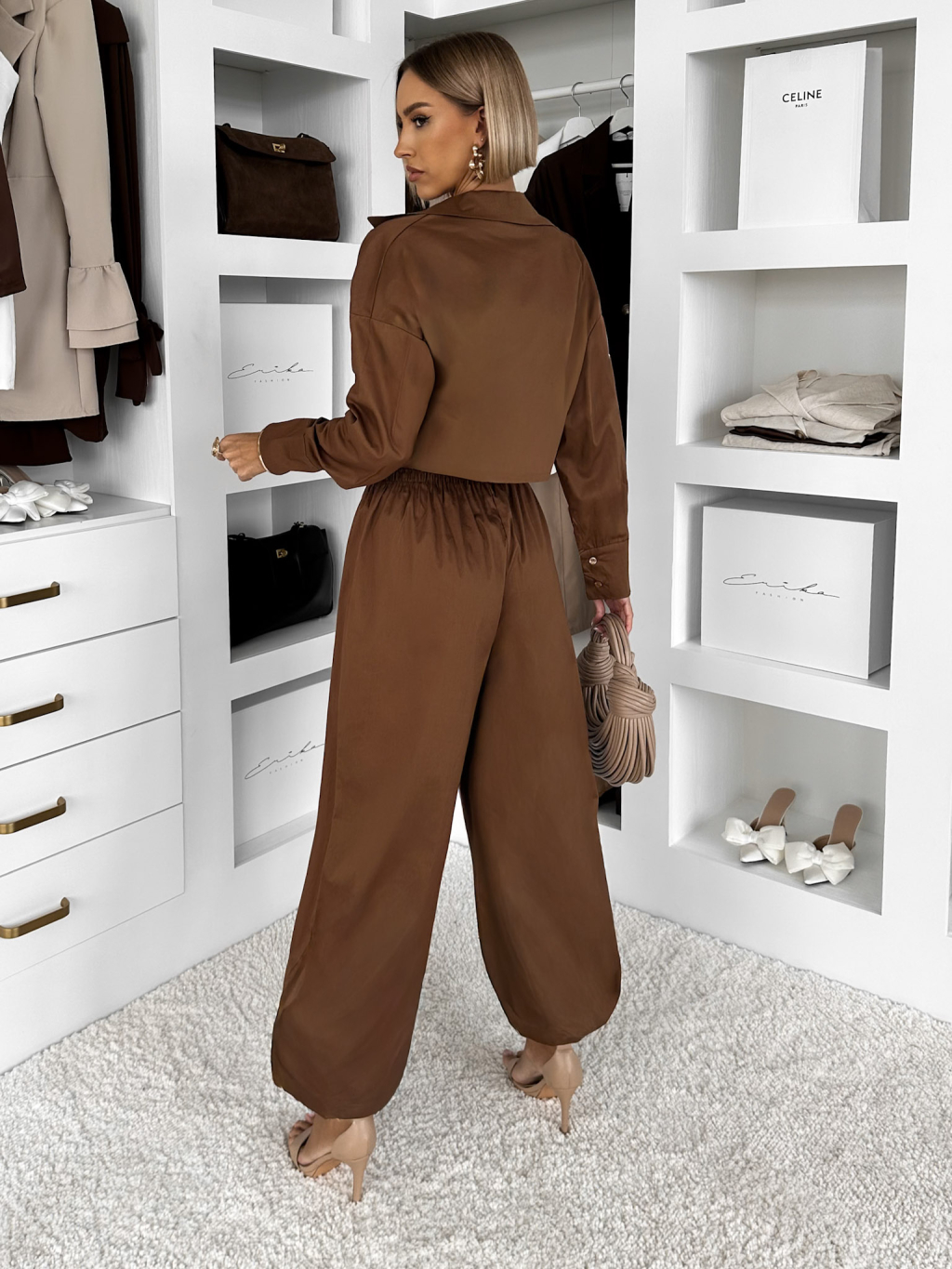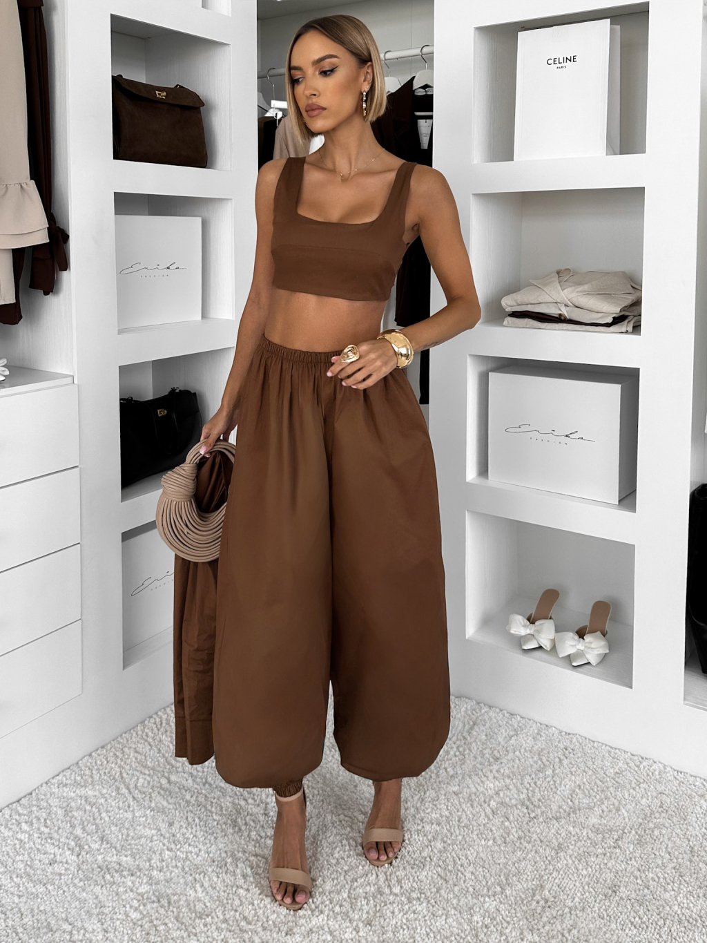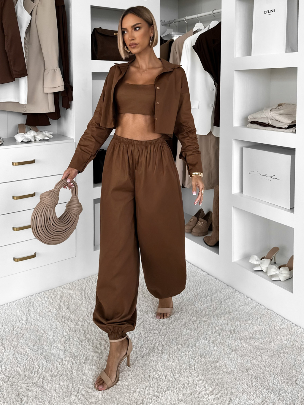 Hnědý bavlněný kalhotový komplet MOCHACA