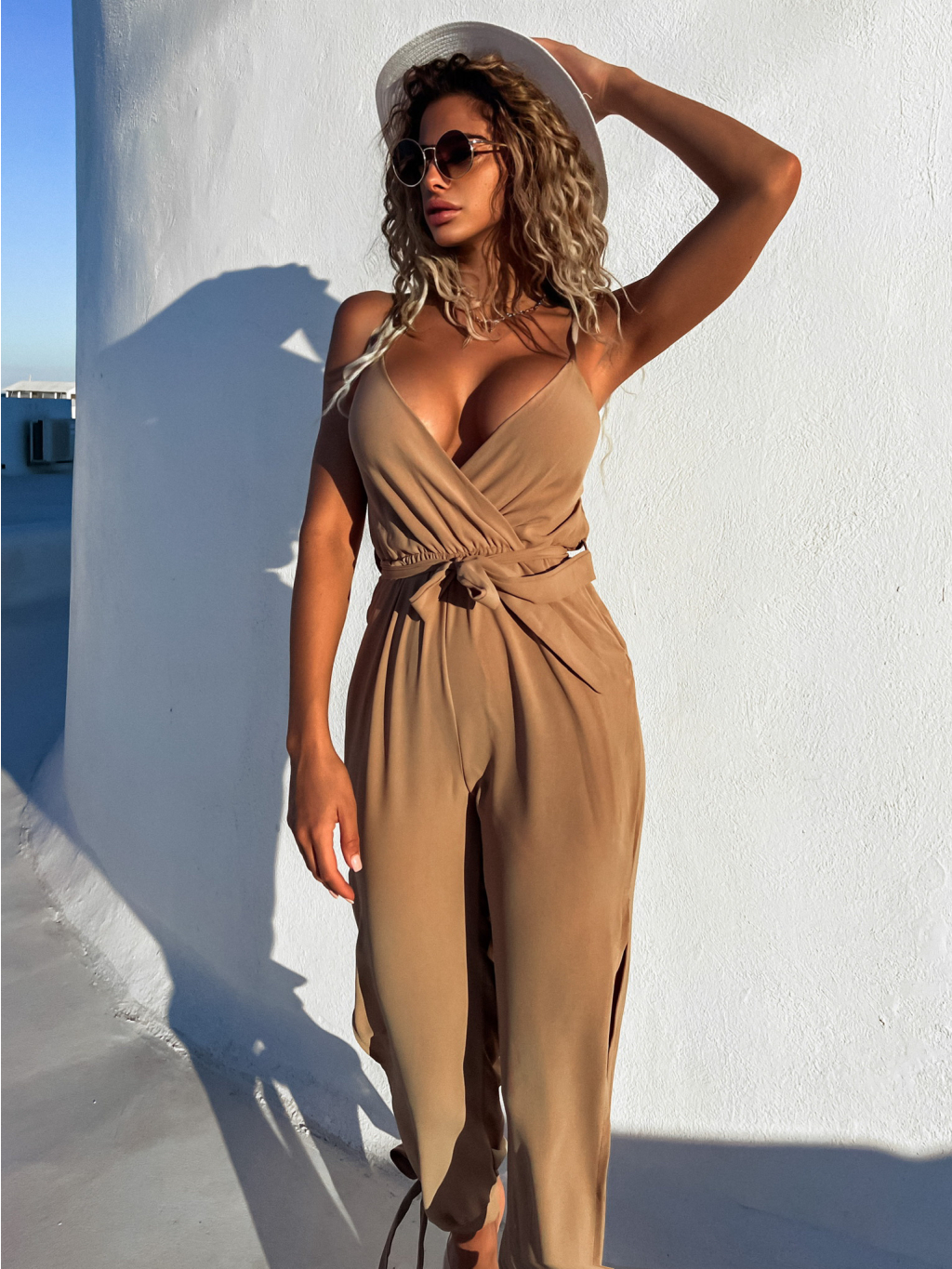 Hnědý dlouhý overal ROBBIE s rozparkem