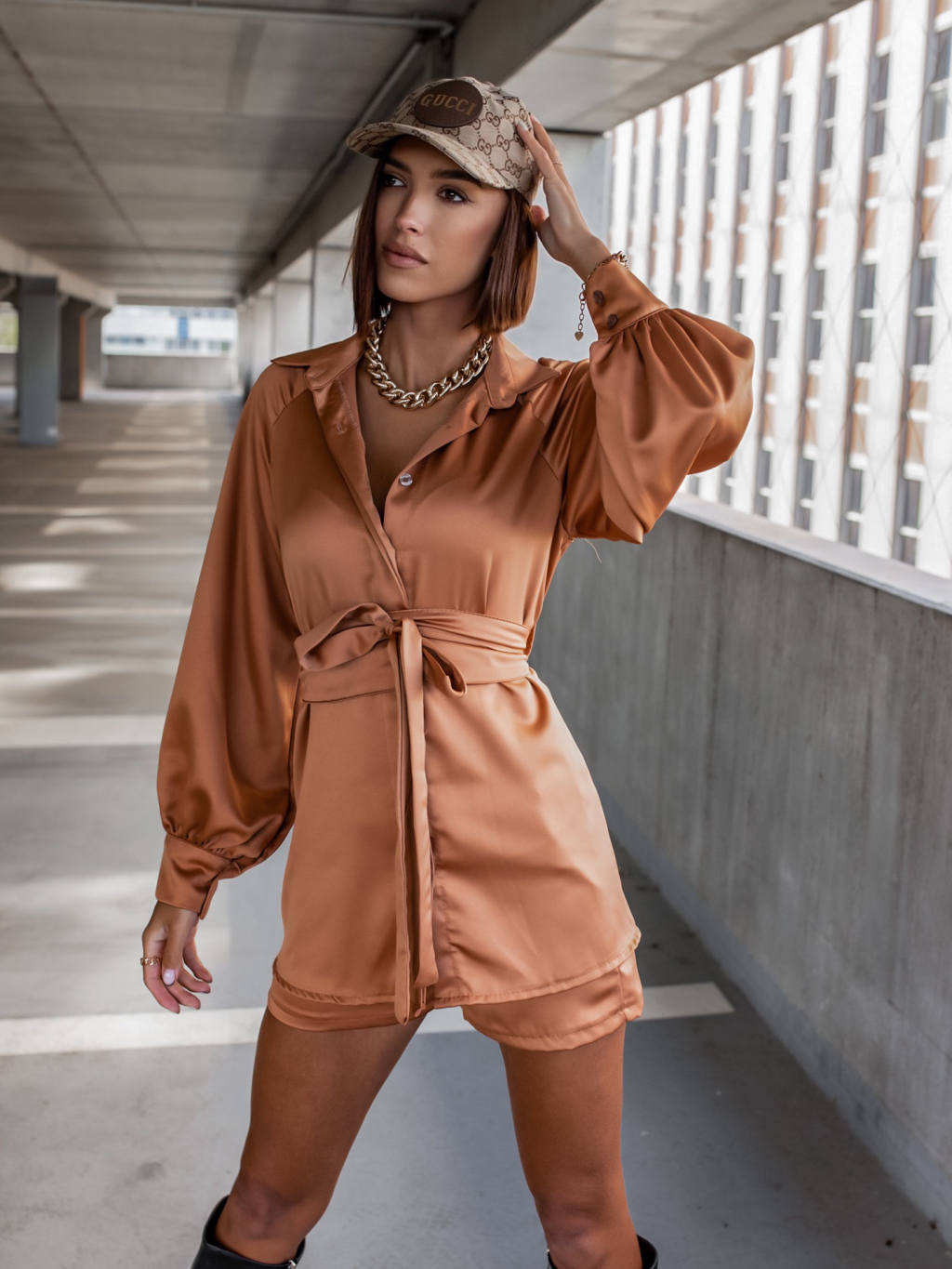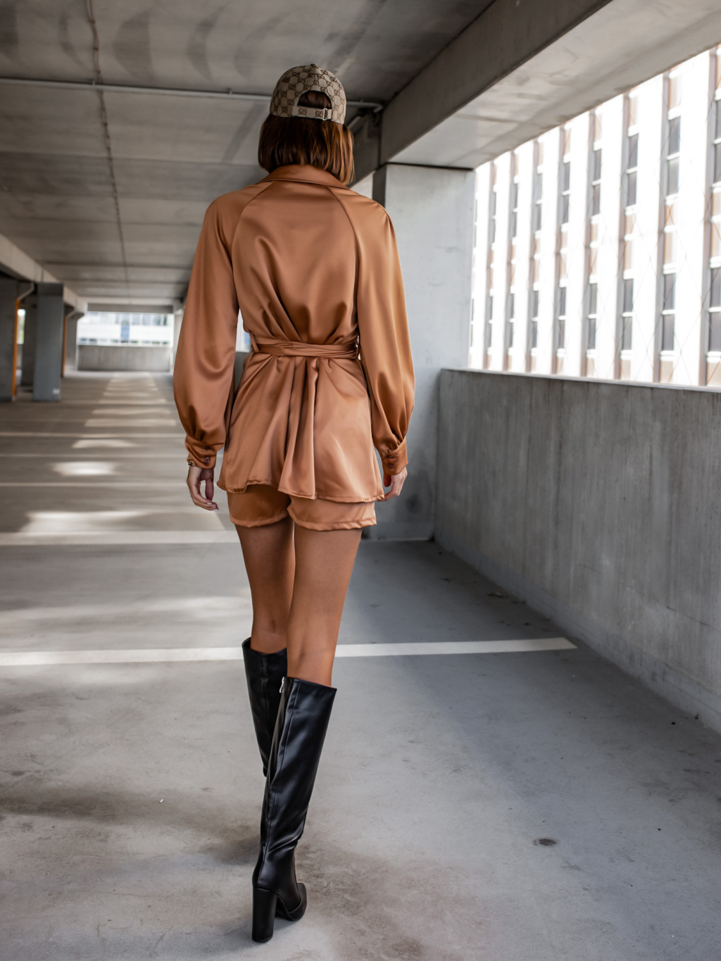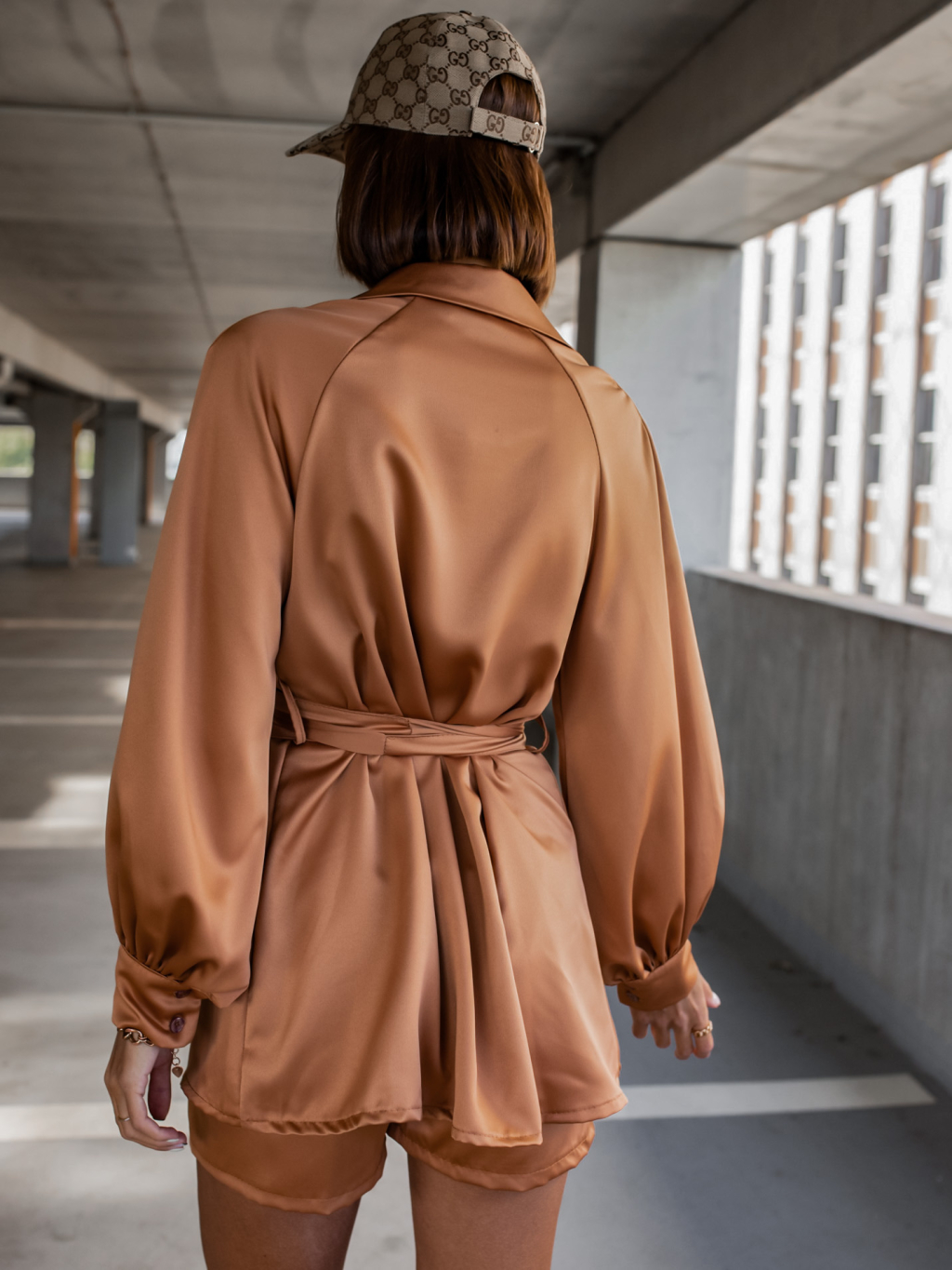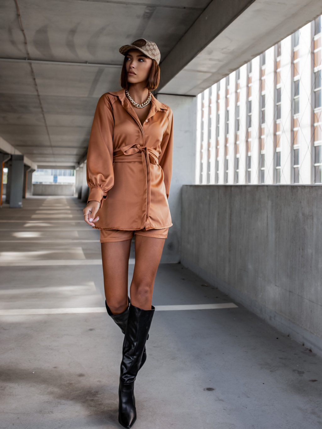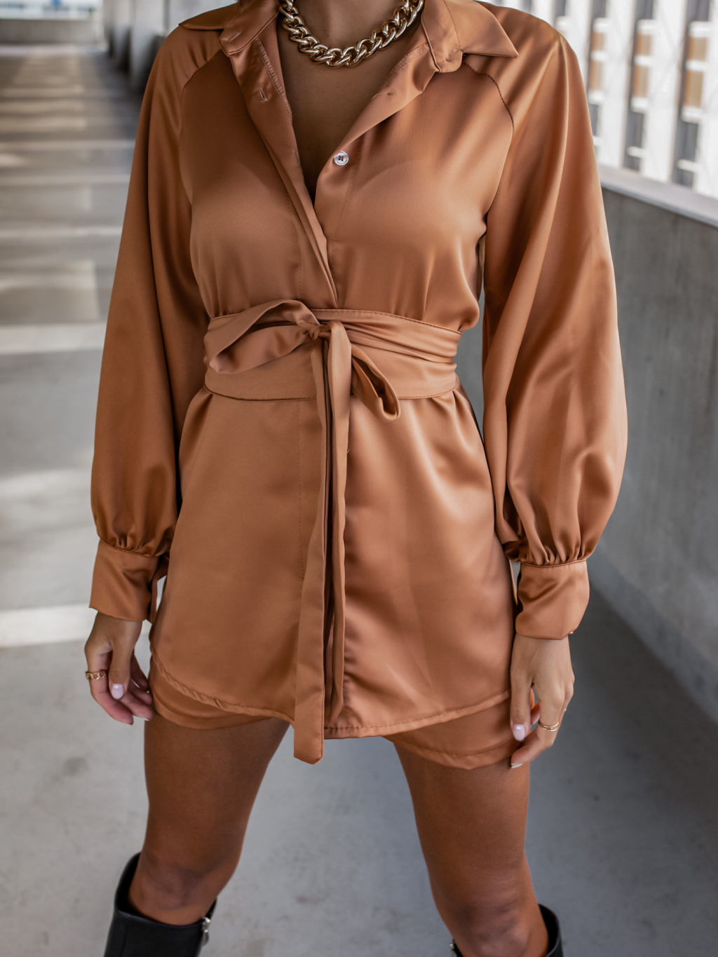 Hnědý komplet OFFER se zavazováním v pase