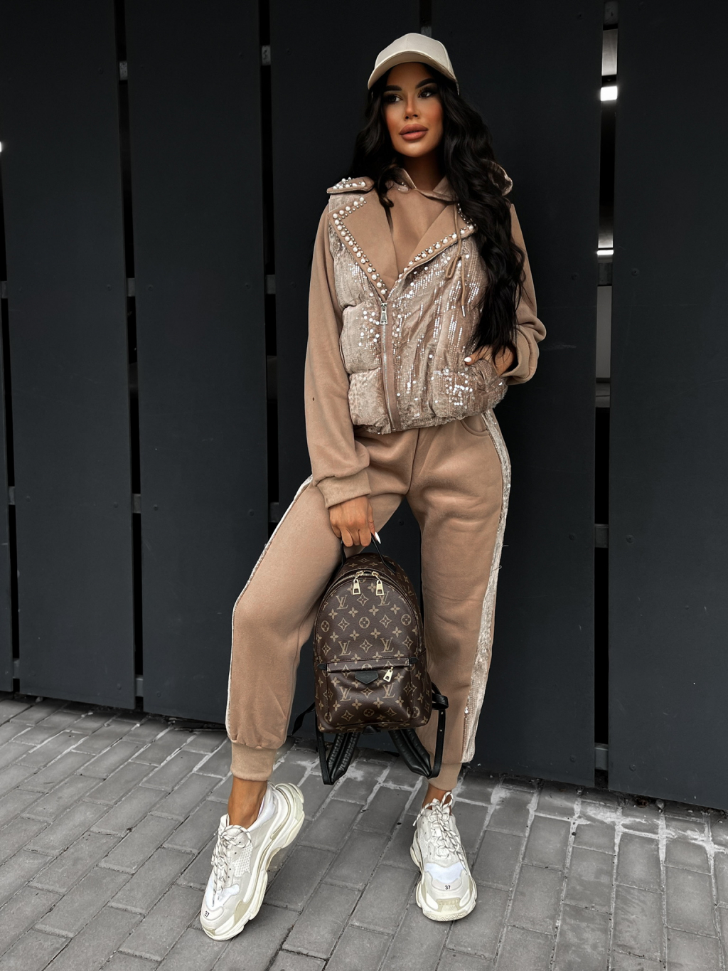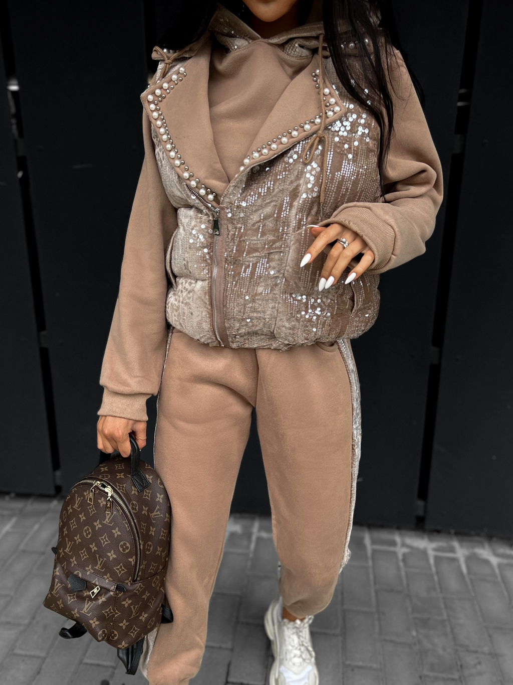 Hnědý třídílný komplet KLARYS