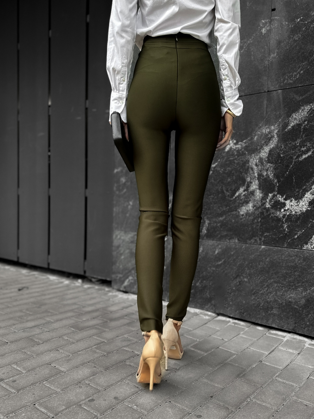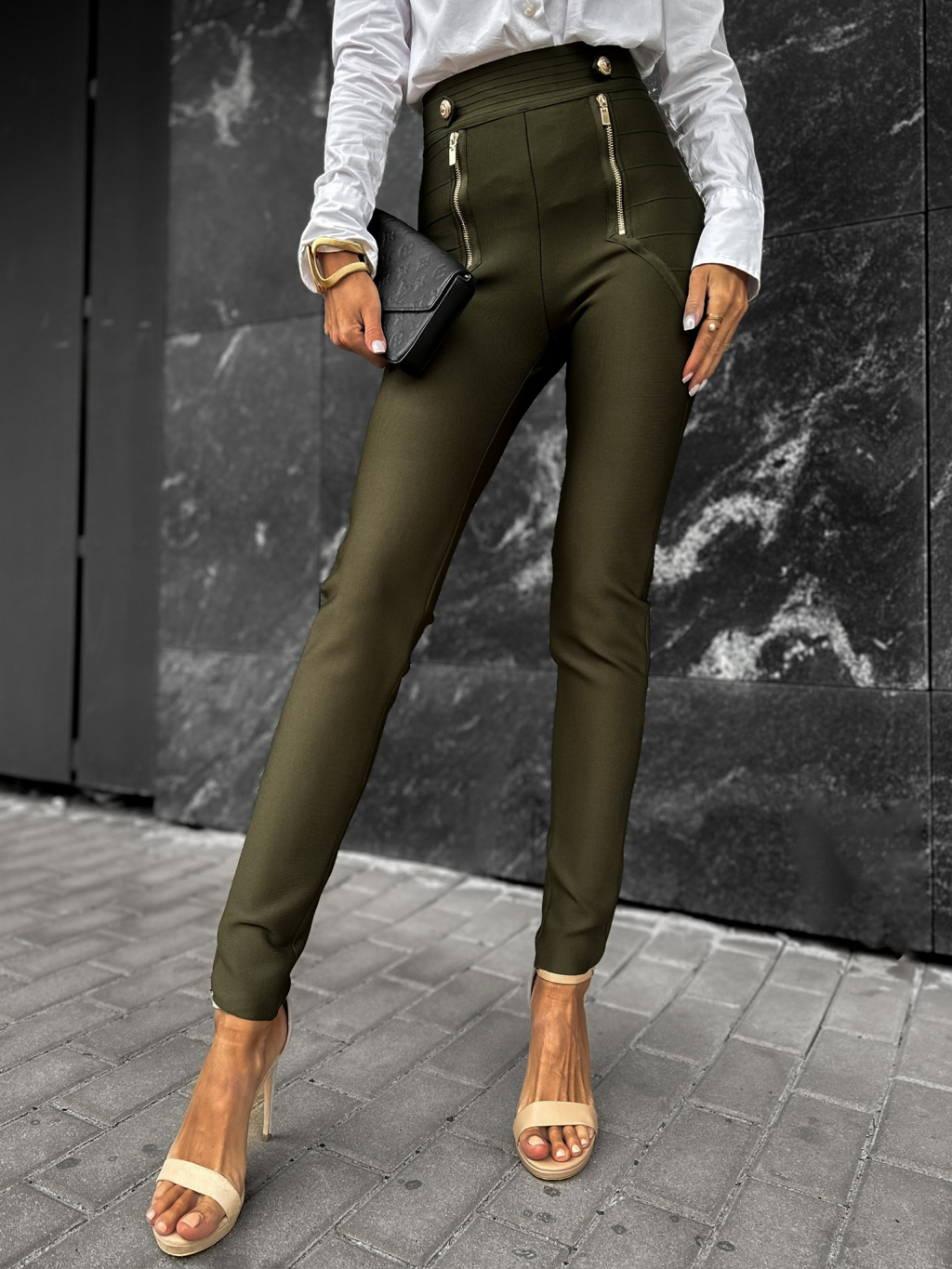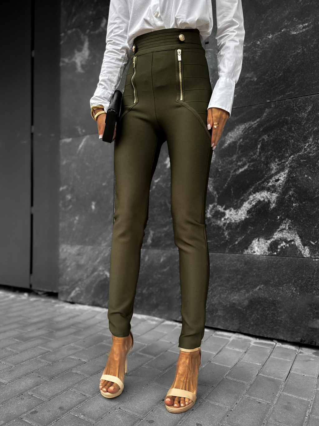 Khaki elegantní kalhoty KIWENIS se zipy
