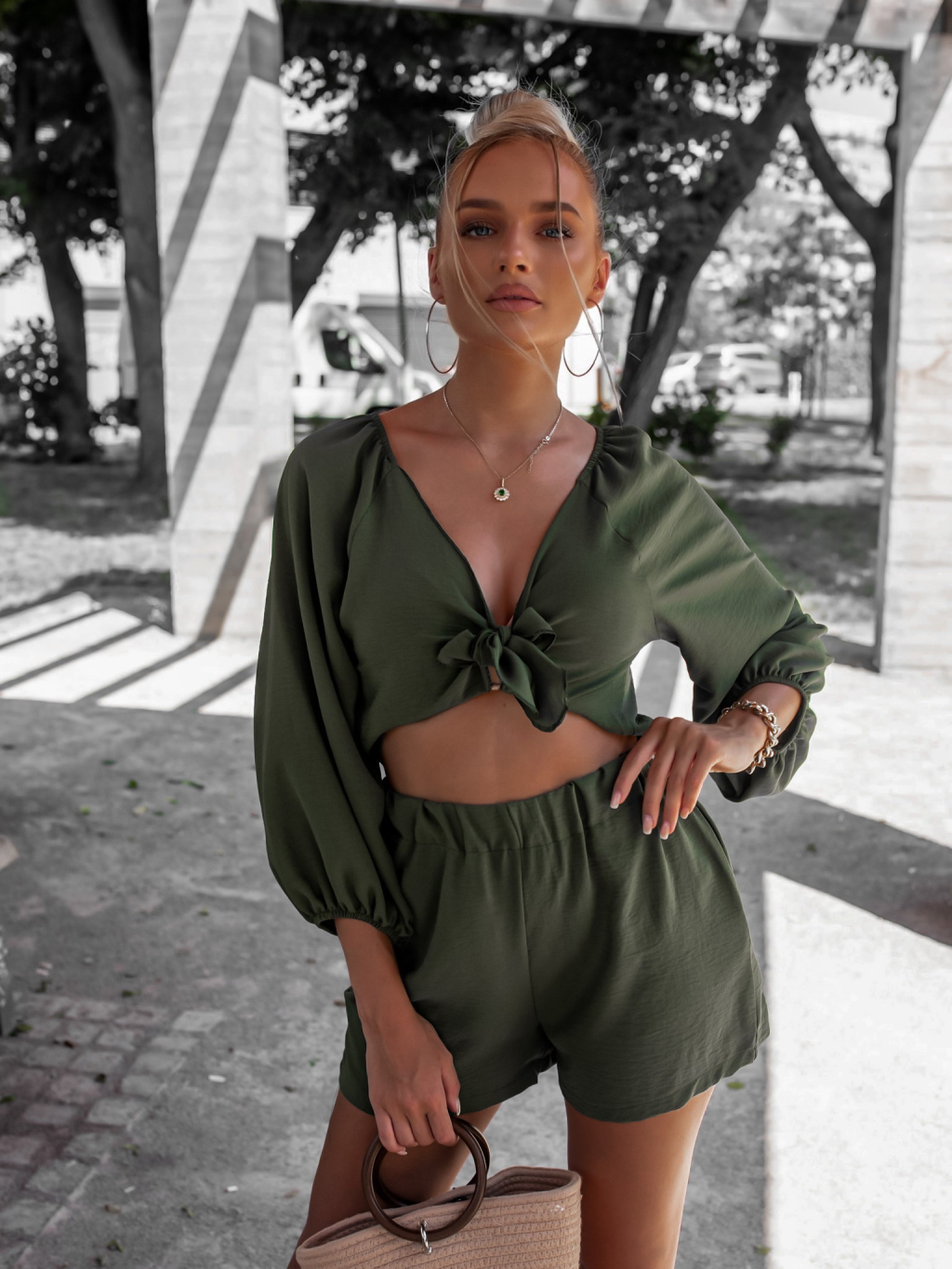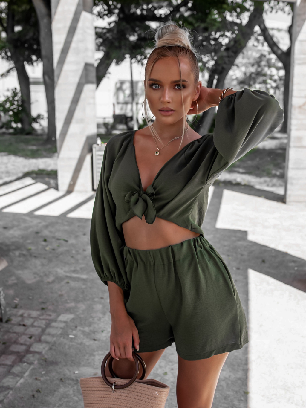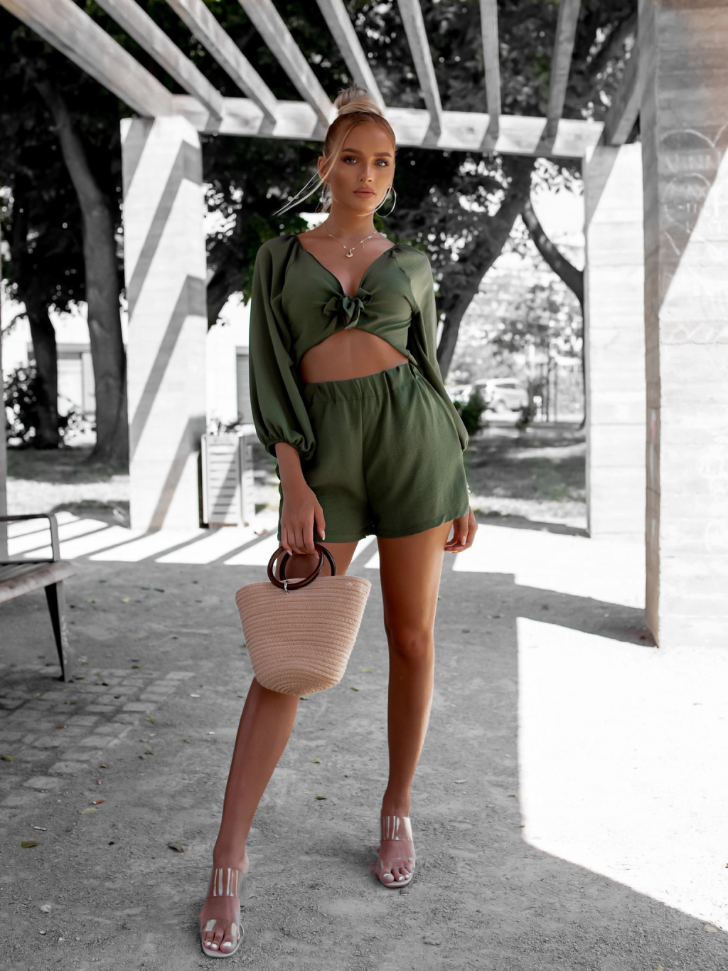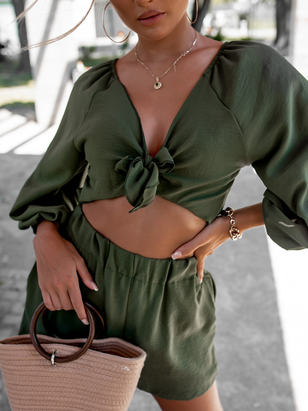 Khaki krátký dvoudílný komplet AWAY s vázáním