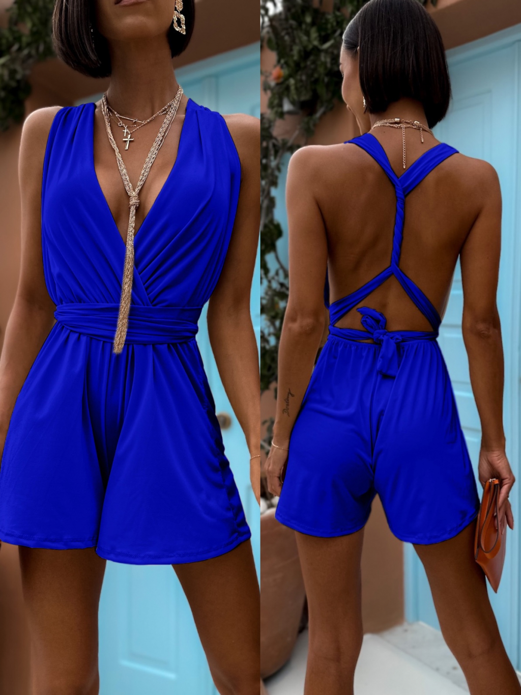 Královsky modrý elegantní overal ALSTRON na zavazování