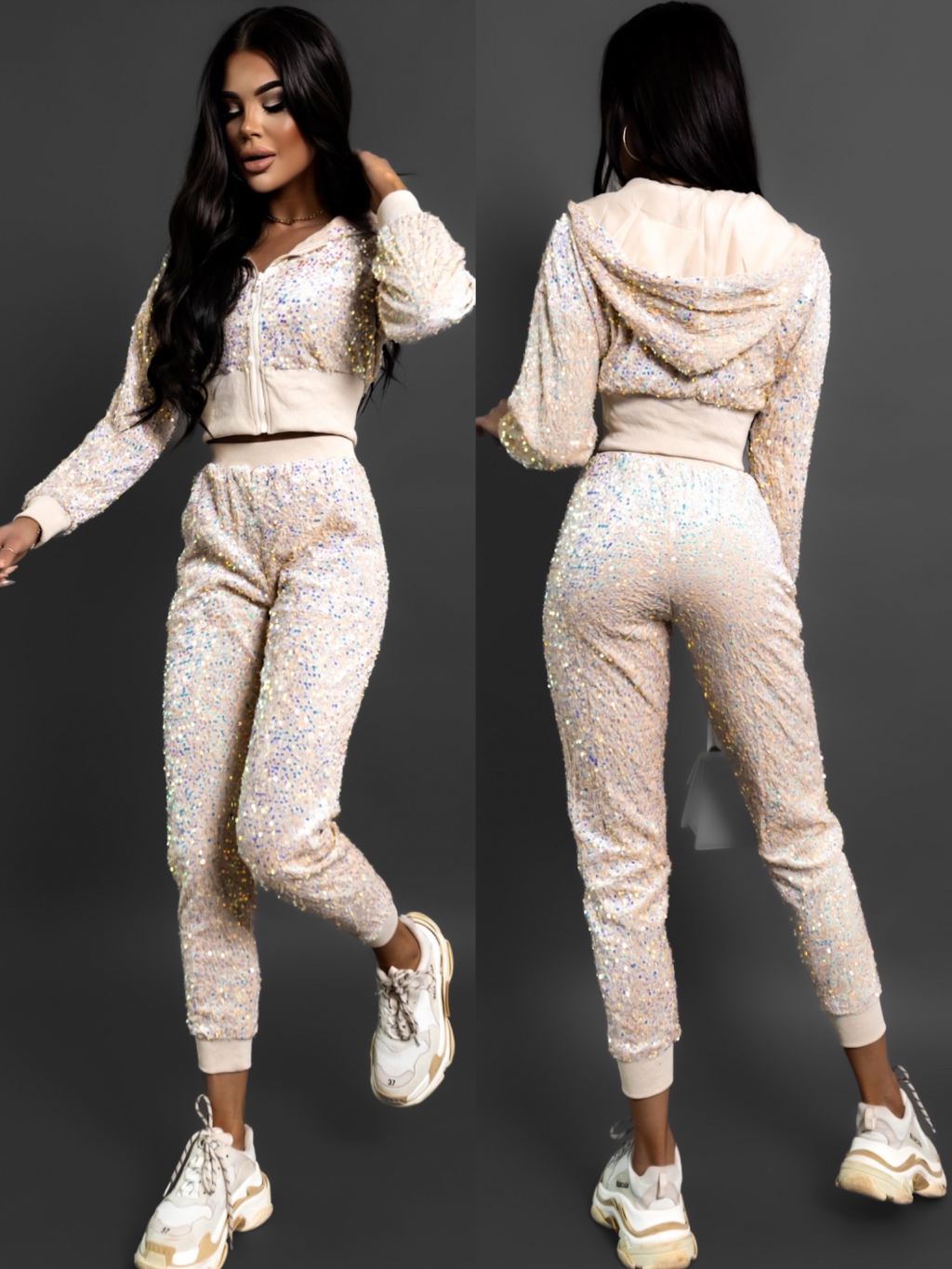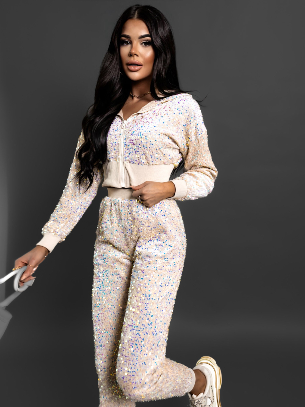 Krémová flitrová tepláková souprava ORFEUS