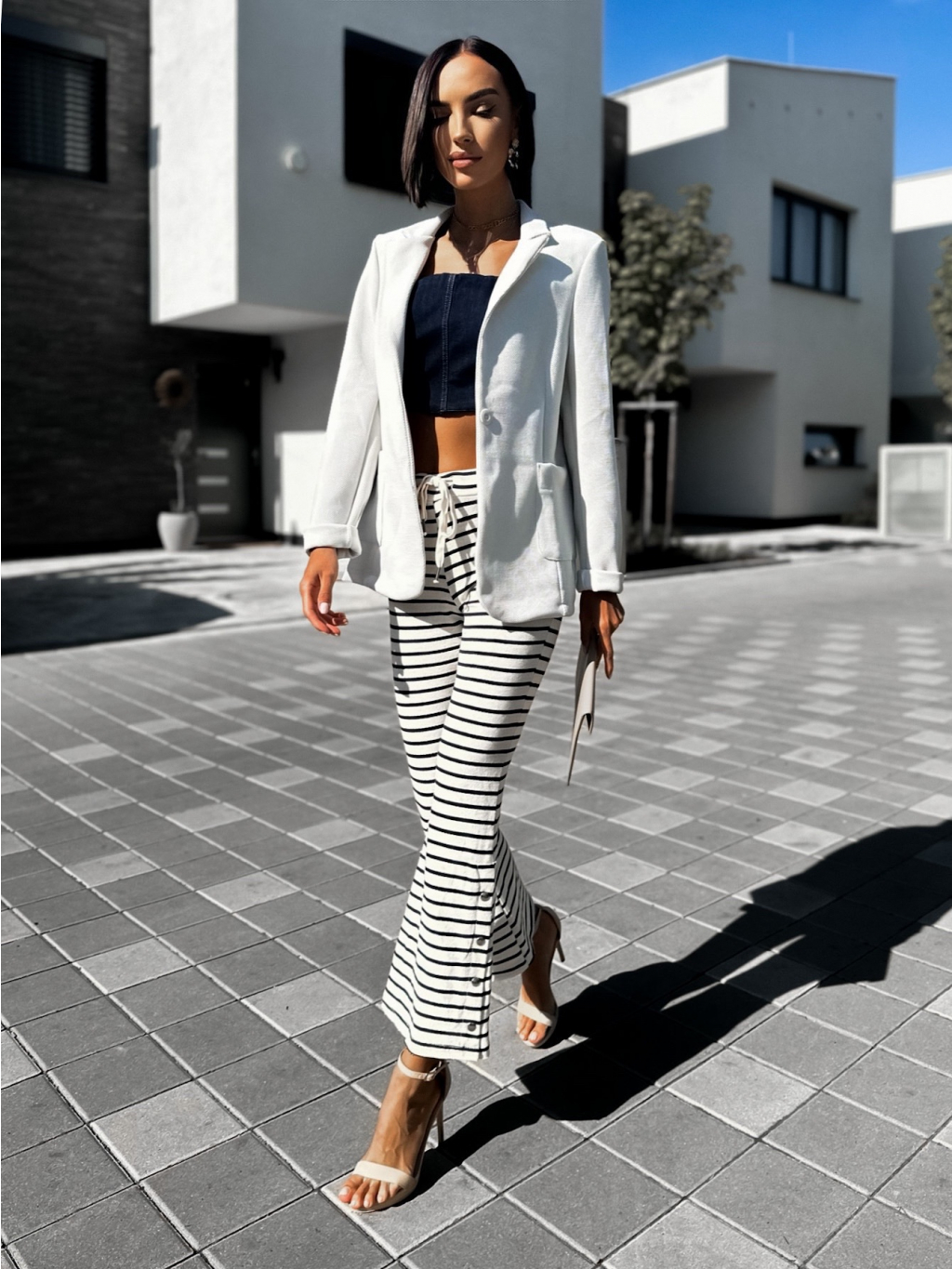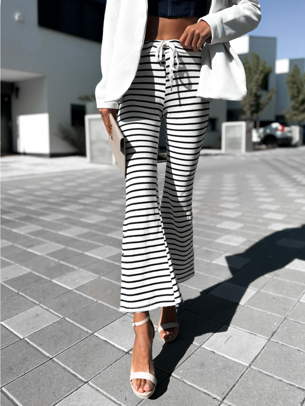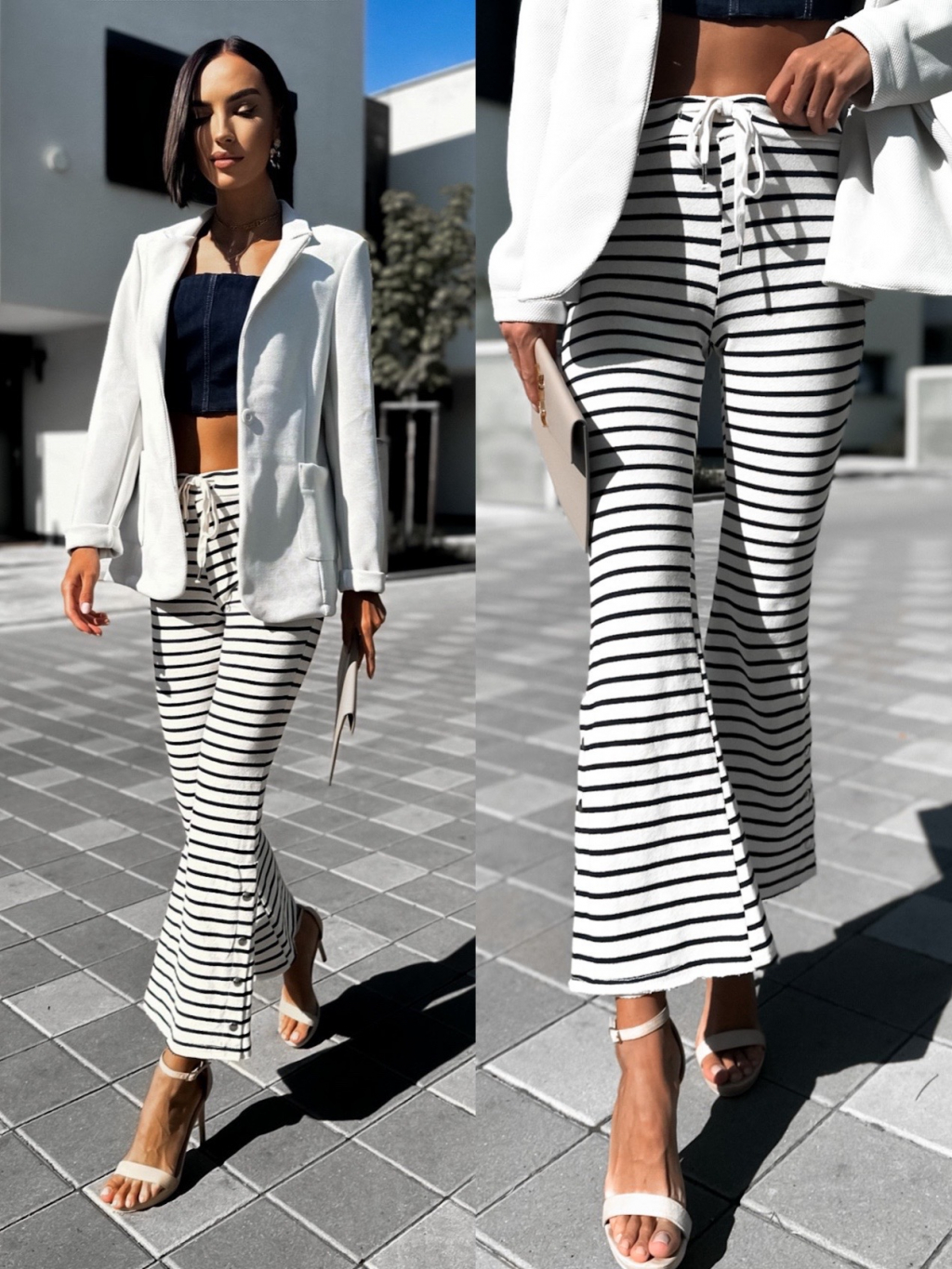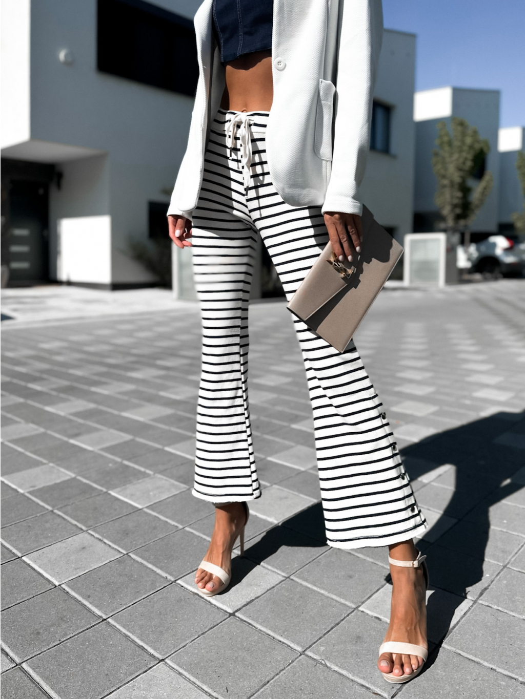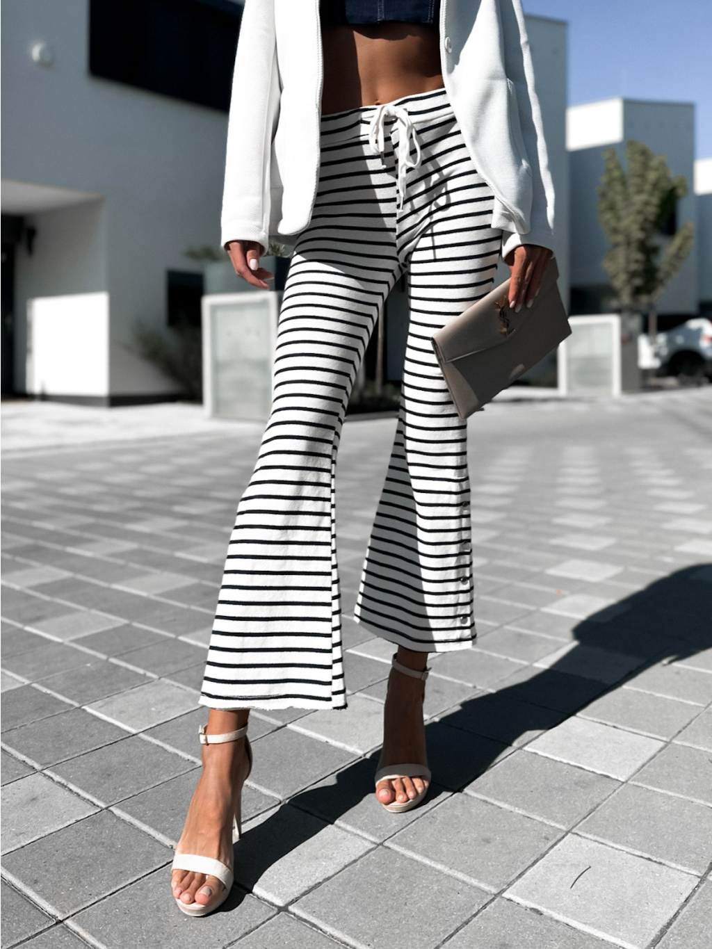Krémové elegantní kalhoty ELEME s pruhy