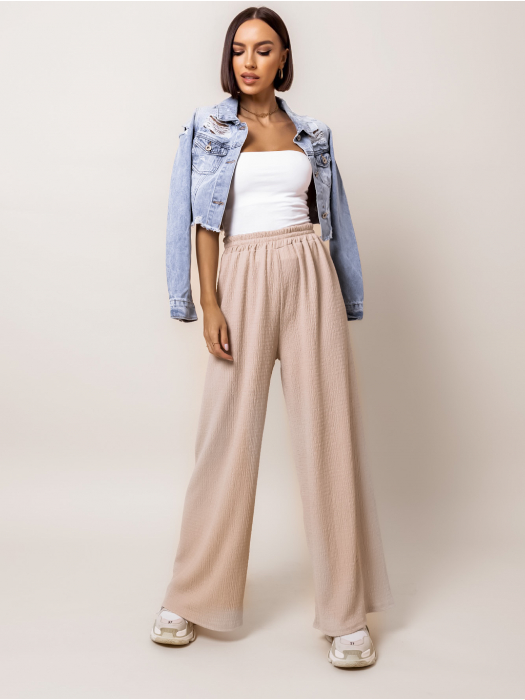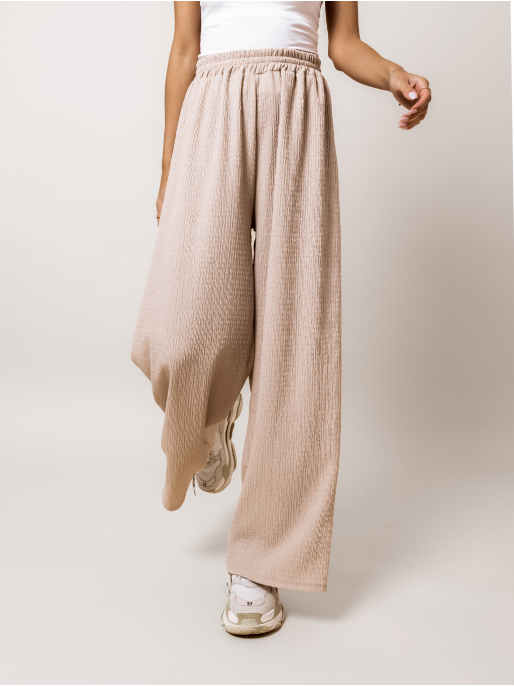 Krémové elegantní kalhoty STAYSY s rozšířenými nohavicemi