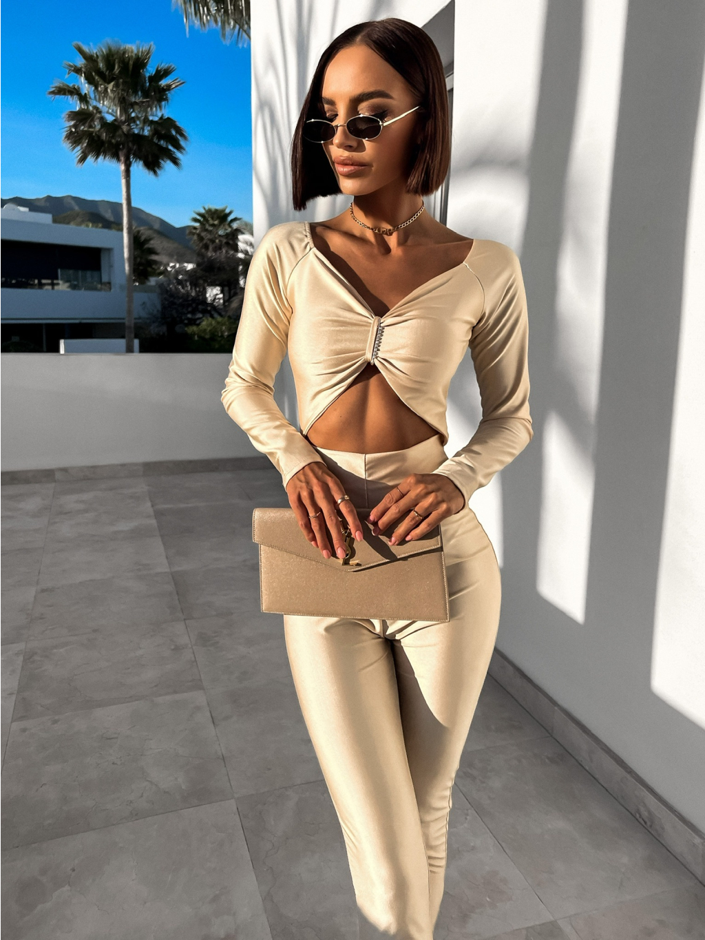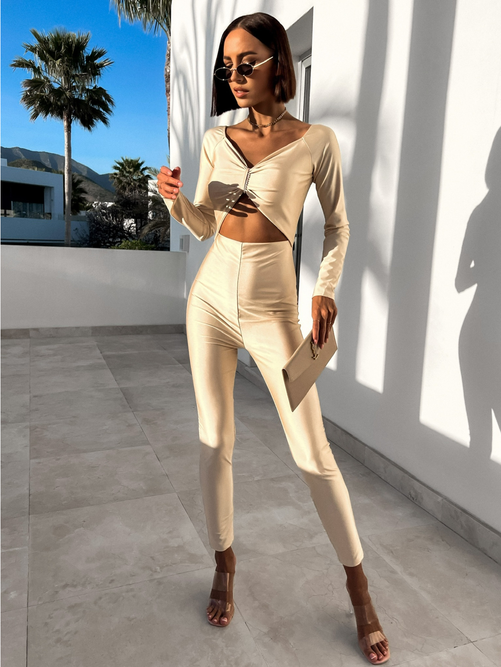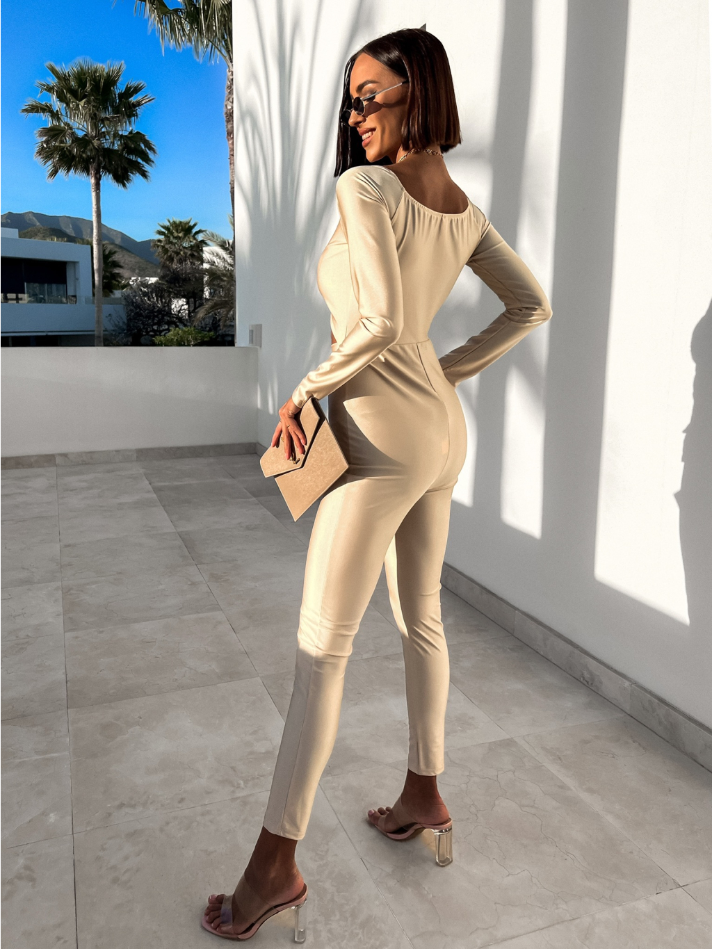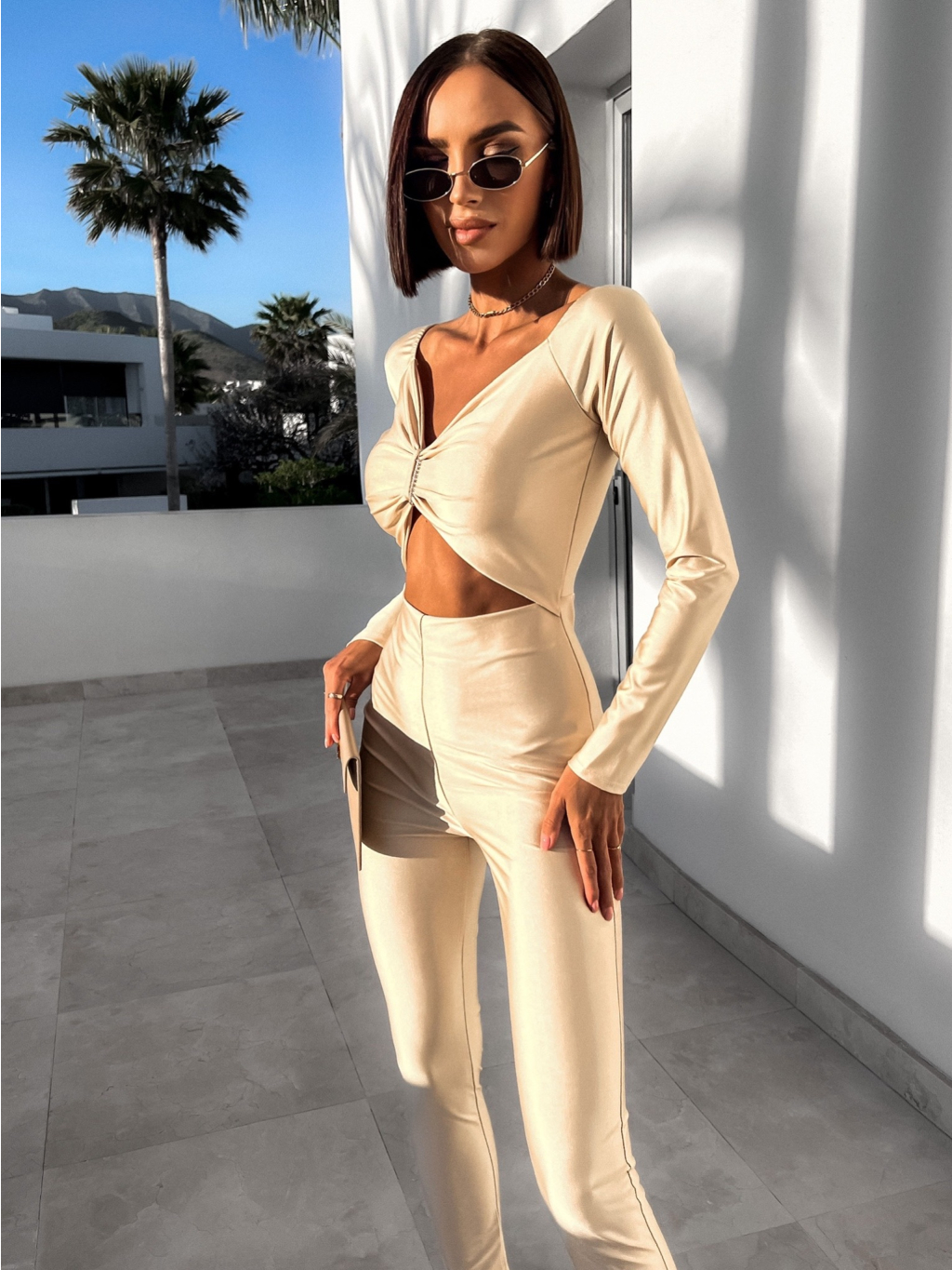 Krémový elegantní overal ODIEN s průstřihy