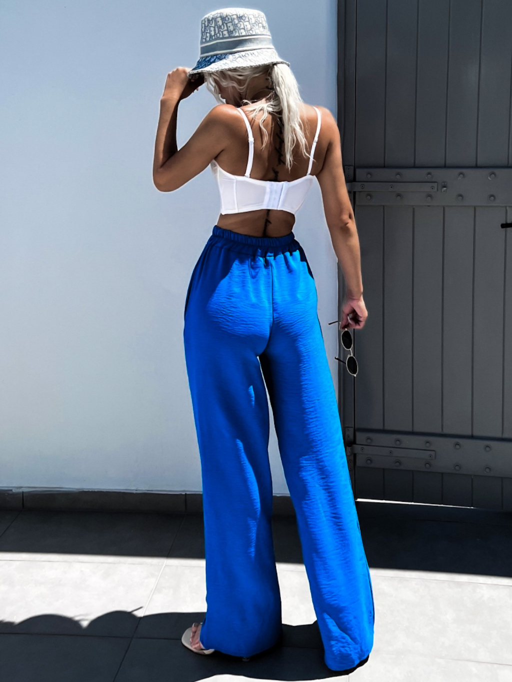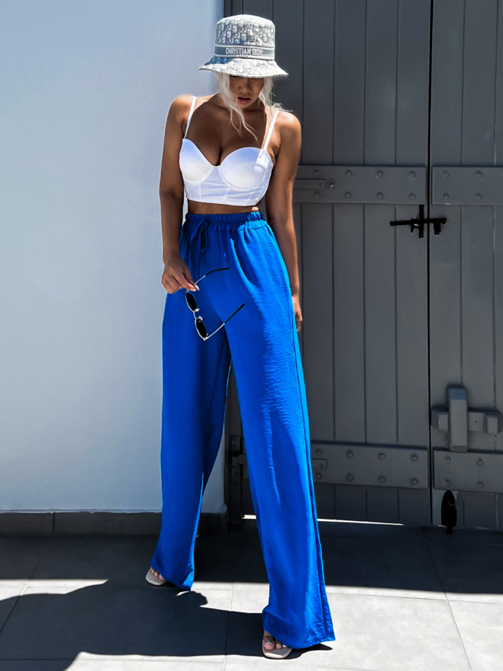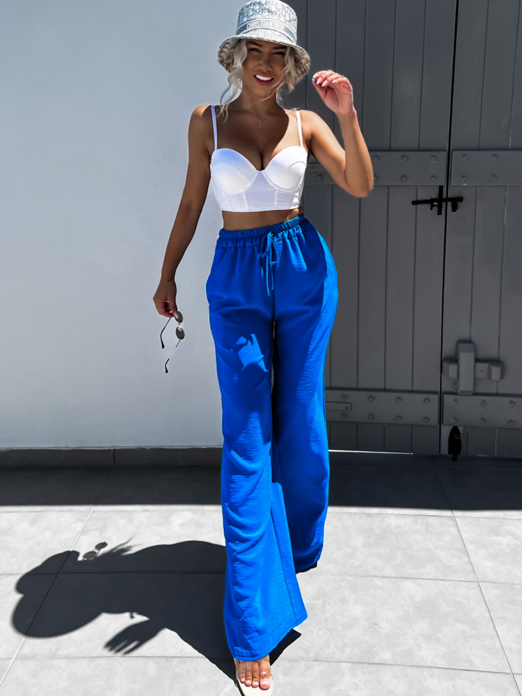 Modré elegantní kalhoty CORAL s rozšířenými nohavicemi