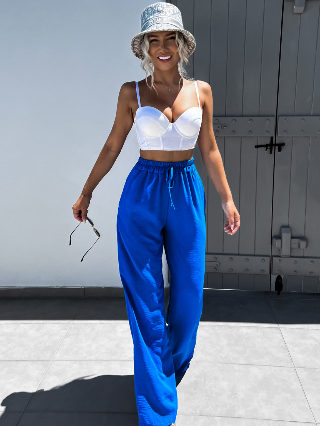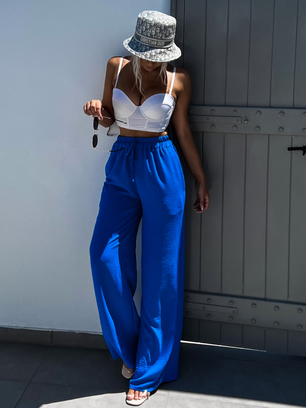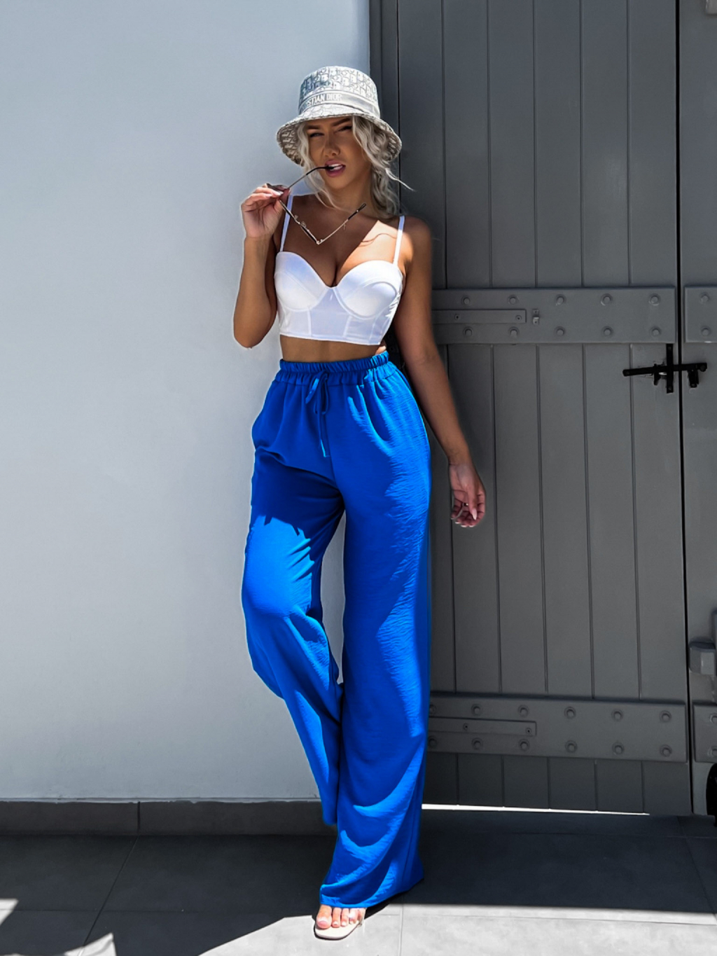 Modré elegantní kalhoty CORAL s rozšířenými nohavicemi