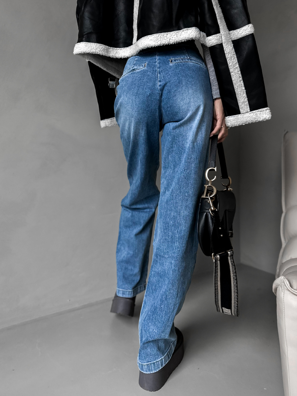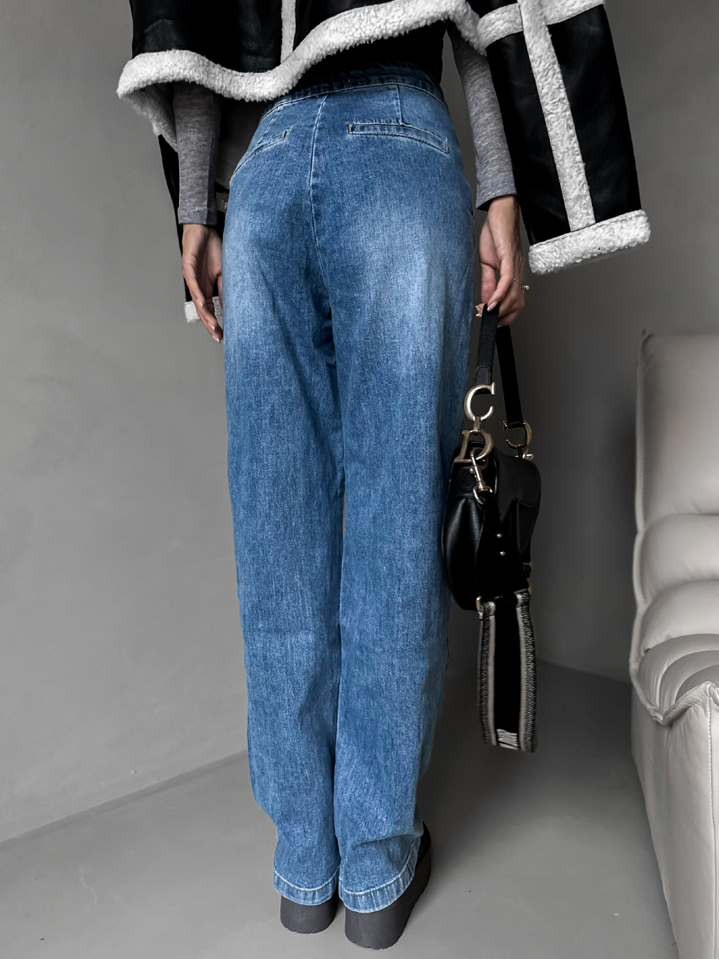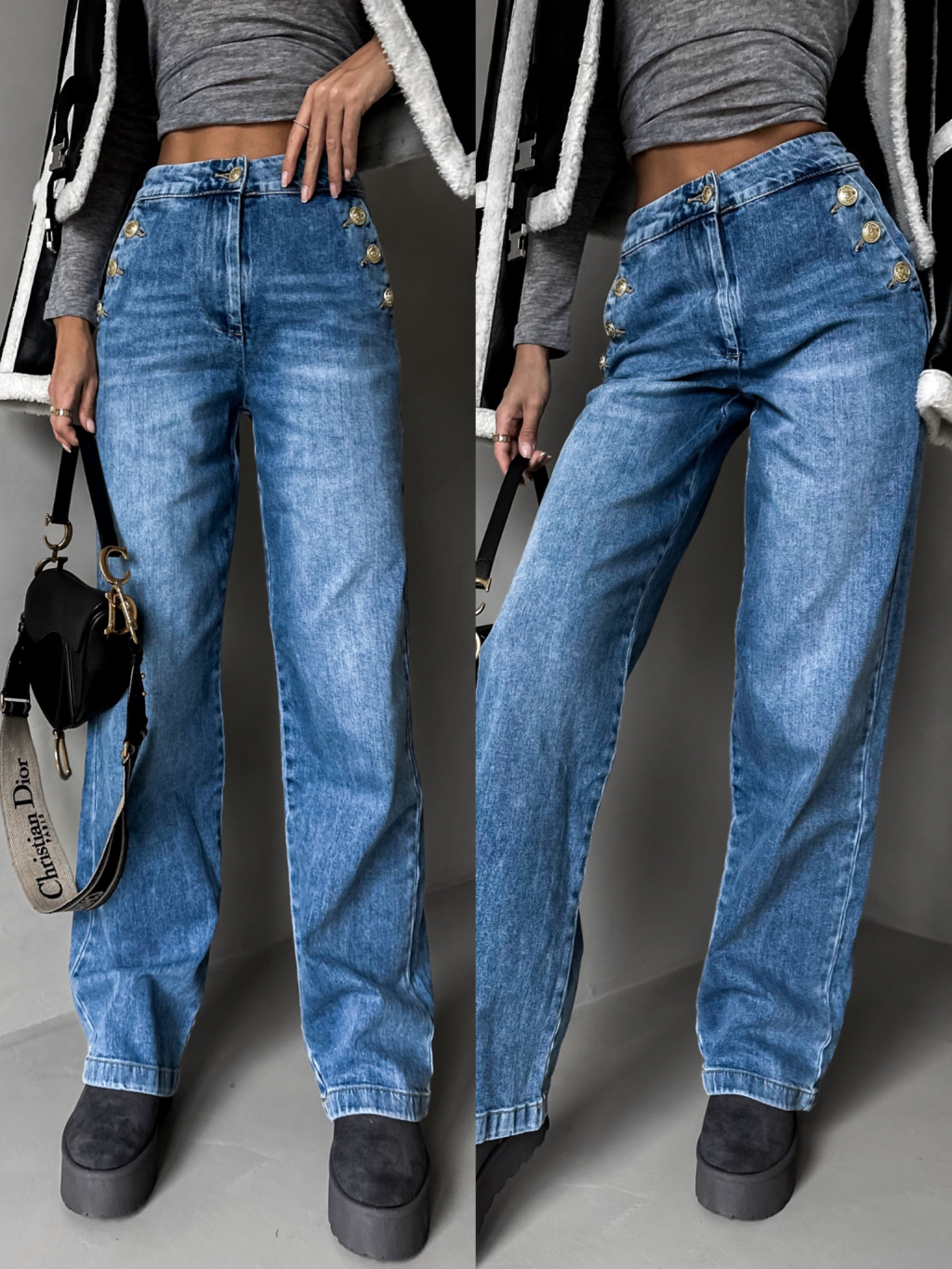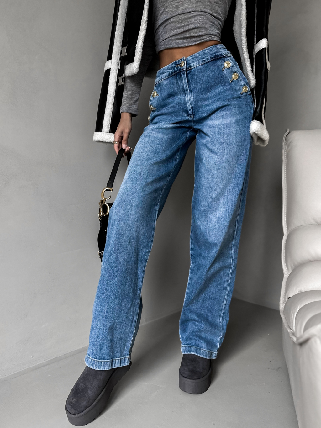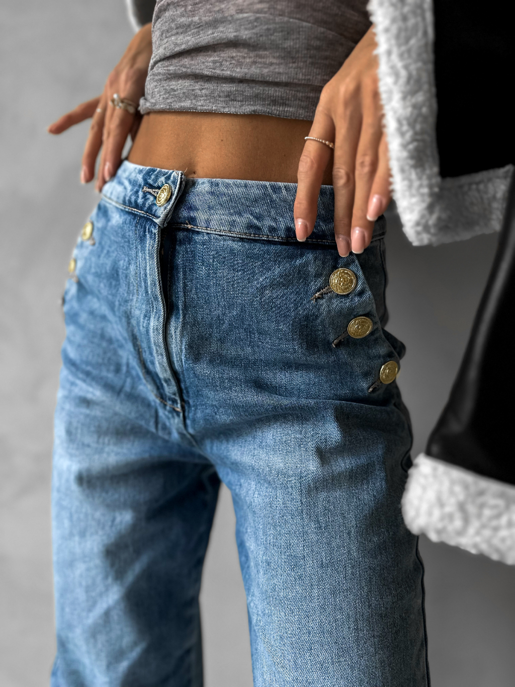 Modré široké džíny GRAIE s knoflíky