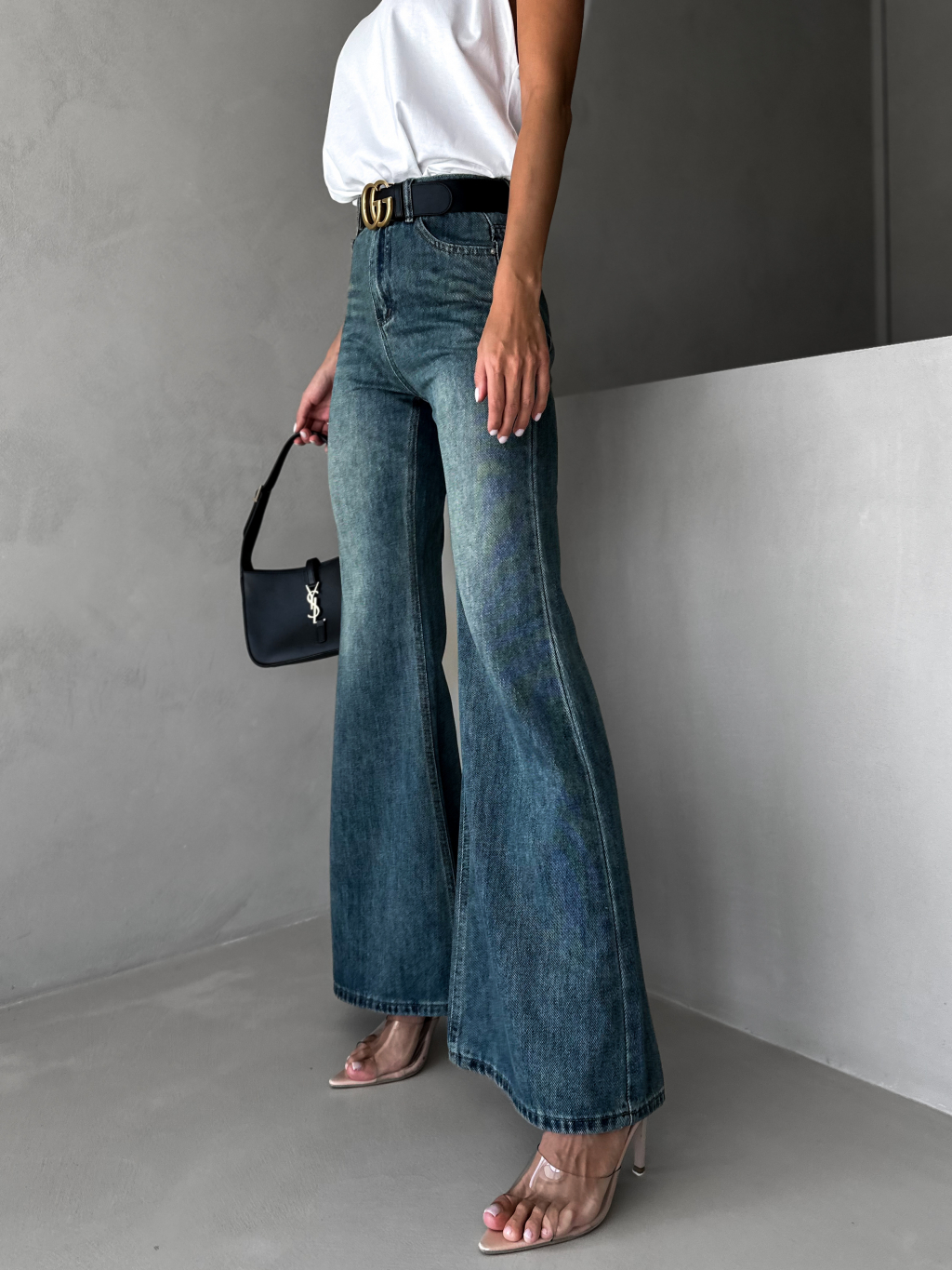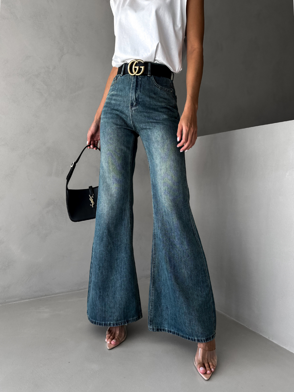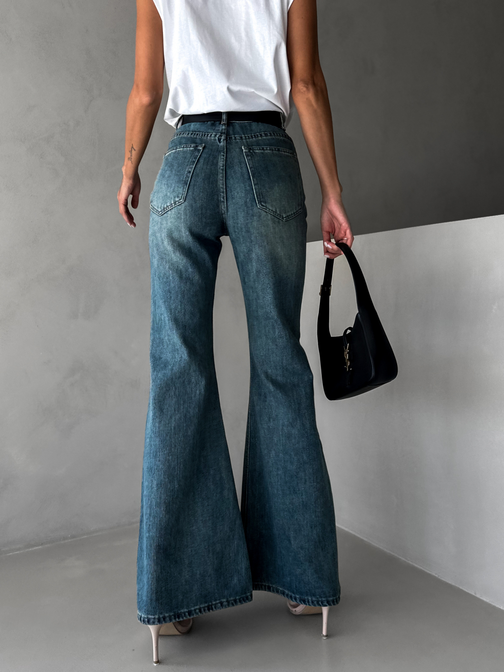 Modré stylové džíny CALUME do zvonu
