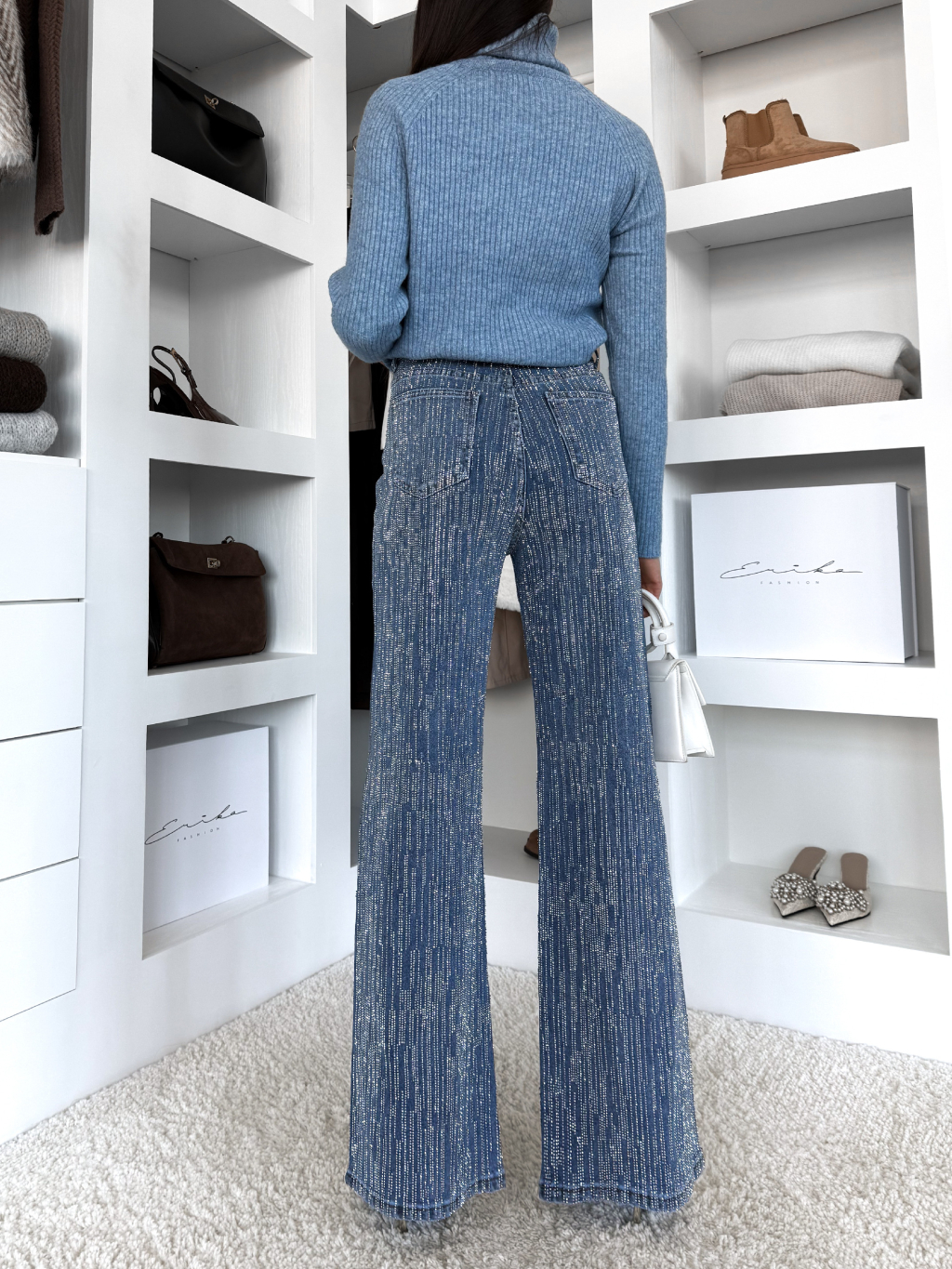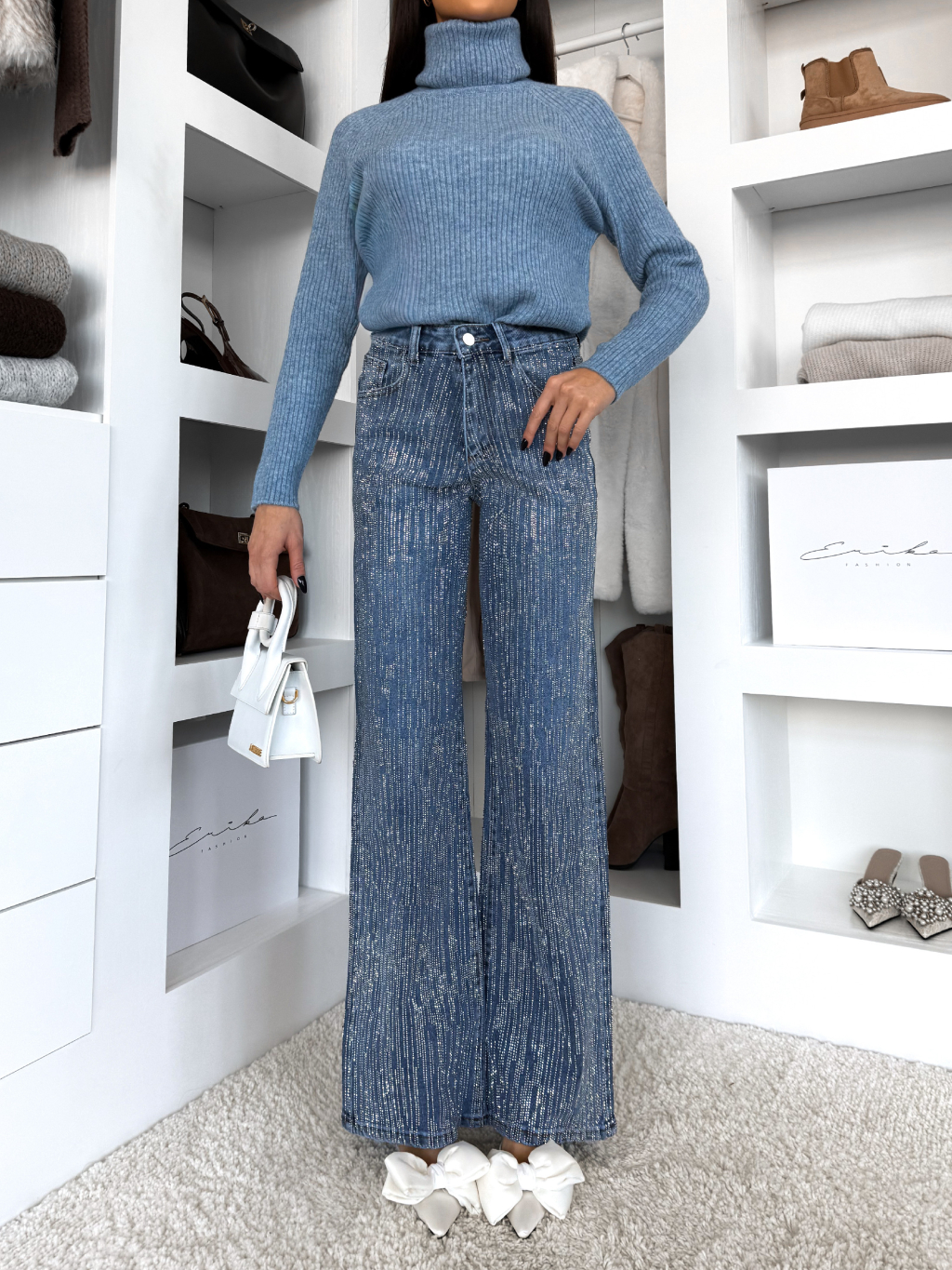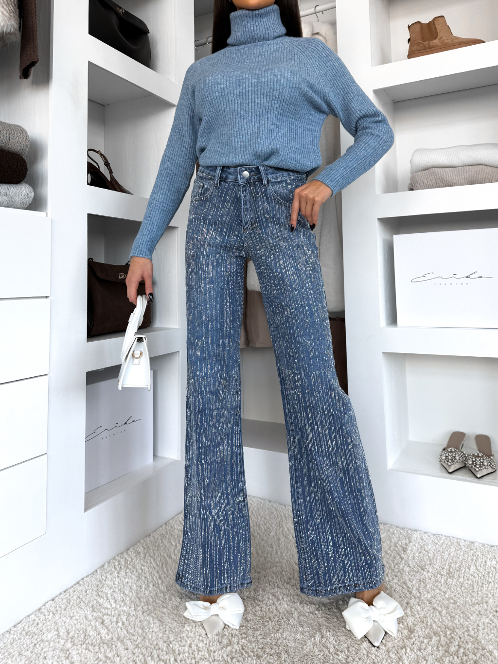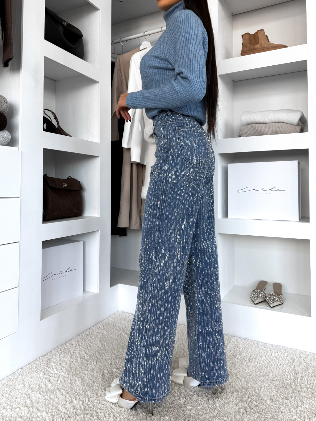 Modré třpytivé široké wide leg džíny RYNOY