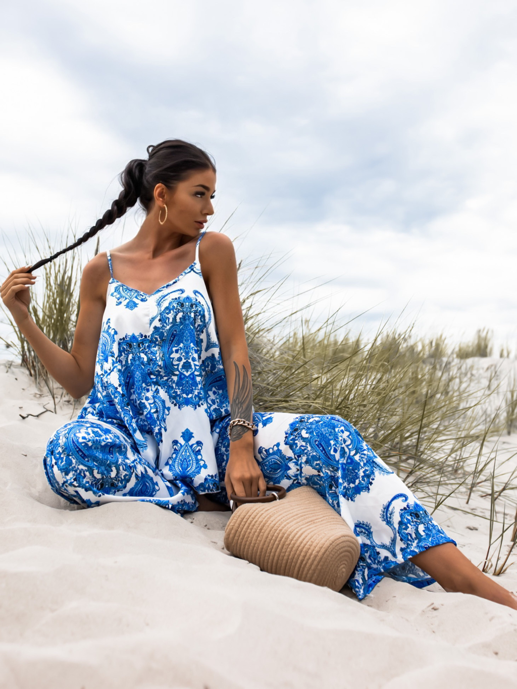 Modro bílý dvoudílný vzorovaný komplet ORNAMENT